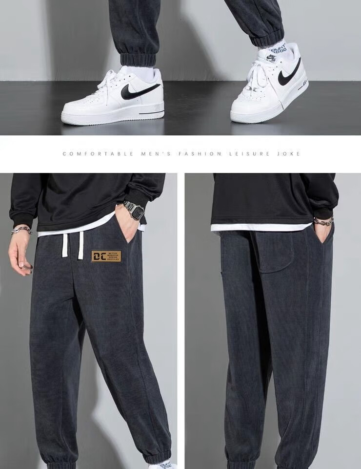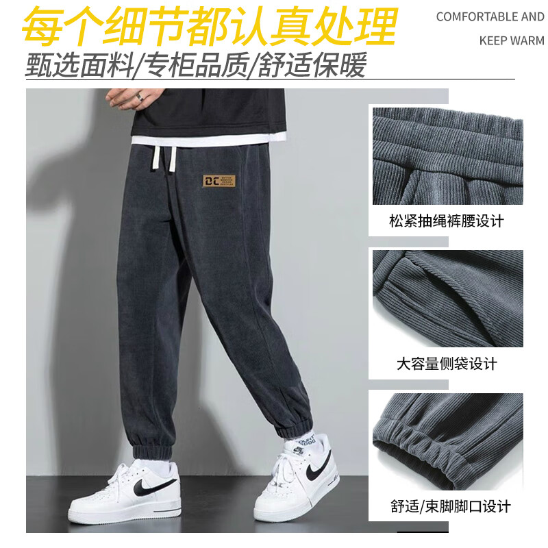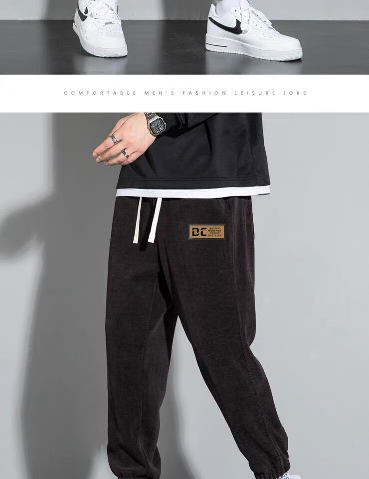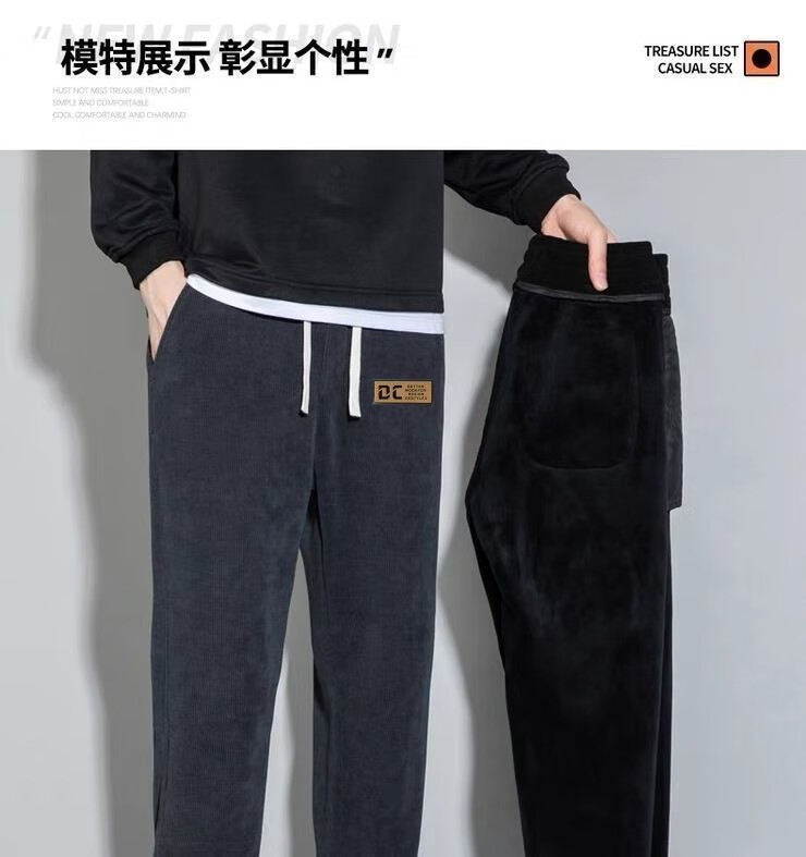 Corduroy pants men's autumn and winter thickened velvet loose casual pants men's trendy versatile large size sports pants factory direct sales clearance K264 plus velvet style black 4XL recommended weight 160-170Jin Jin equals 0.5 kg can be worn