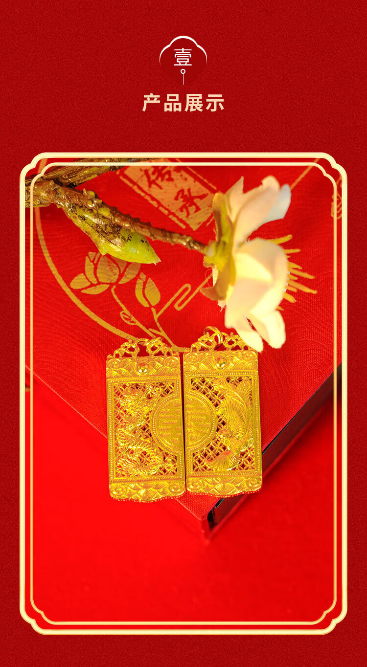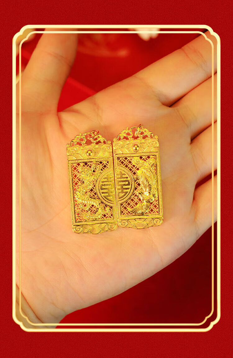 Jinxu pure gold covered with silver 999 dragon and phoenix hollow double happiness set with diamonds G gold couple tag Chinese style light luxury pendant couple pendant