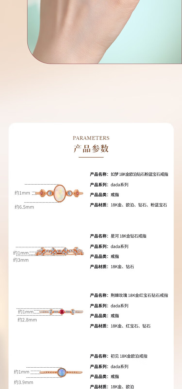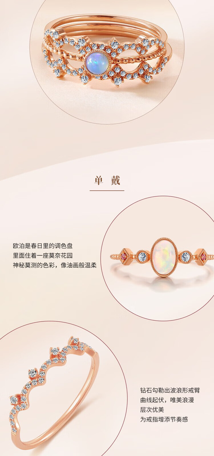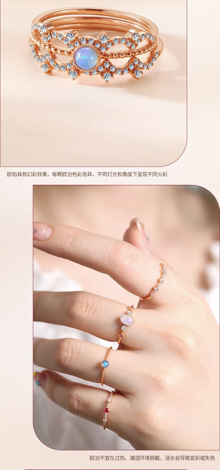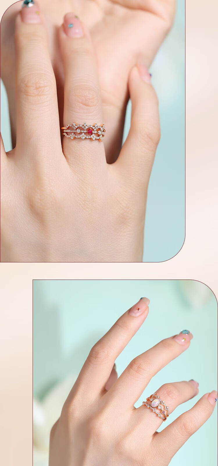 Lianshi Jewelry 18K Gold Opal Diamond Ruby Ring Versatile Stackable Jewelry for Girlfriend’s Birthday Gift 18K Gold Opal Diamond Pink Sapphire Ring No. 11