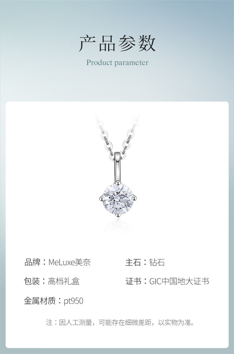Meluxe Mina Star Pt950 platinum diamond necklace four-claw diamond pendant for women New Year gift for girlfriend 33 points-H color