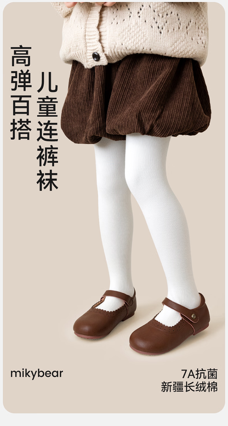 Mianqi Xiong children's pantyhose spring and autumn style plus velvet and thickened white leggings baby leggings pantyhose outer wear girls leggings QK5518- autumn and winter thin velvet style 7A antibacterial 1 piece - black 12 years old and above - recommended height 140~155cm