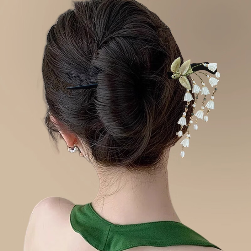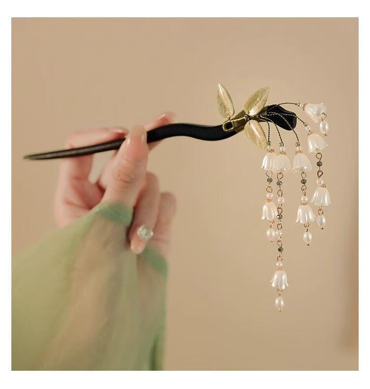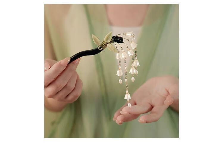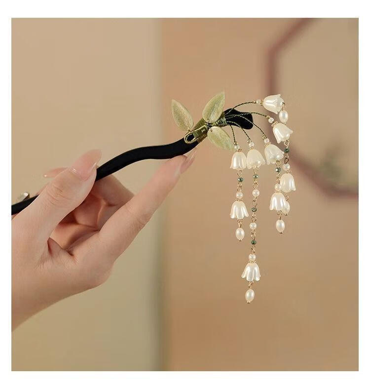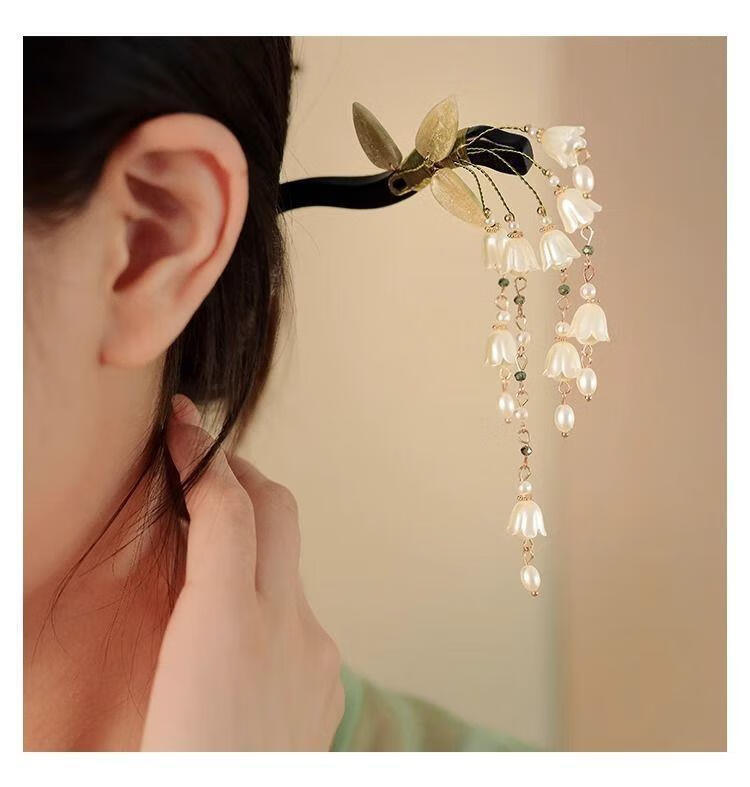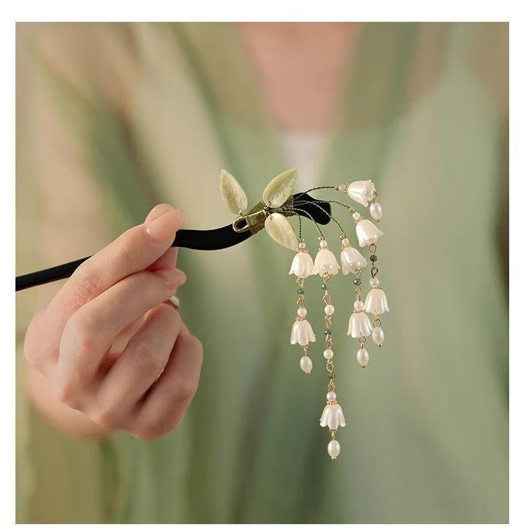 BIBK旗袍发饰古风铃兰流苏发簪新中式马面裙配饰精致步摇簪子气质钗子 古风铃兰花折叶簪【1支】