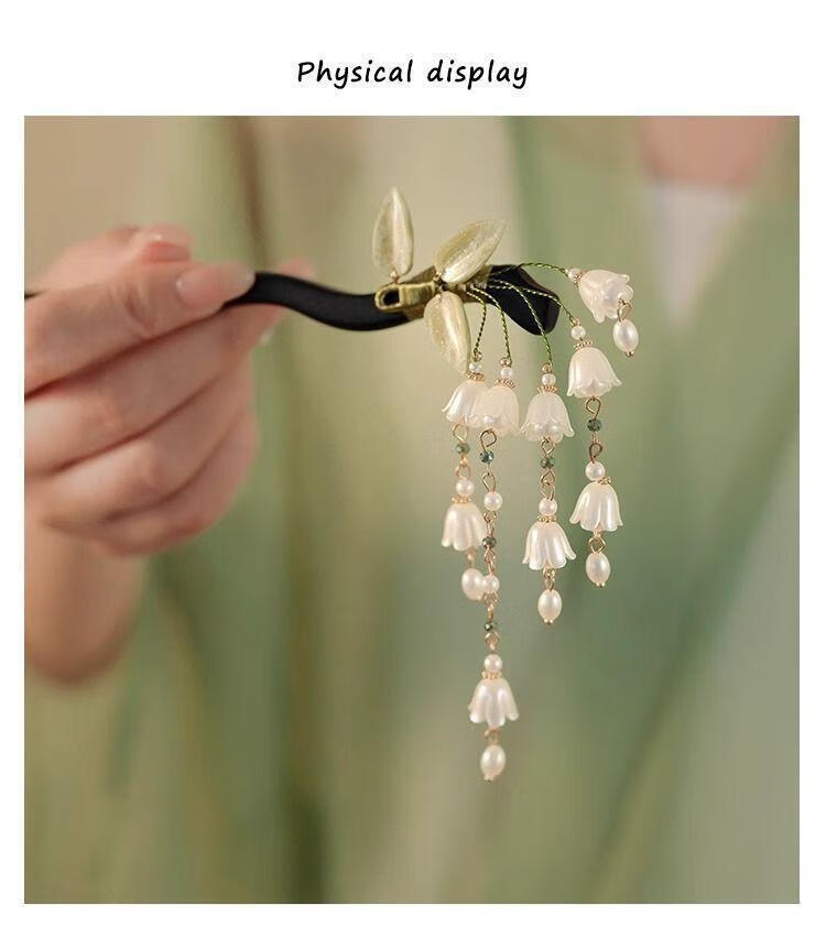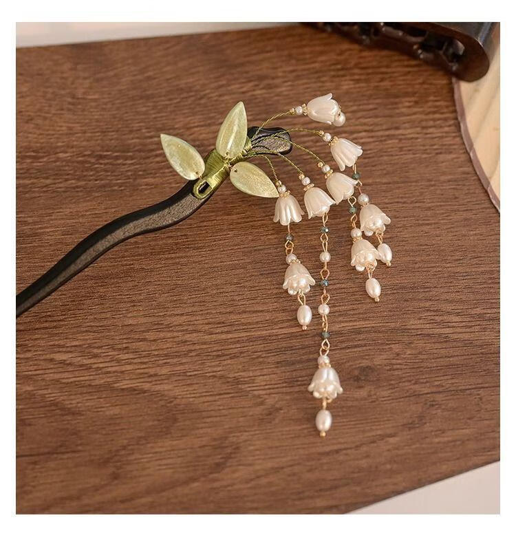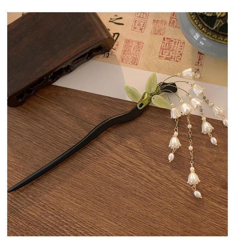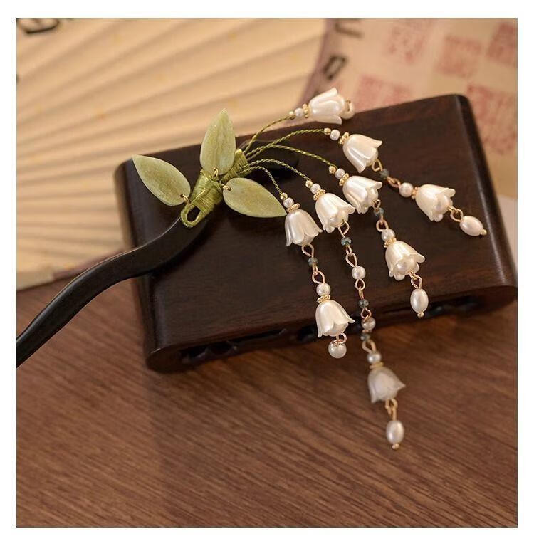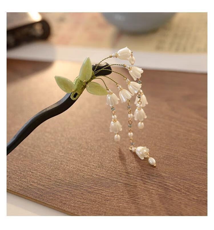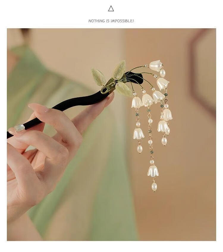 BIBK旗袍发饰古风铃兰流苏发簪新中式马面裙配饰精致步摇簪子气质钗子 古风铃兰花折叶簪【1支】