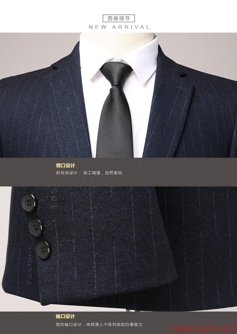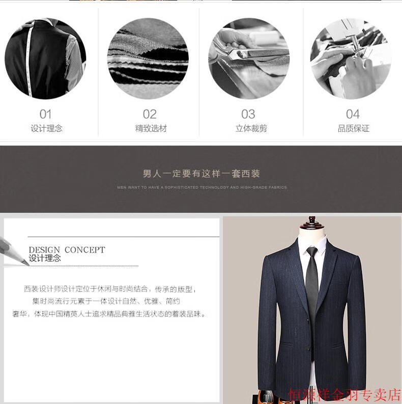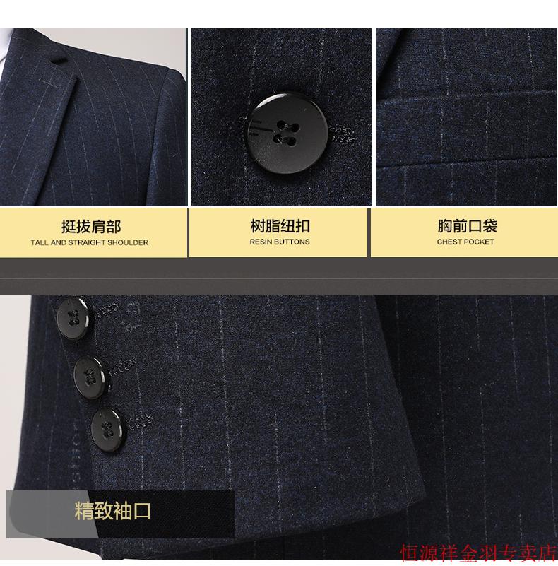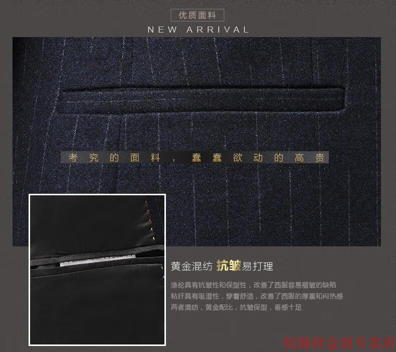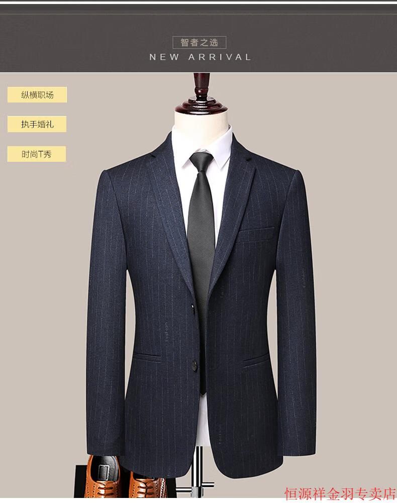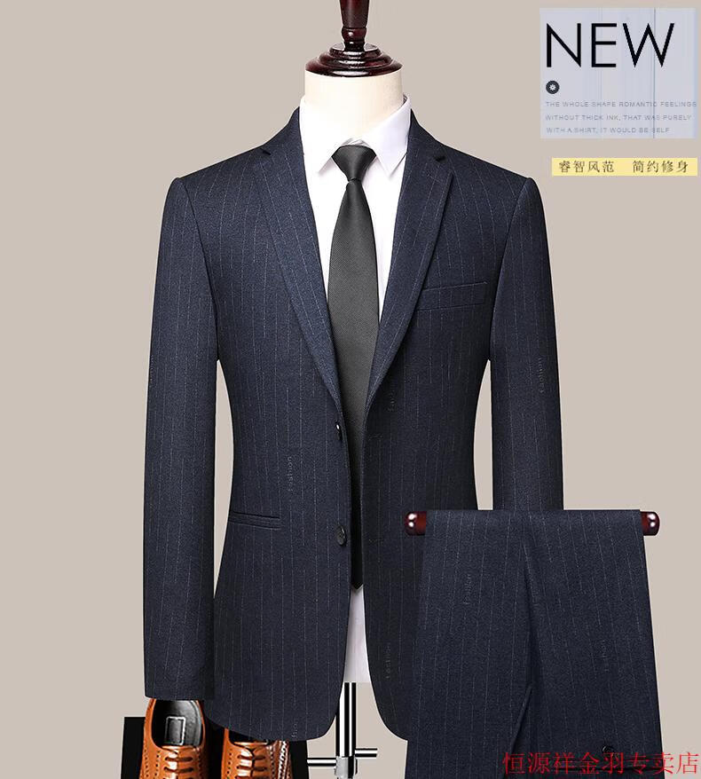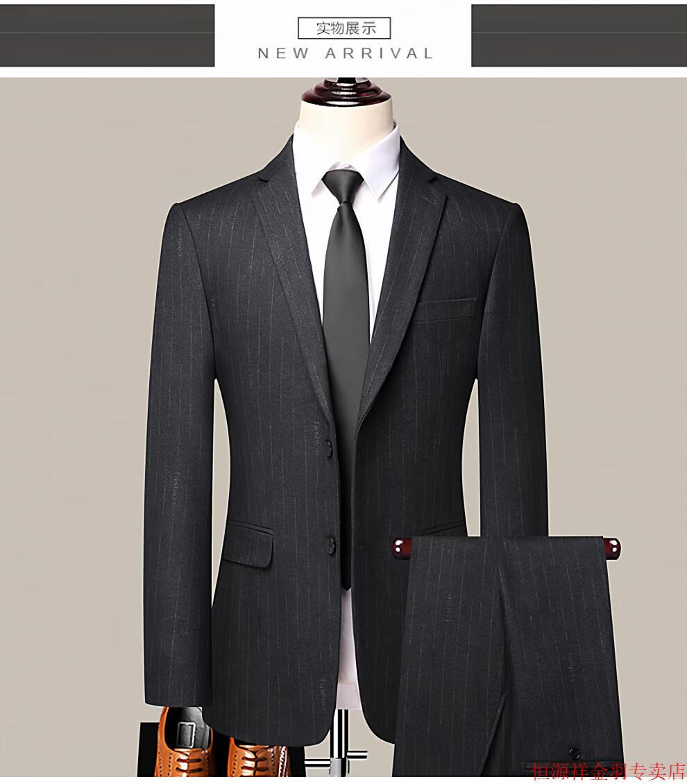 Hengyuanxiang pure wool suit suit men's striped wool suit haute couture wedding business dress formal black gray pure wool A8983 3XL 190/54
