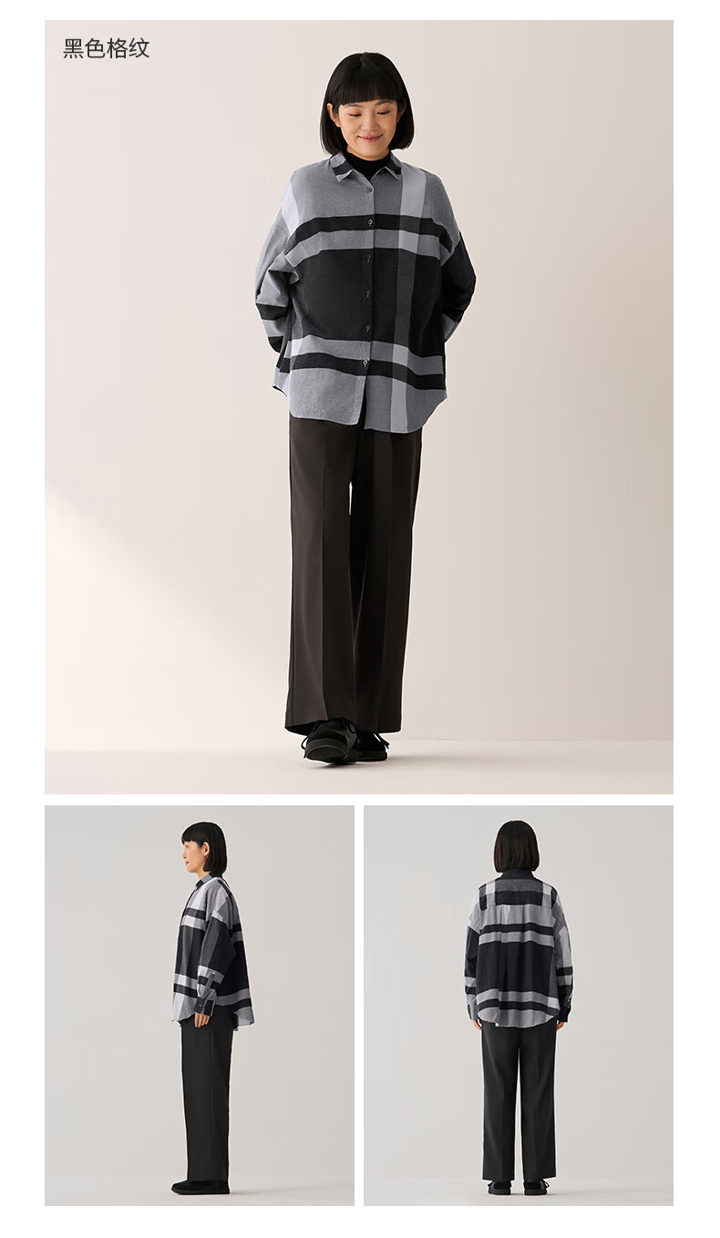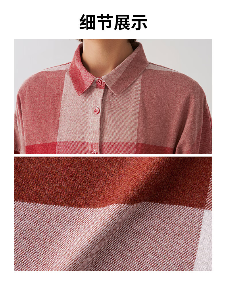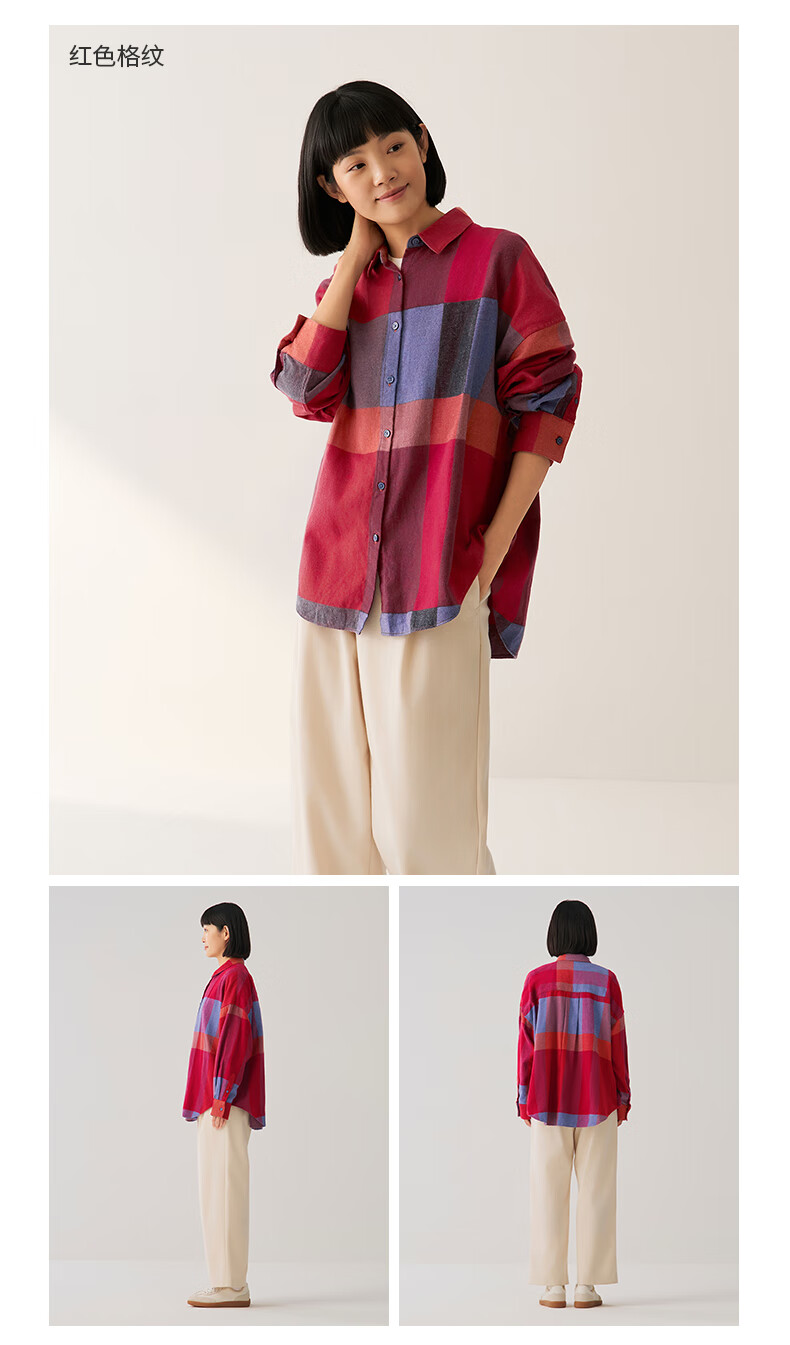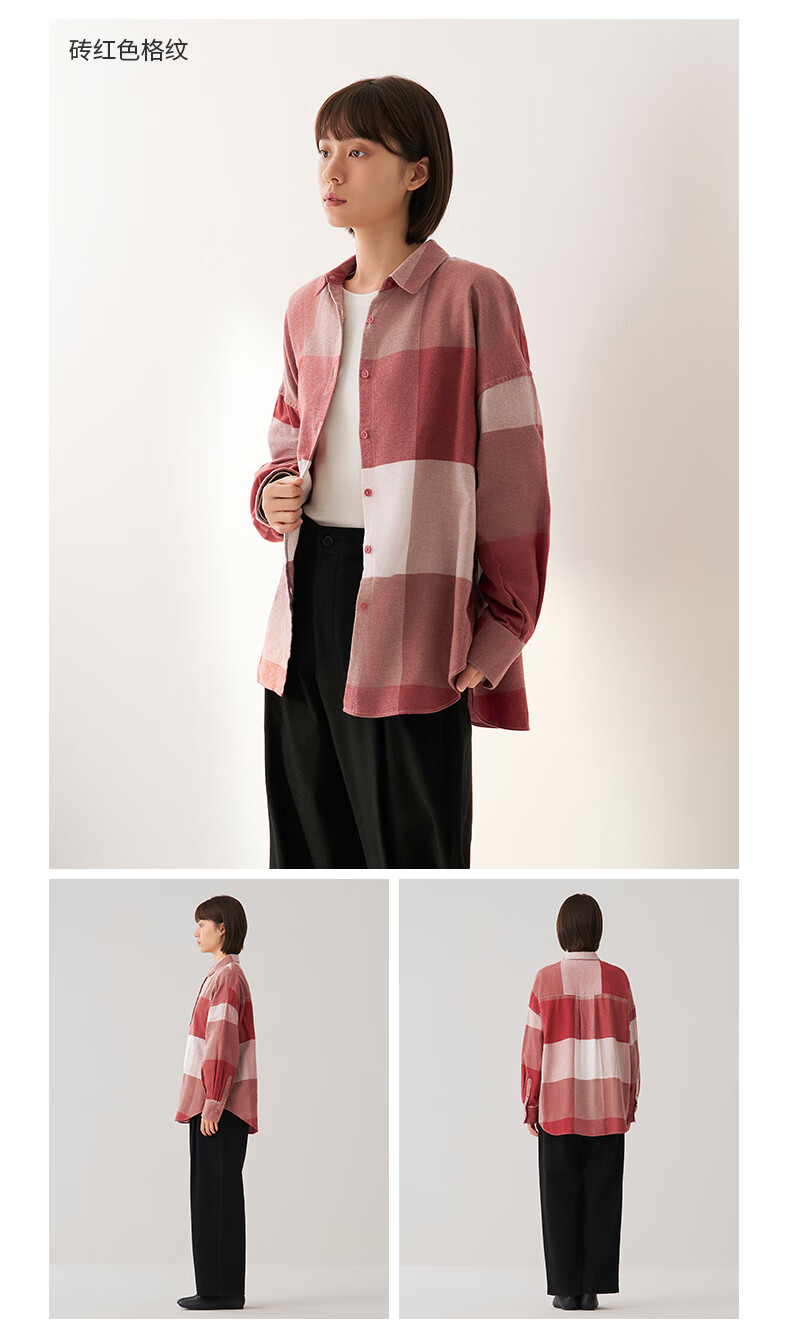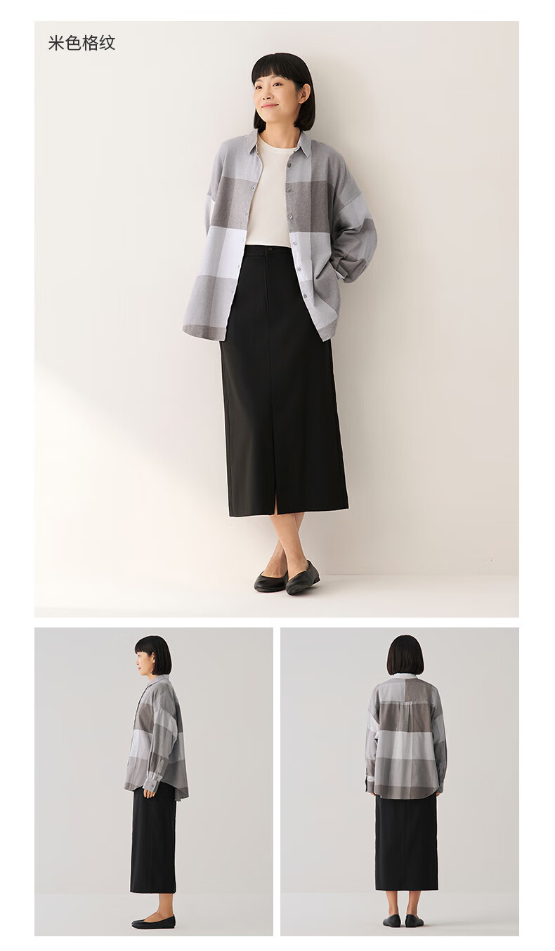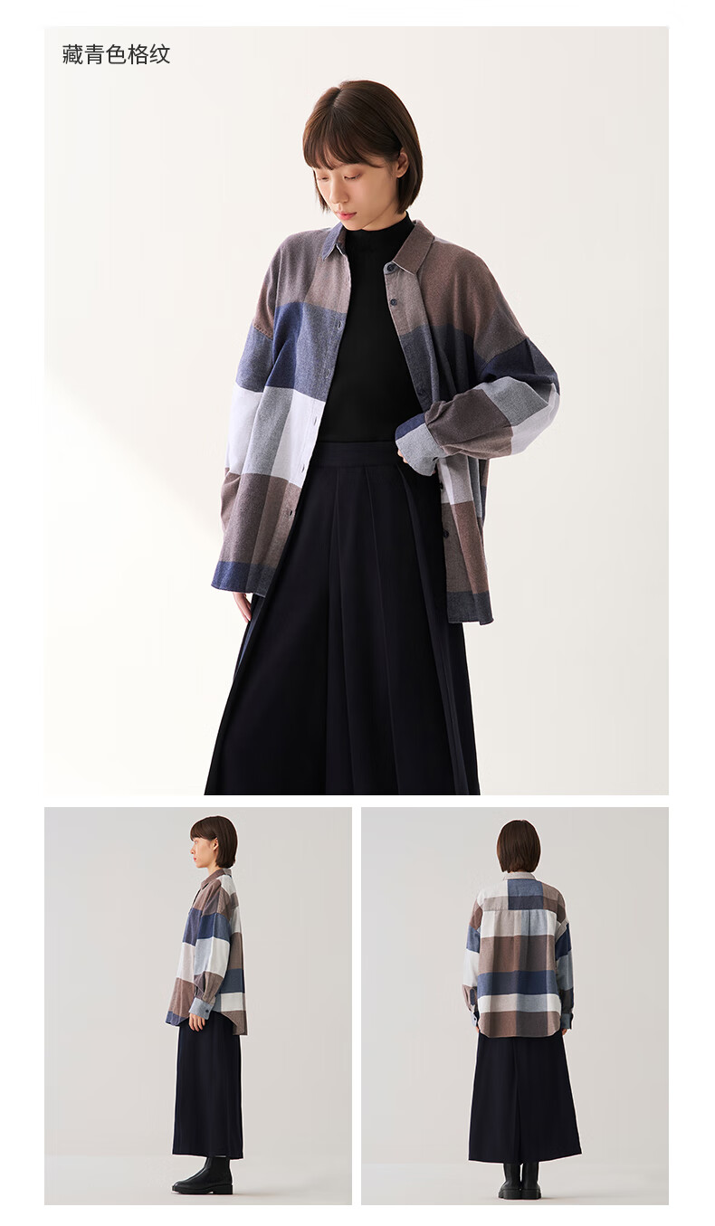 MUJI Women's Flannel Shirt Collar Wide Long Sleeve Shirt Women's Plaid Shirt Jacket 25 Winter Women's Green Plaid S (155/80A)