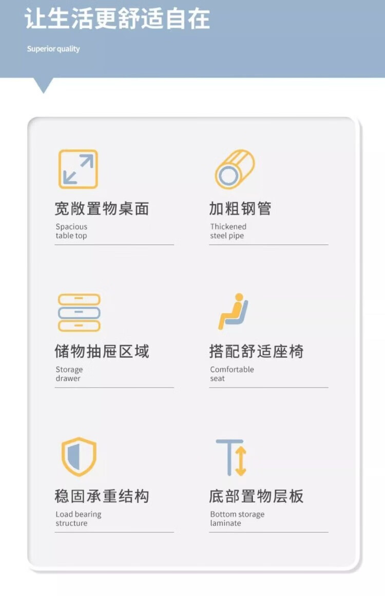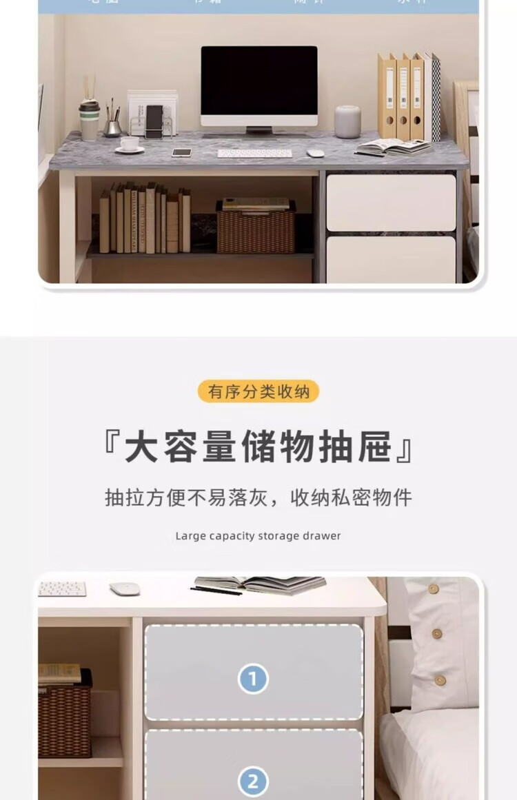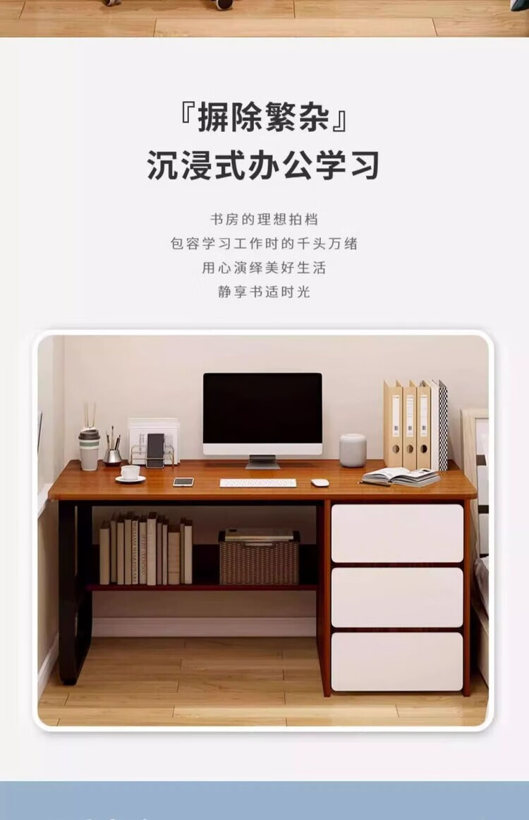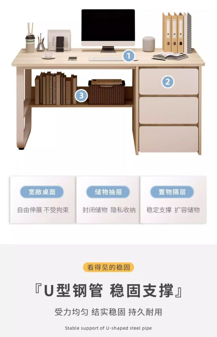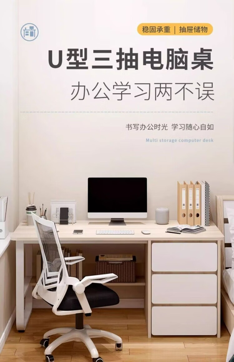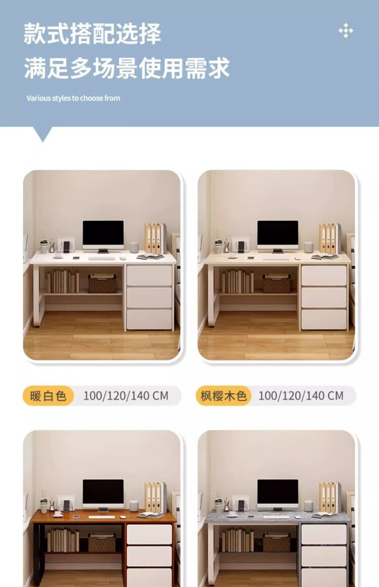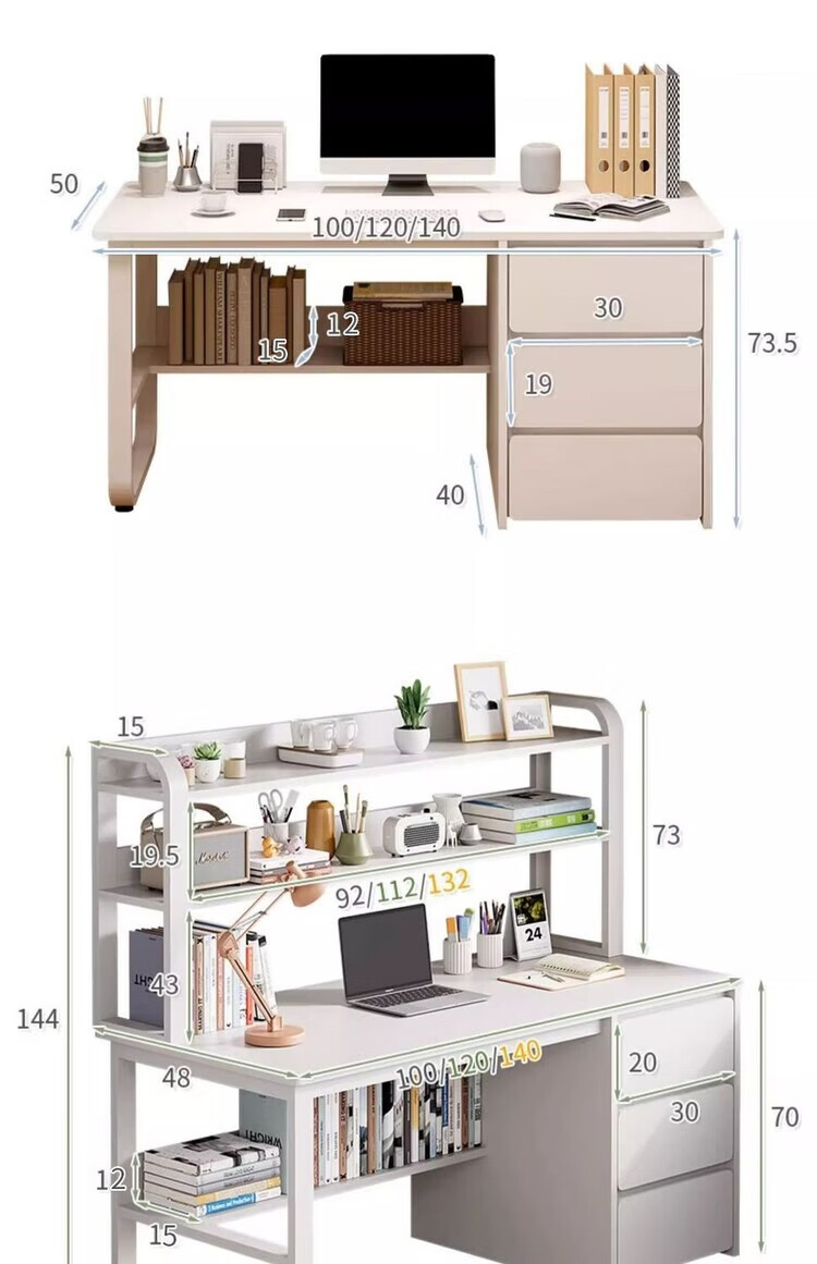 Jifei computer desk desktop home office desk modern simple desk with drawer desk and chair combination bedroom student study table 120CM three pumps warm white
