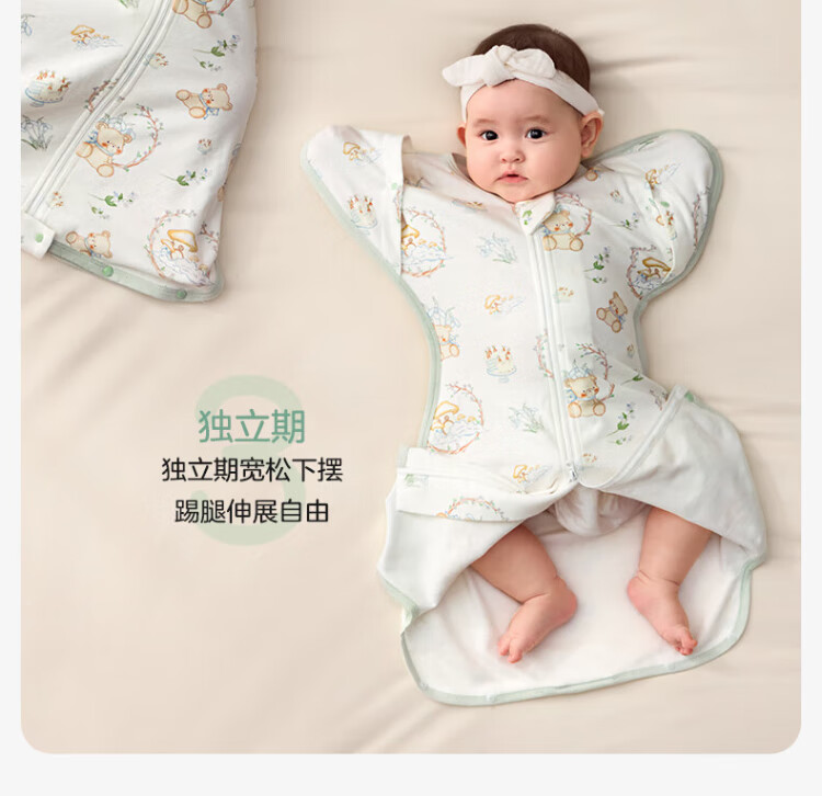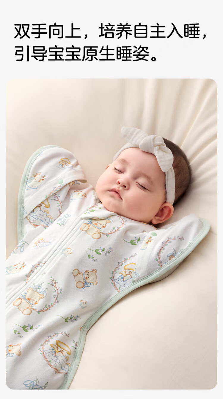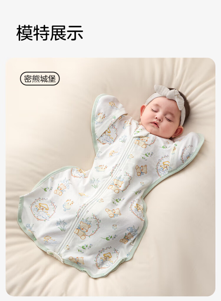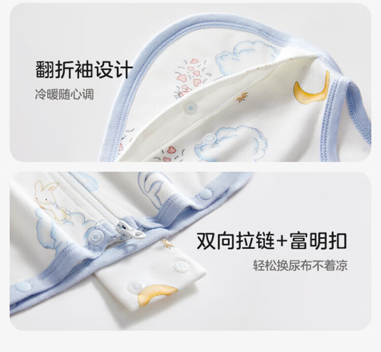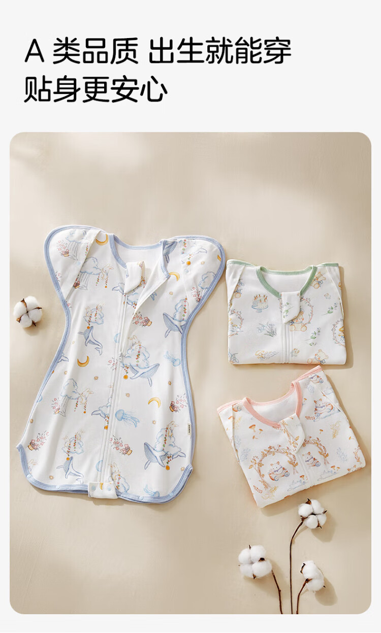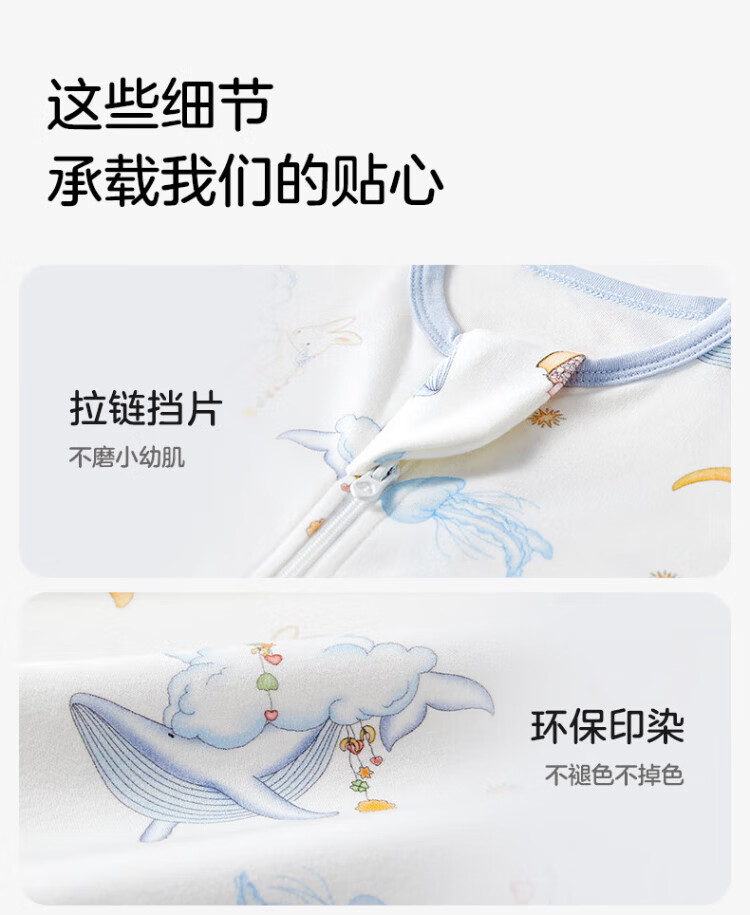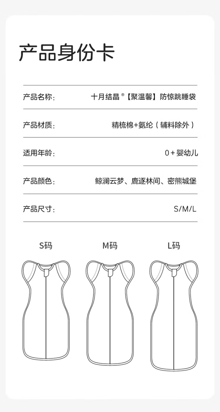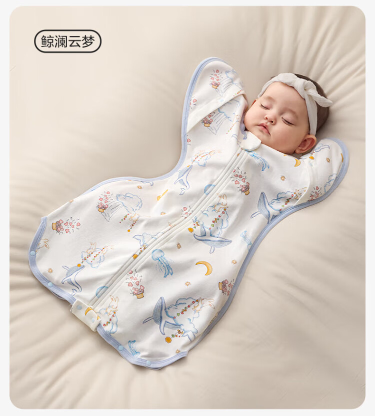 October crystal baby anti-fright sleeping bag newborn surrender type pure cotton swaddle for small months old anti-frightening artifact Whale Lan Yunmeng M size recommended weight 8-15 Jin Jin equals 0.5 kg