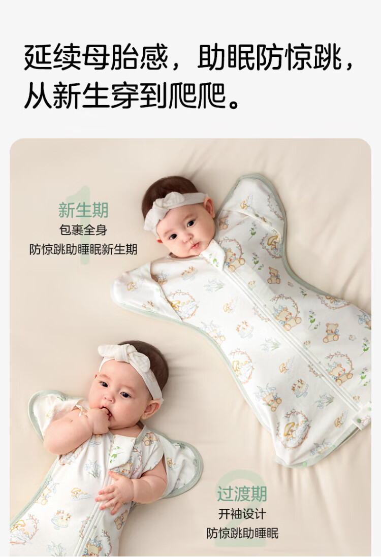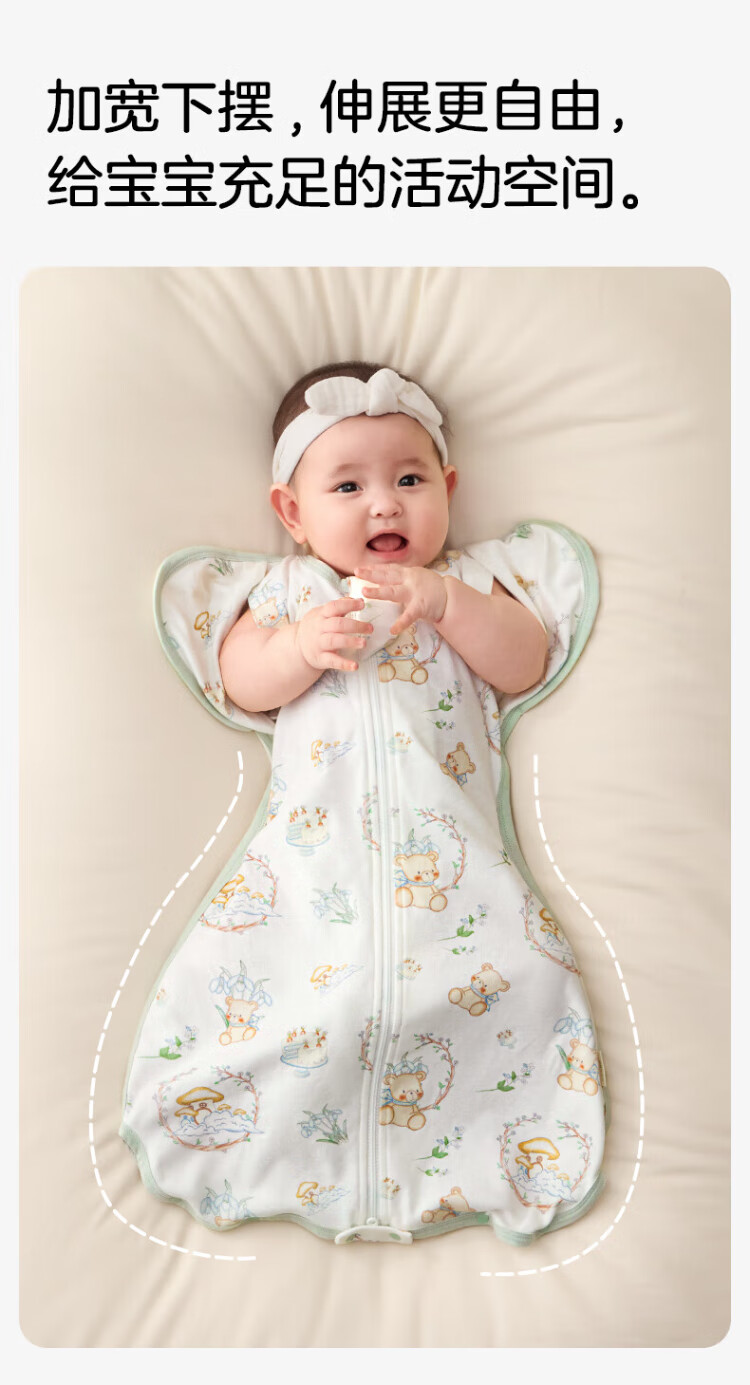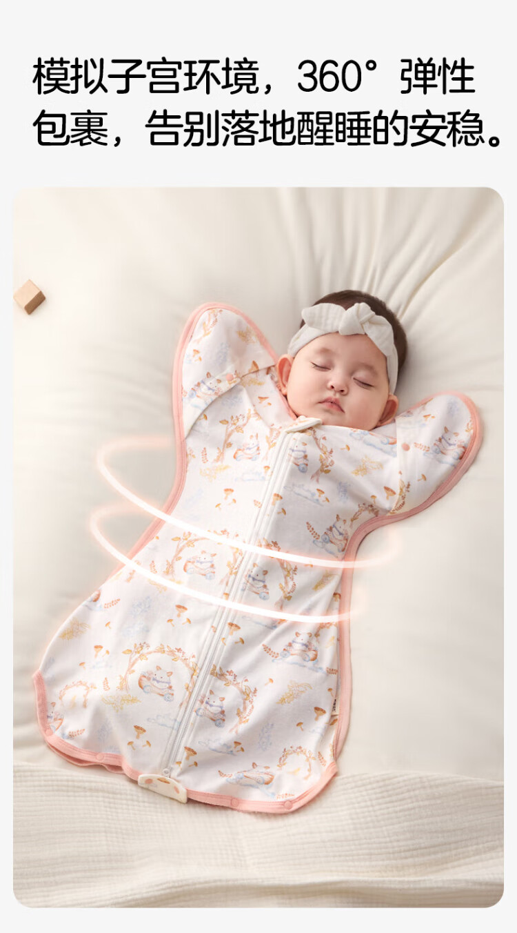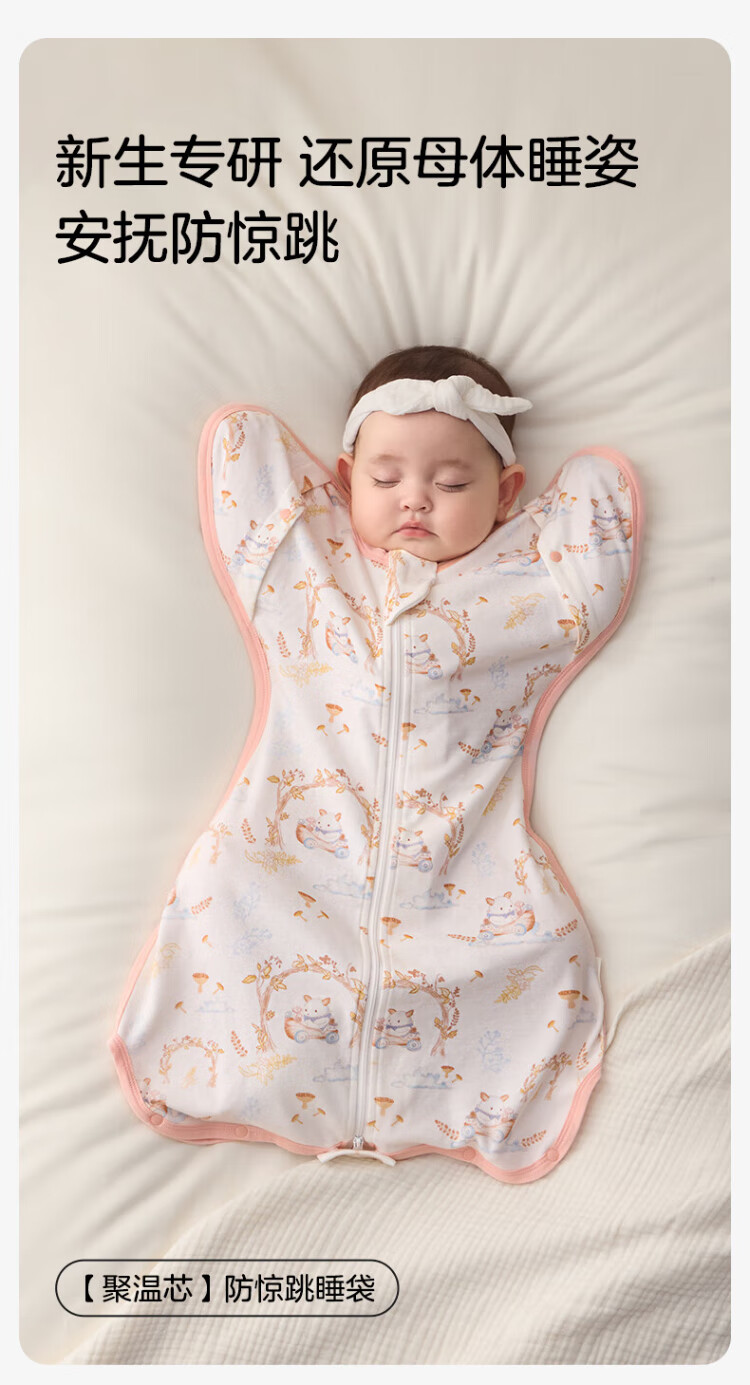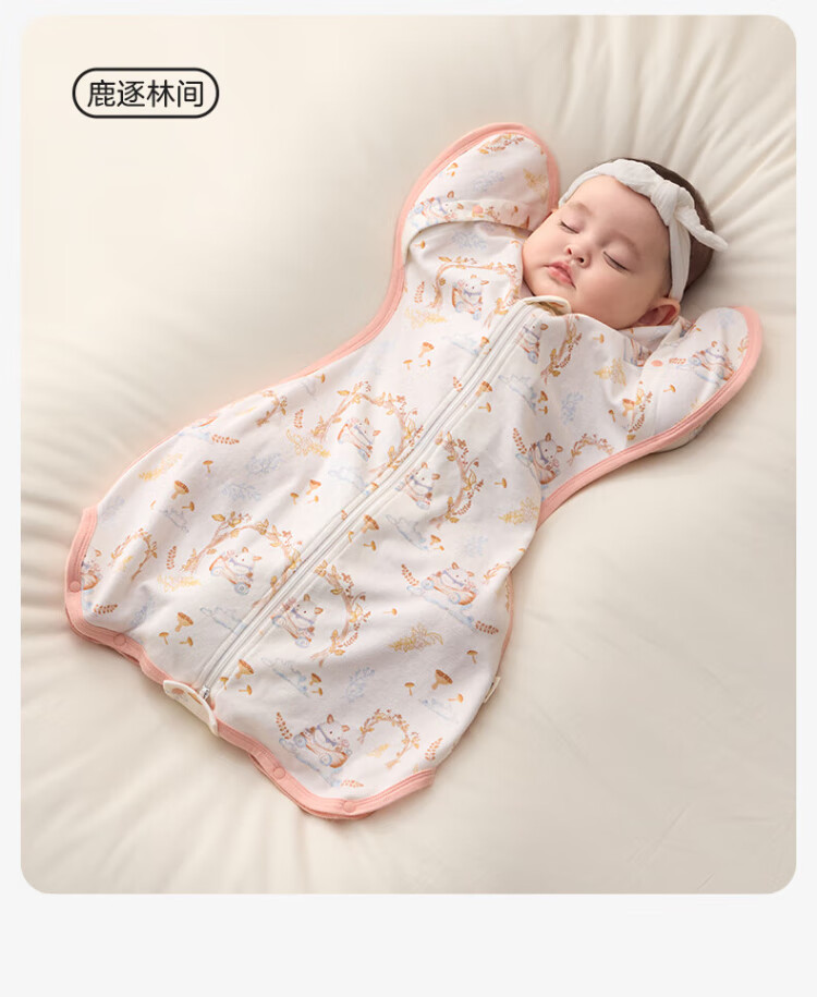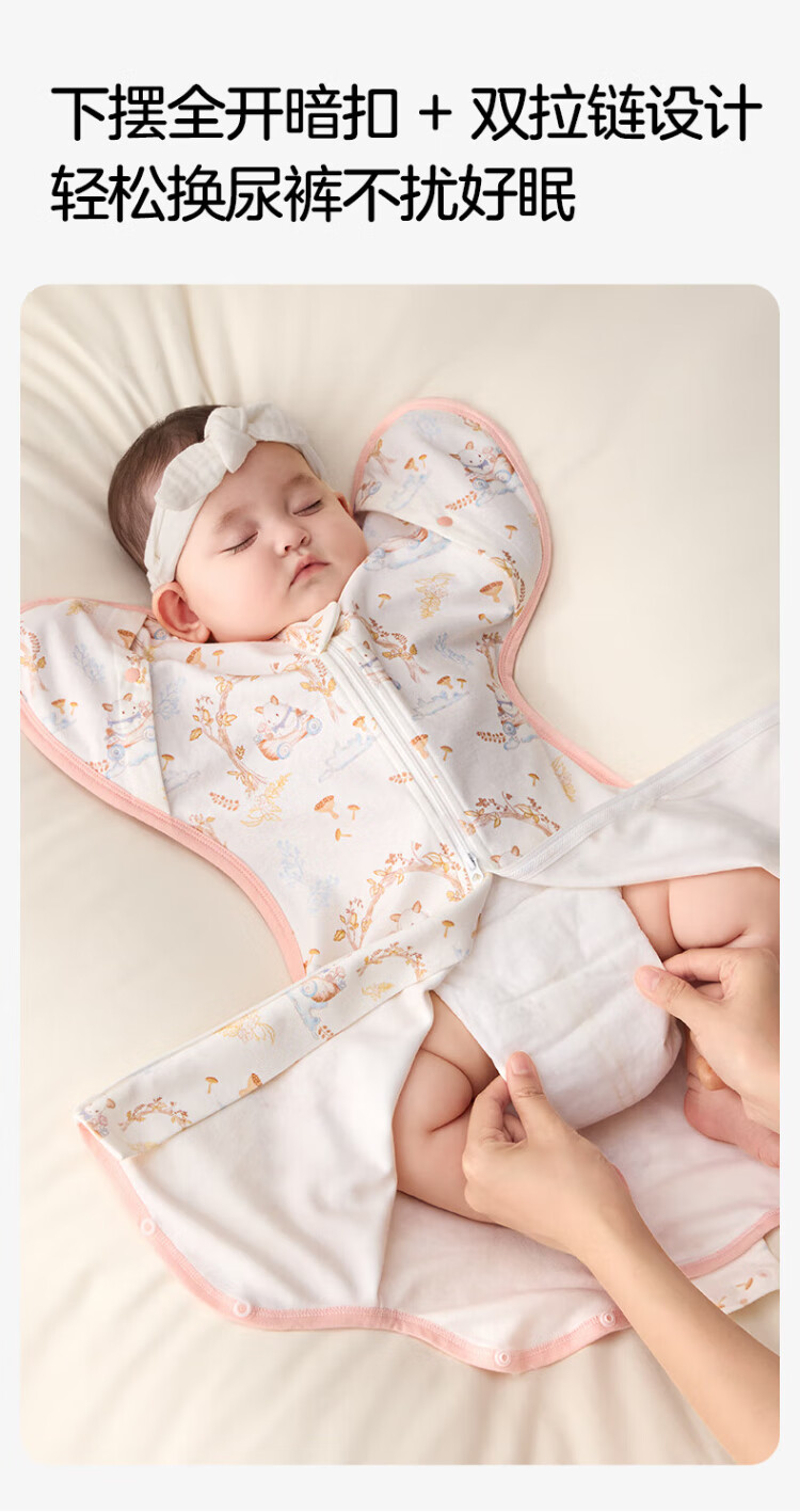 October crystal baby anti-fright sleeping bag newborn surrender type pure cotton swaddle for small months old anti-frightening artifact Whale Lan Yunmeng M size recommended weight 8-15 Jin Jin equals 0.5 kg
