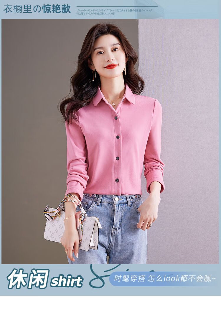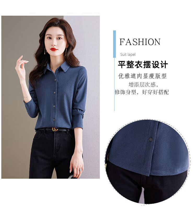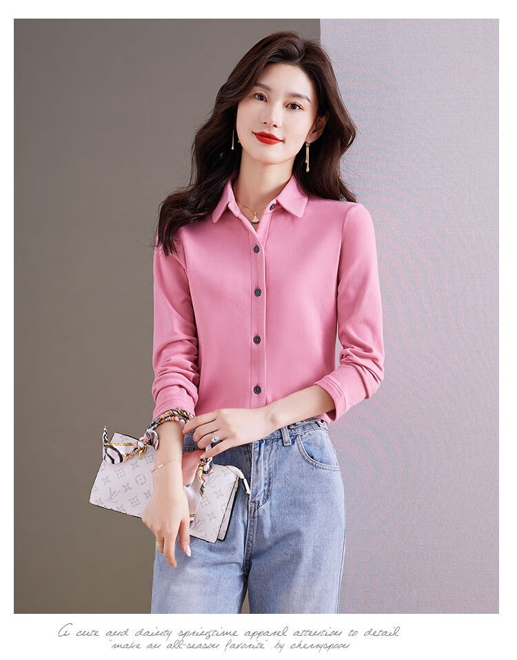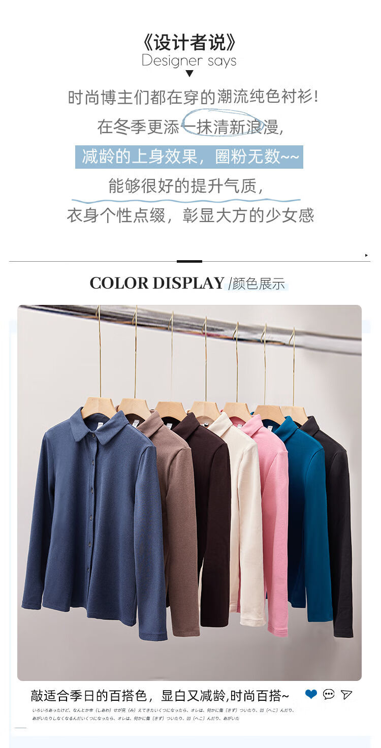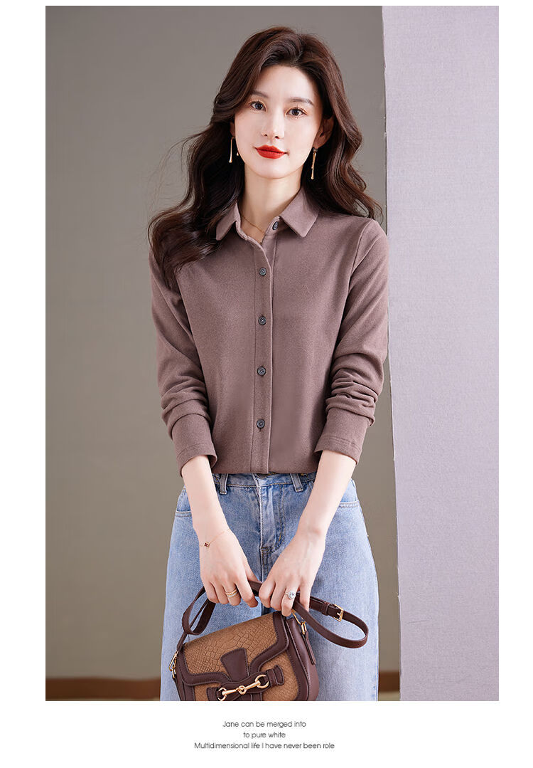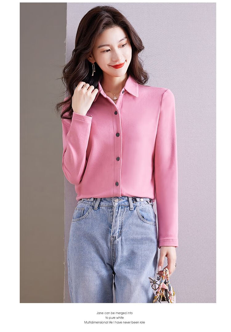 ROMON's new autumn and winter solid color double-sided German velvet long-sleeved shirt for women, versatile brushed plus velvet warm base cardigan shirt, blue gray M 85-100Jin Jin equals 0.5 kg