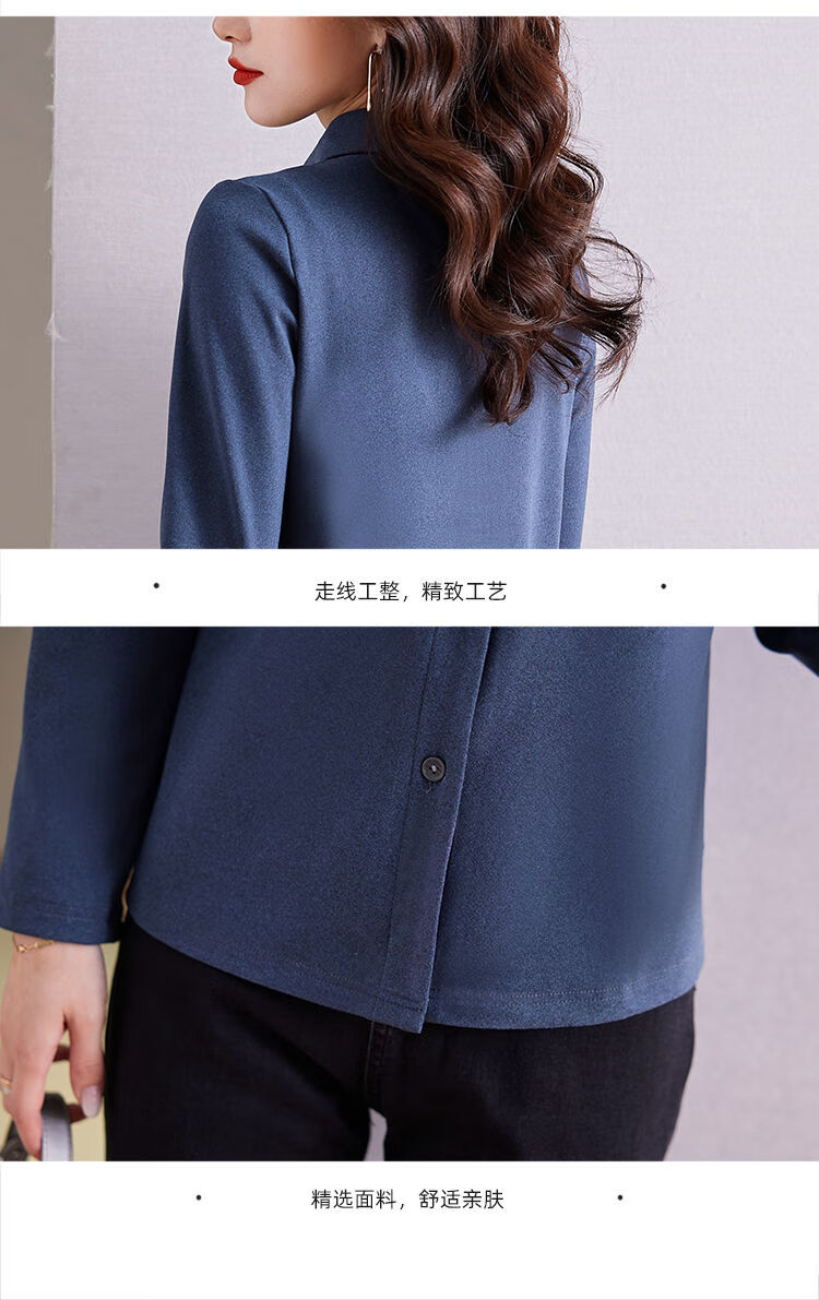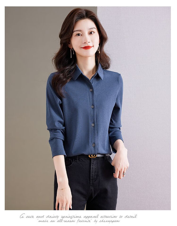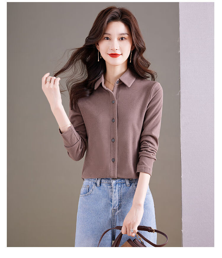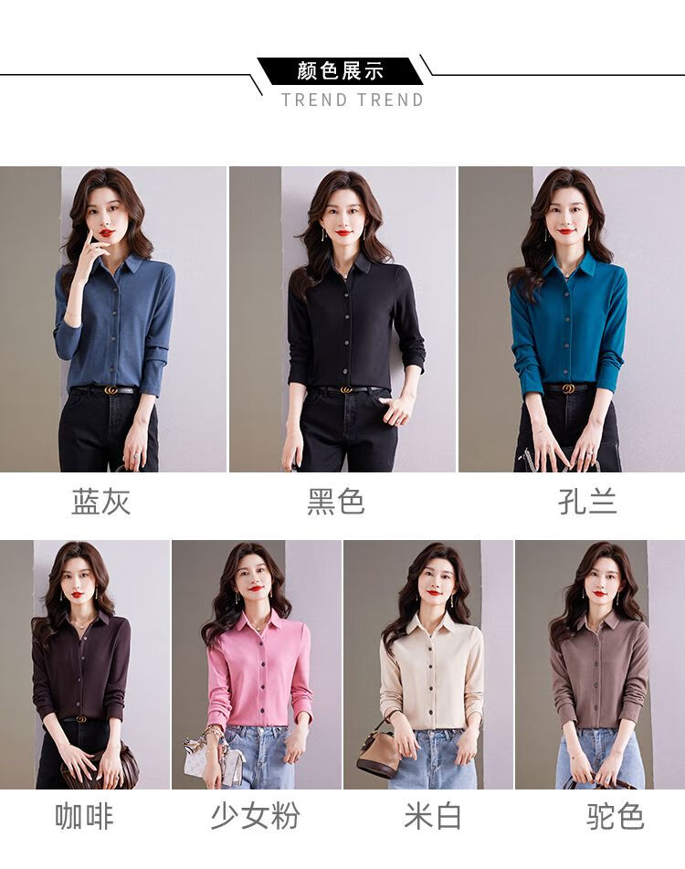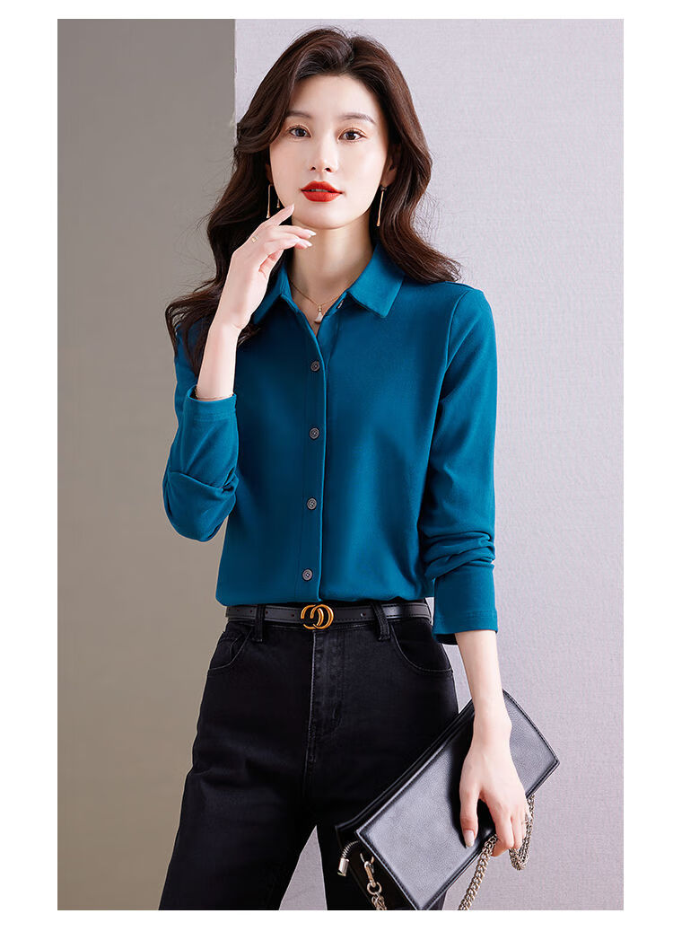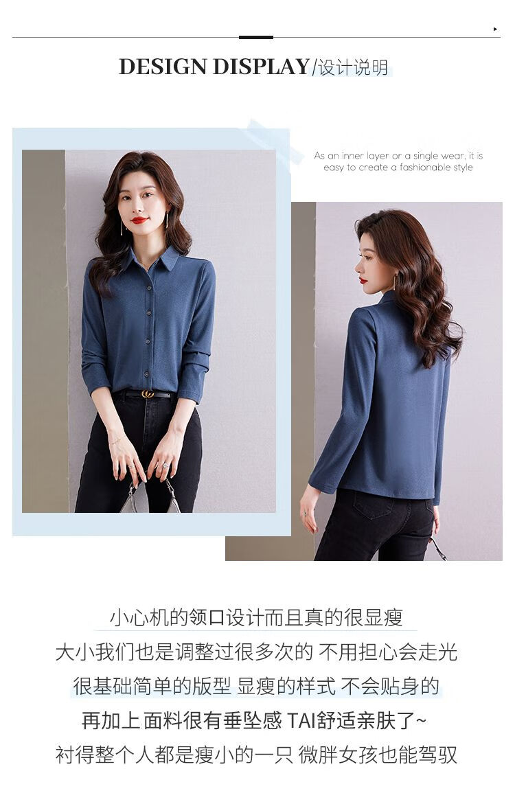 ROMON's new autumn and winter solid color double-sided German velvet long-sleeved shirt for women, versatile brushed plus velvet warm base cardigan shirt, blue gray M 85-100Jin Jin equals 0.5 kg
