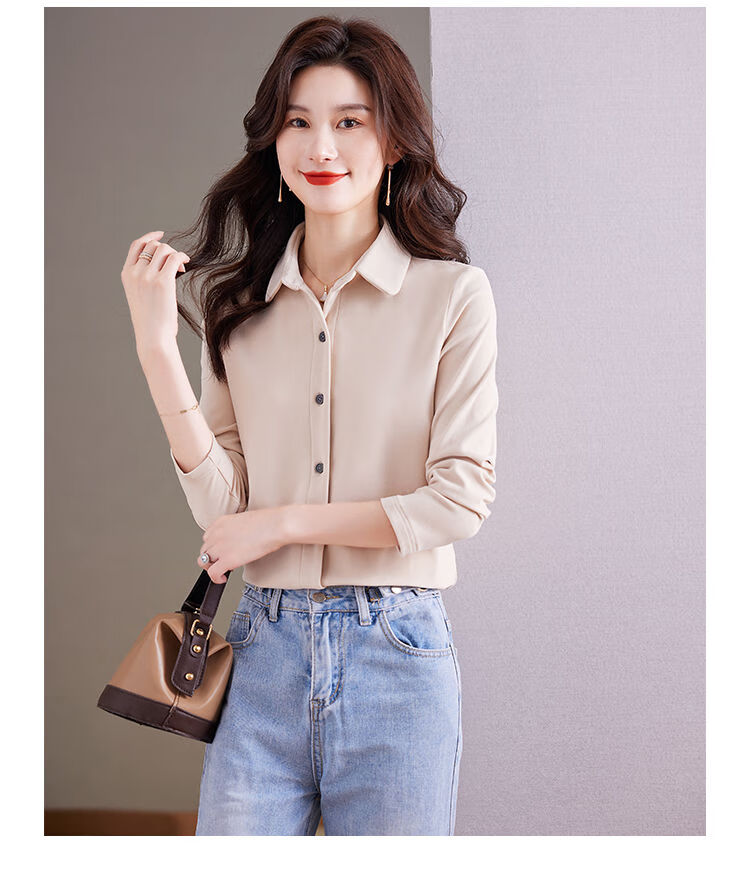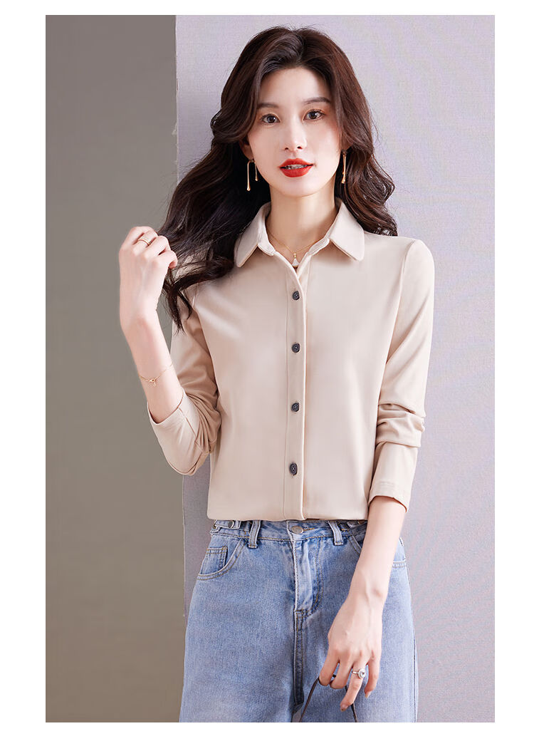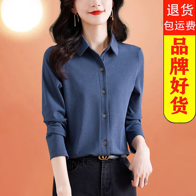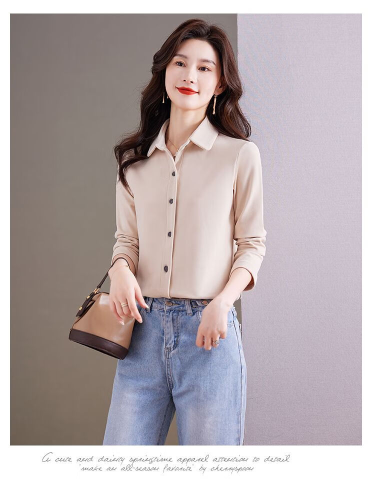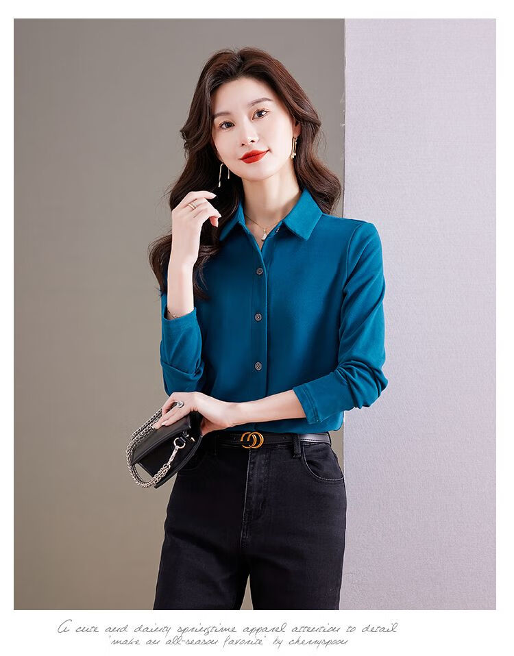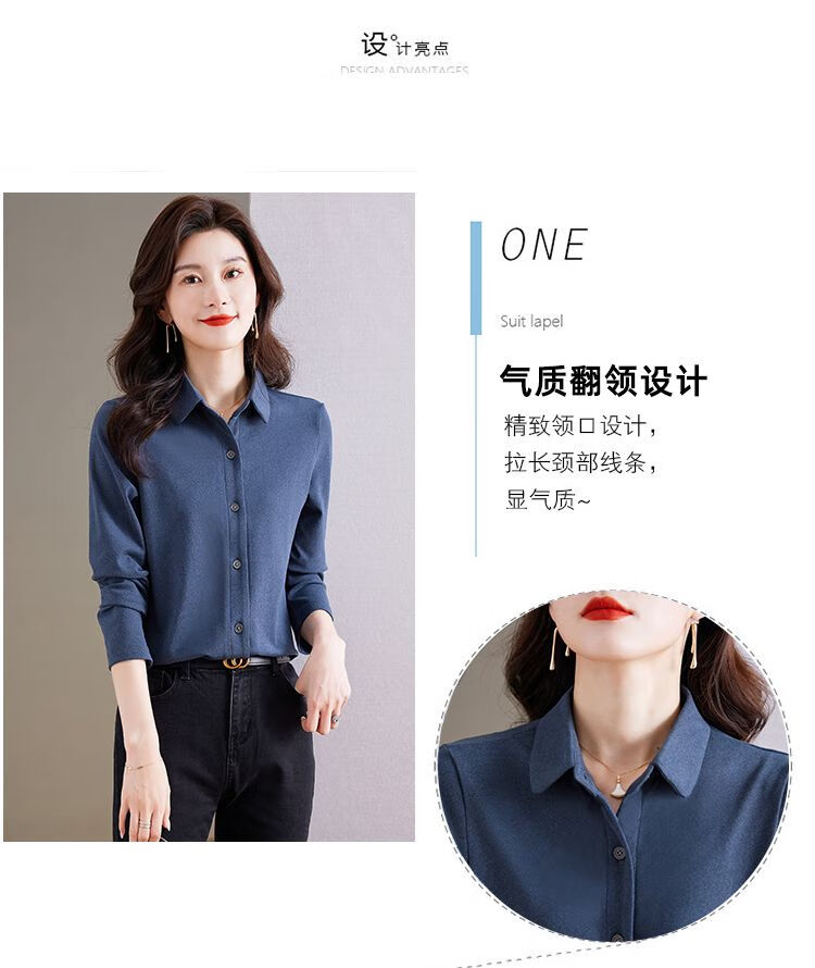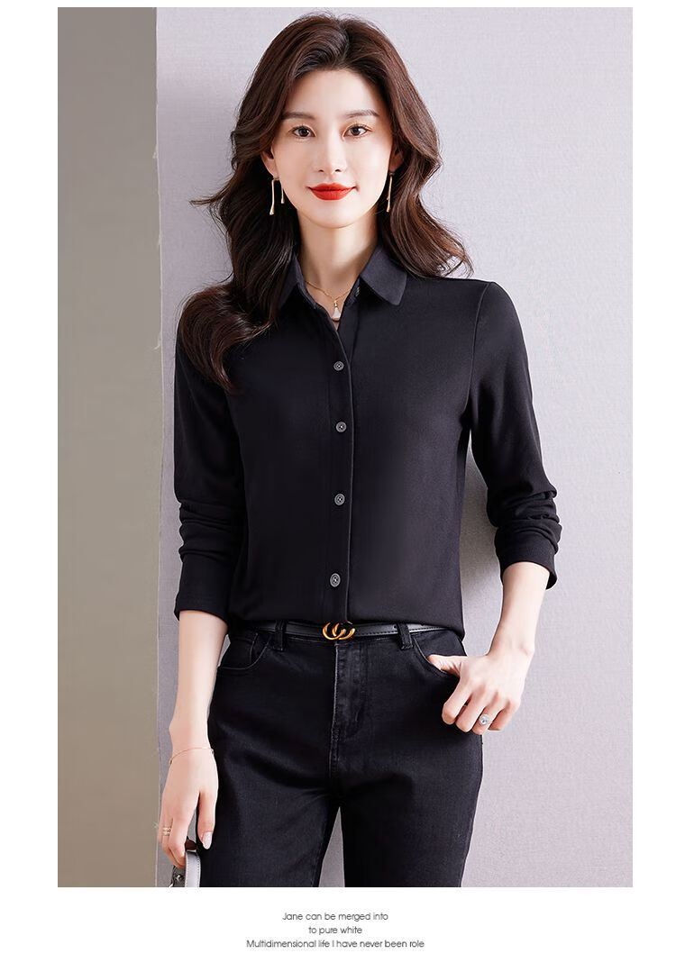 ROMON's new autumn and winter solid color double-sided German velvet long-sleeved shirt for women, versatile brushed plus velvet warm base cardigan shirt, blue gray M 85-100Jin Jin equals 0.5 kg
