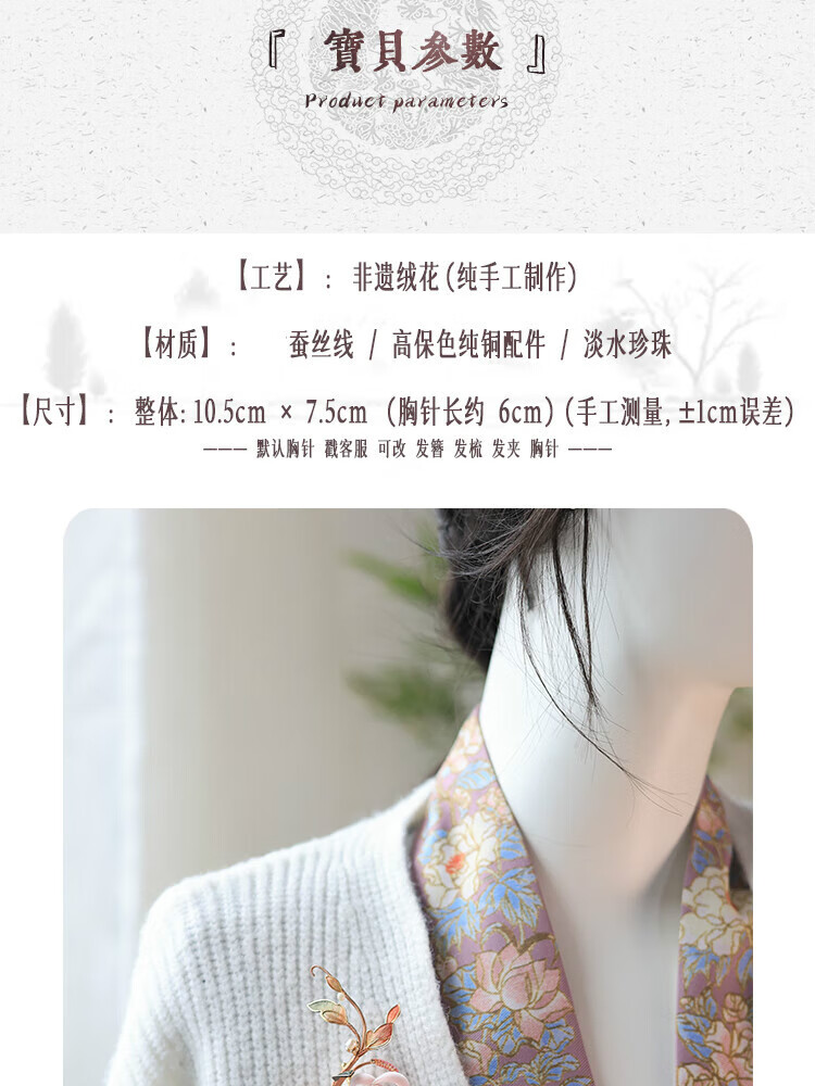 Meng Junchen Dongli Intangible Velvet Flower Hairpin Brooch National Style Ancient Method High-end Birthday Gift Cheongsam Hanfu Accessories Dongli Brooch