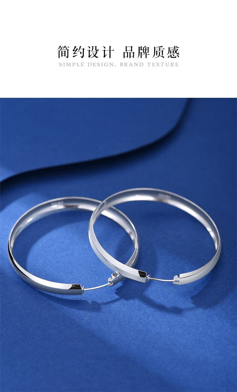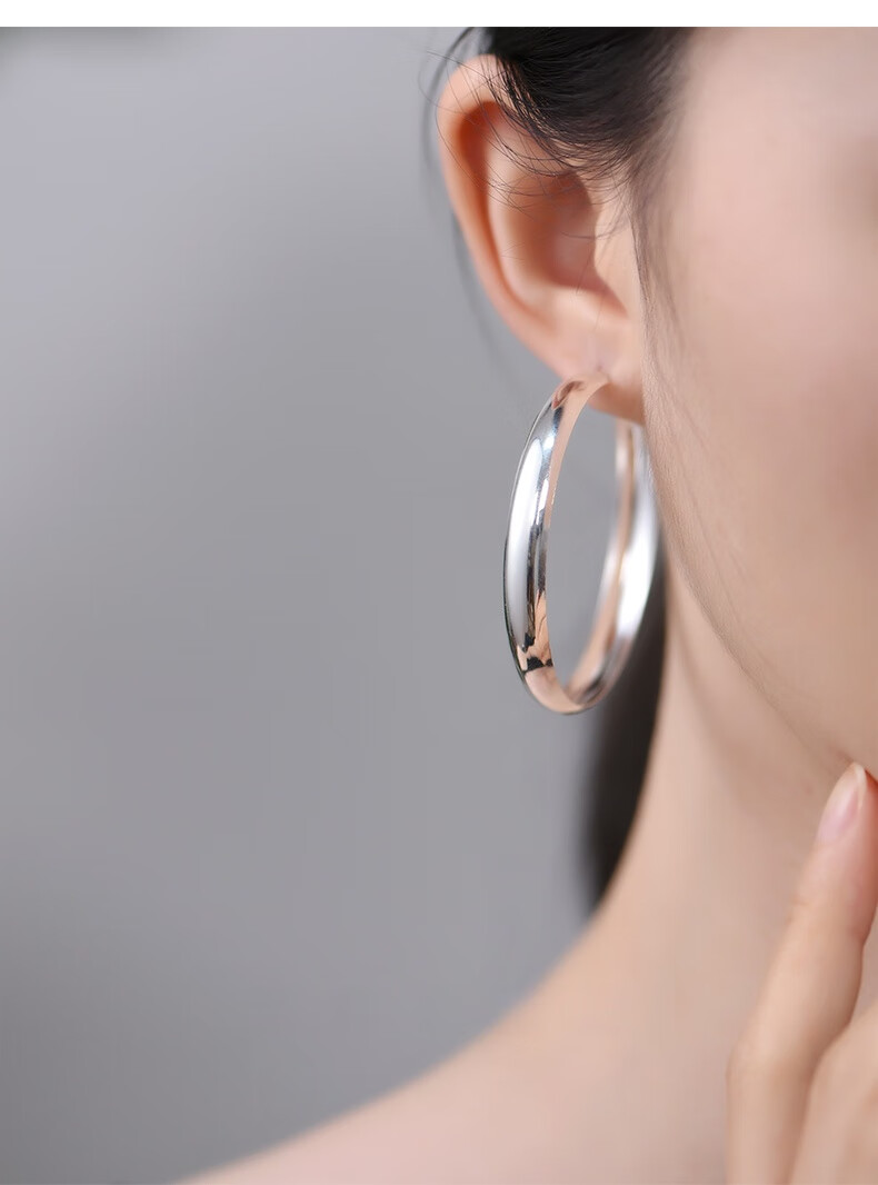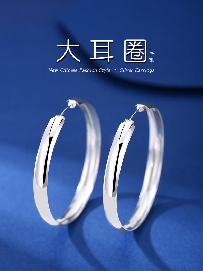 Jiuchangshi Tianyuan 999 sterling silver wide hoop earrings for women pure silver temperament large earrings birthday gift for girlfriend pure silver 999 30mm