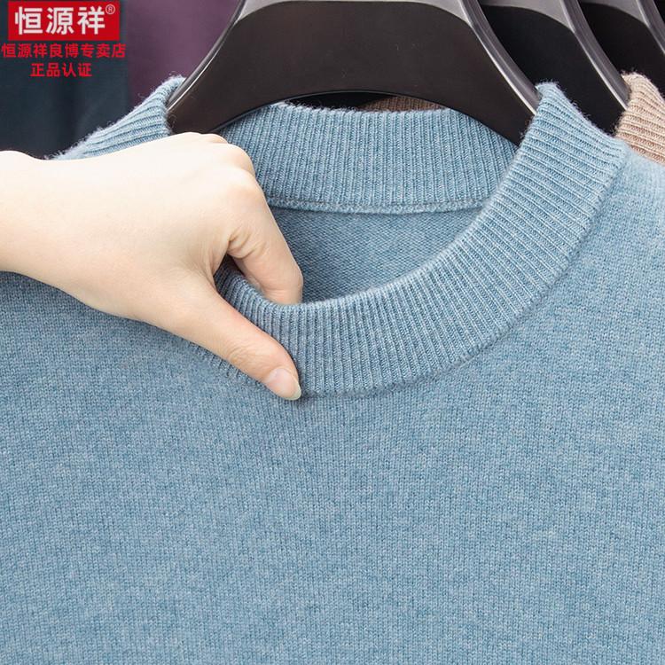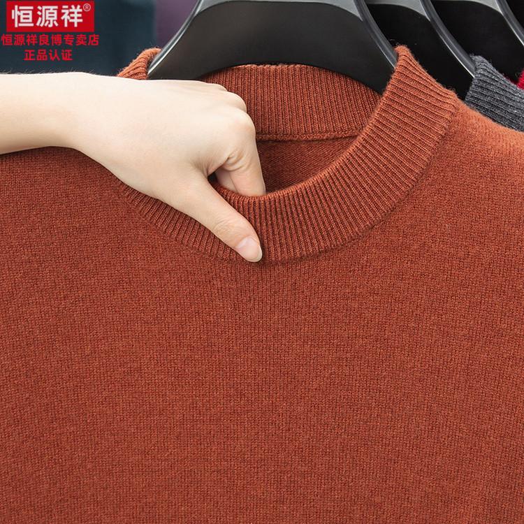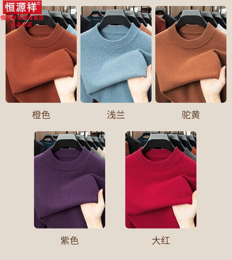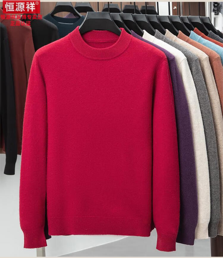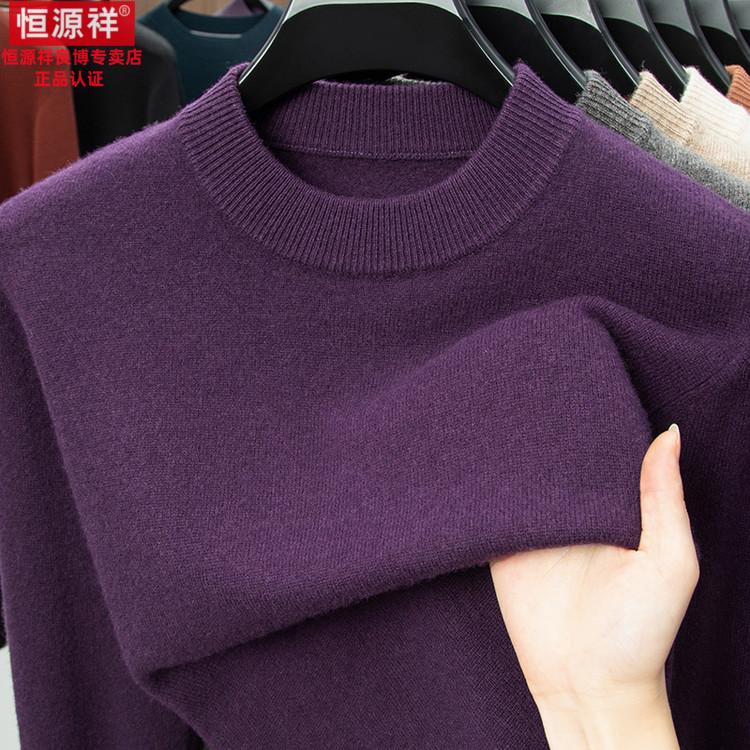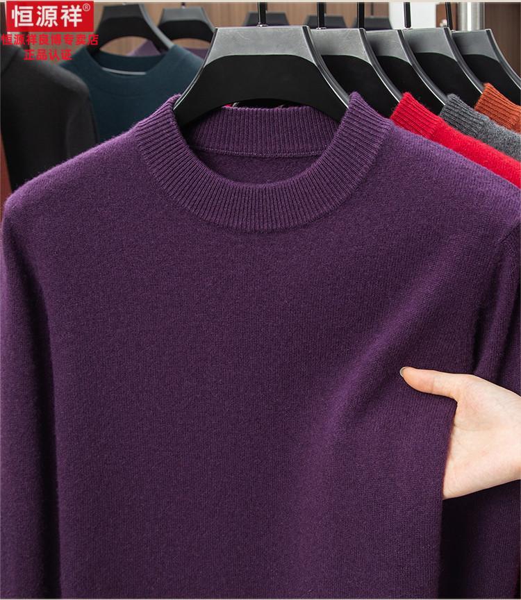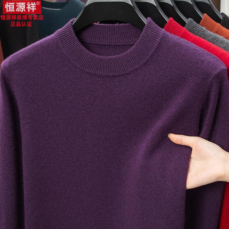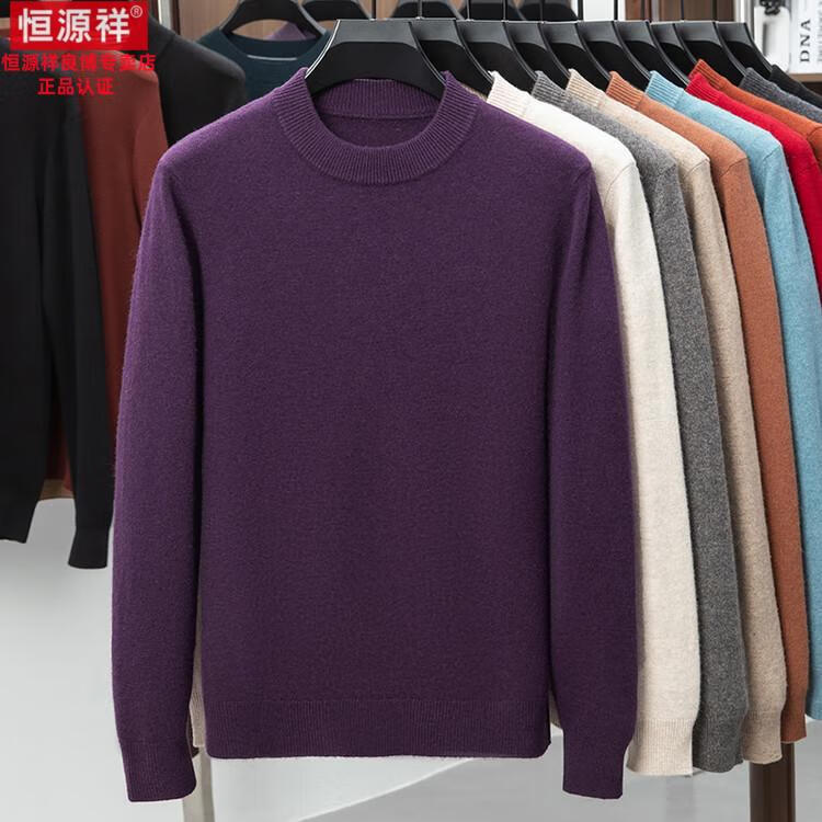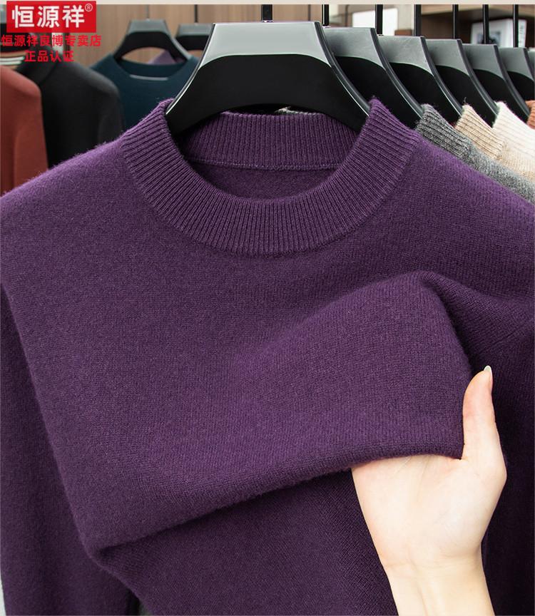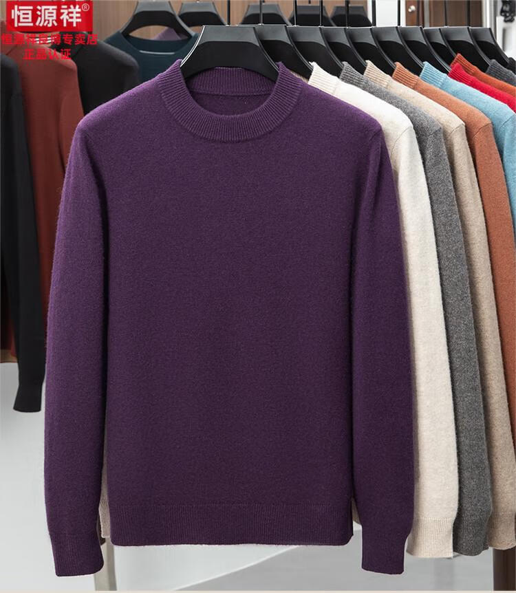 Hengyuanxiang 200 count worsted wool sweater men's 2025 winter new round neck sweater warm dad sweater thick purple thick XL