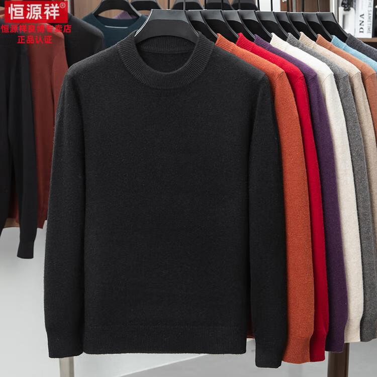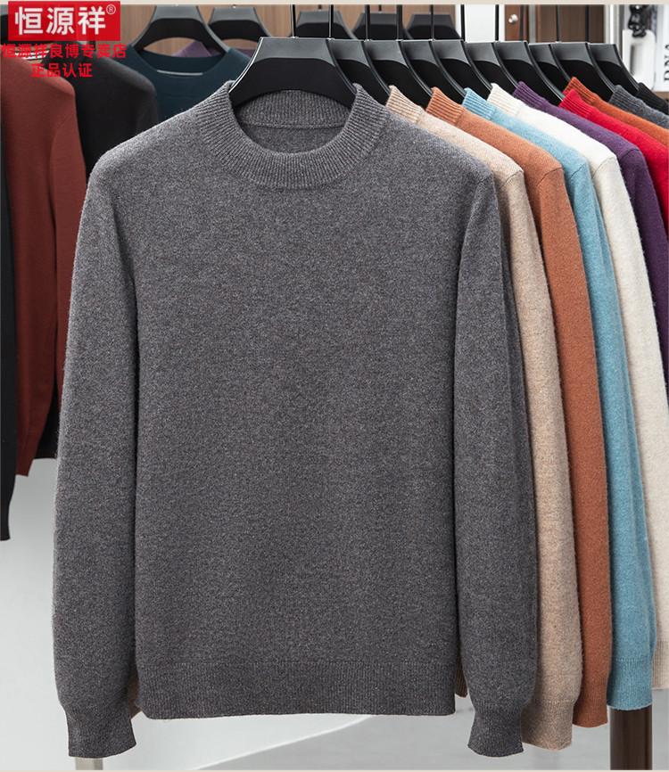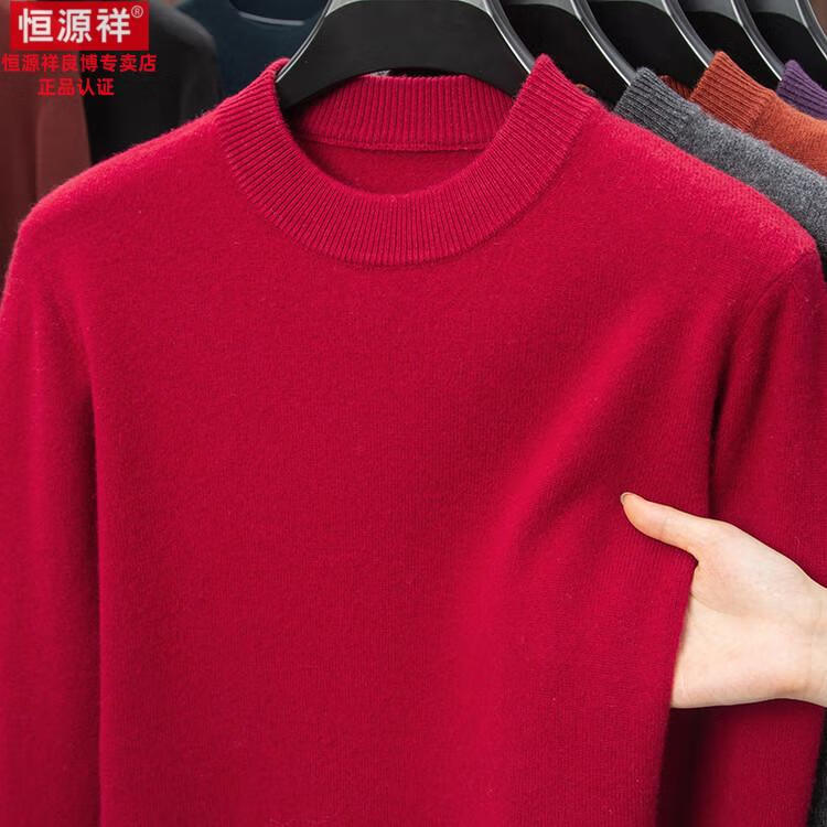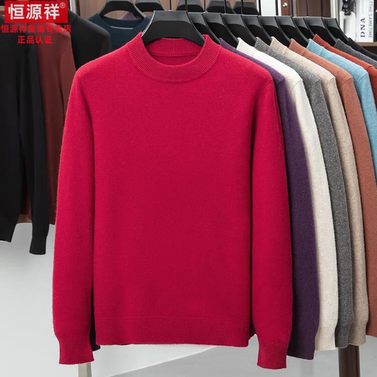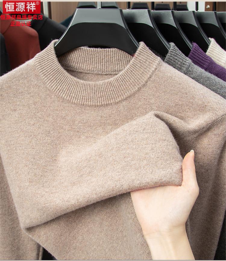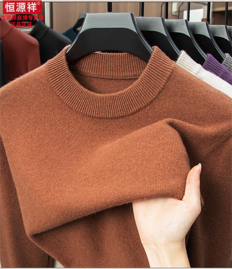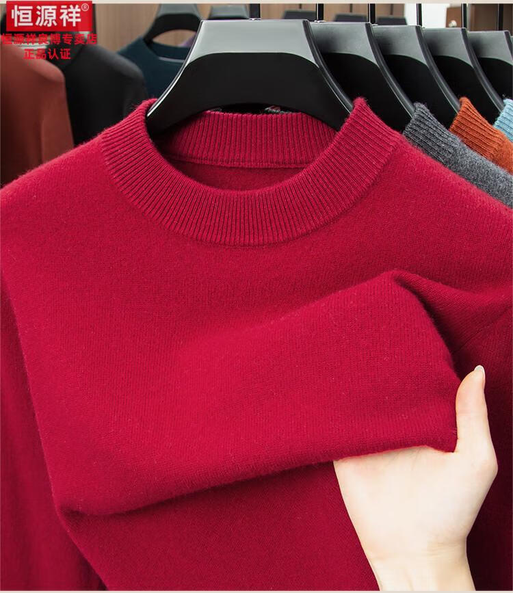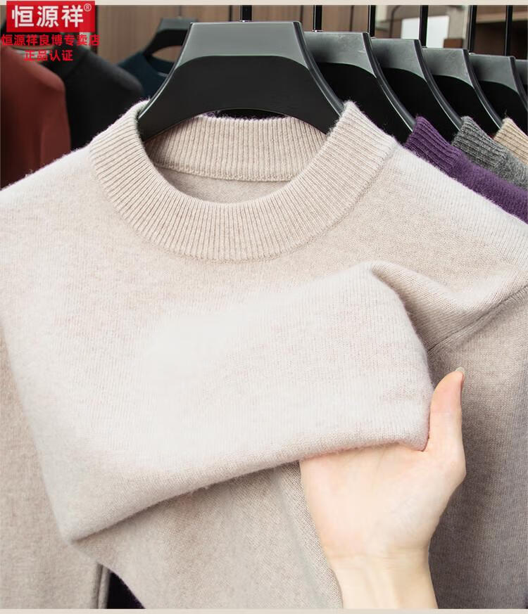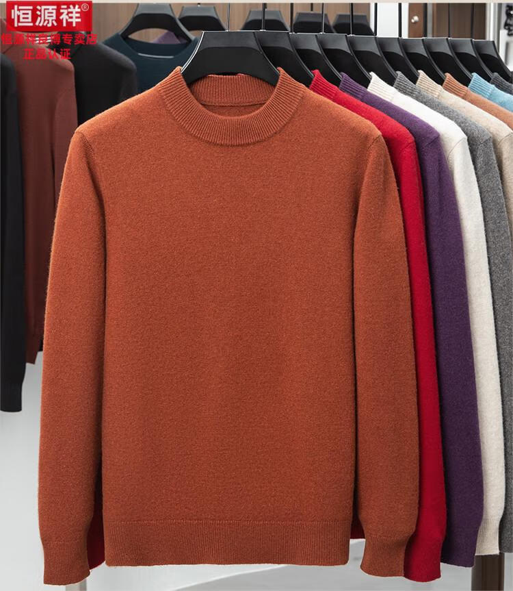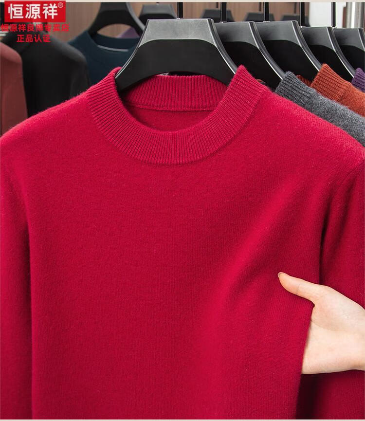 Hengyuanxiang 200 count worsted wool sweater men's 2025 winter new round neck sweater warm dad sweater thick purple thick XL