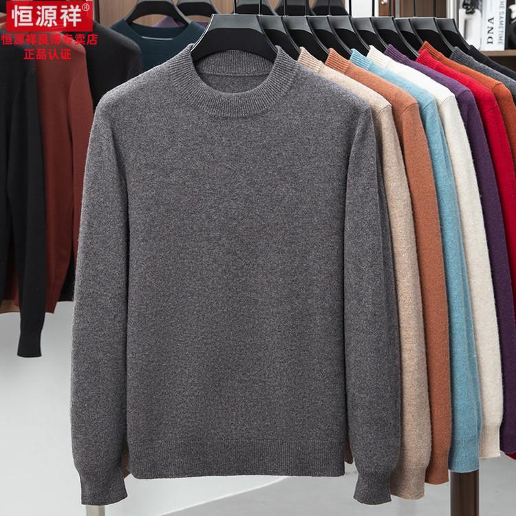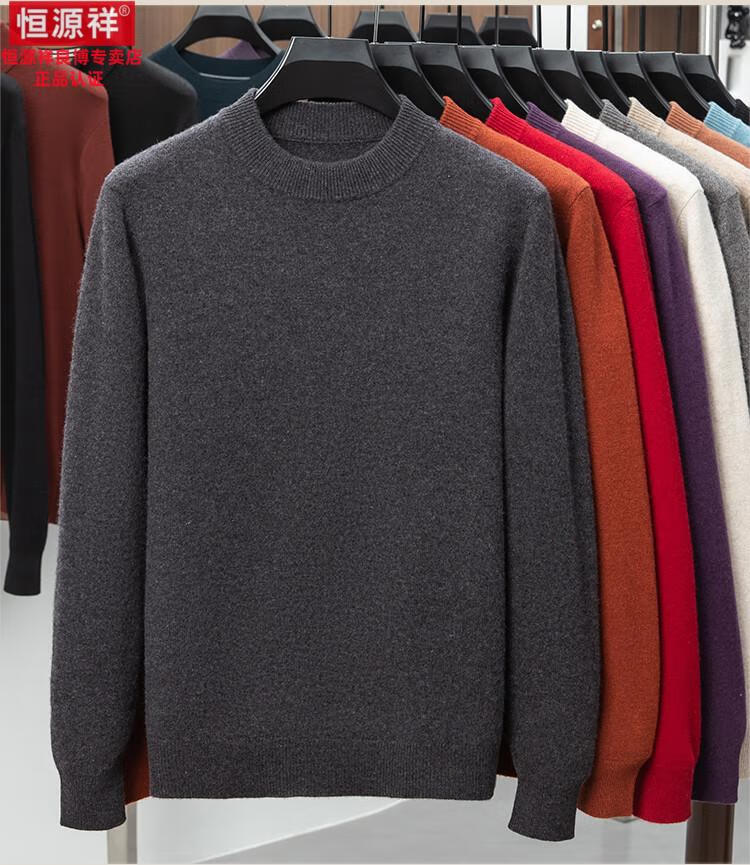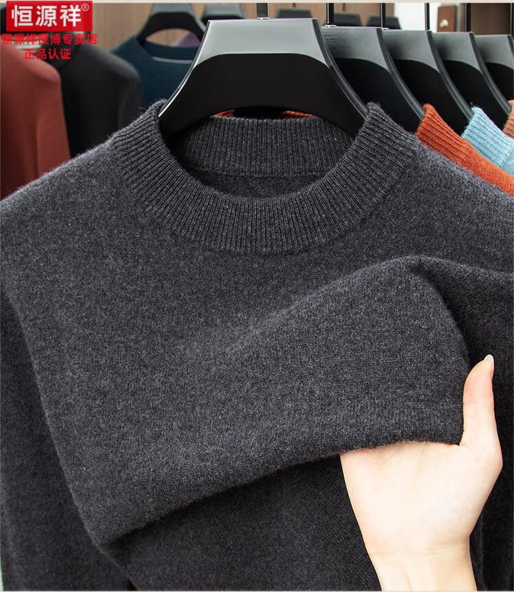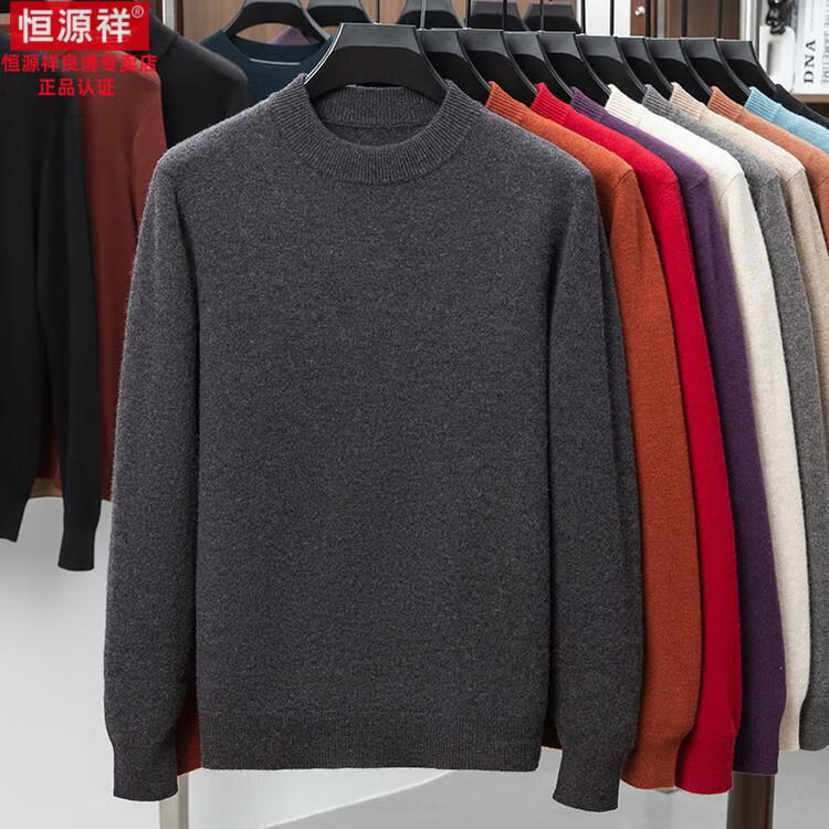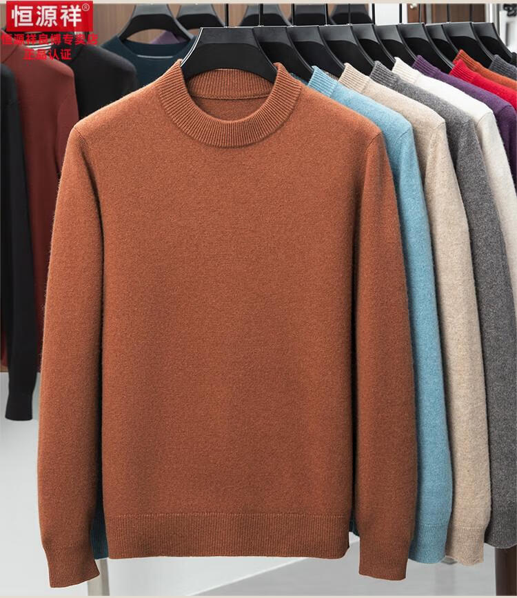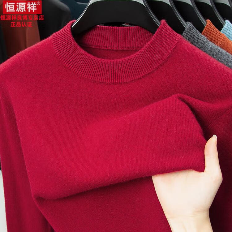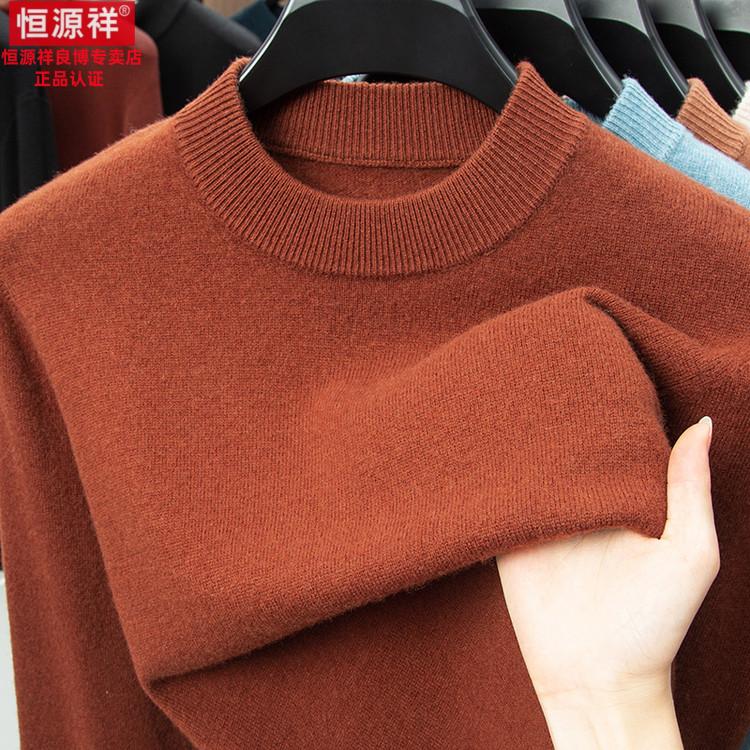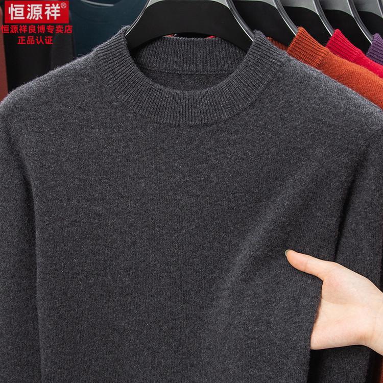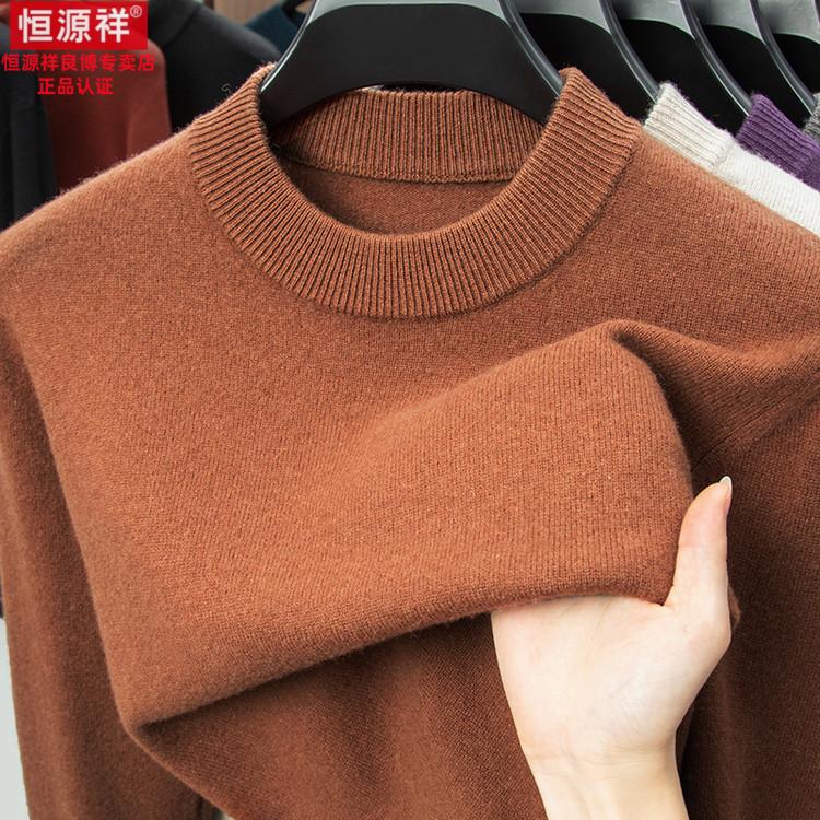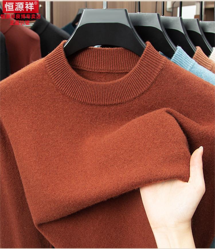 Hengyuanxiang 200 count worsted wool sweater men's 2025 winter new round neck sweater warm dad sweater thick purple thick XL