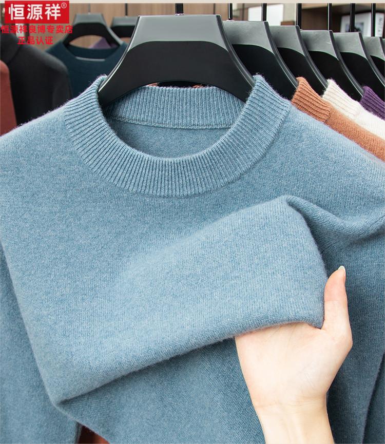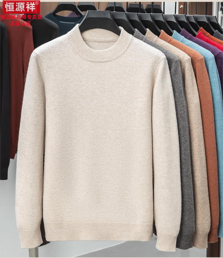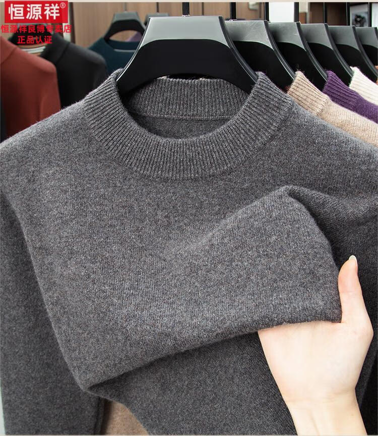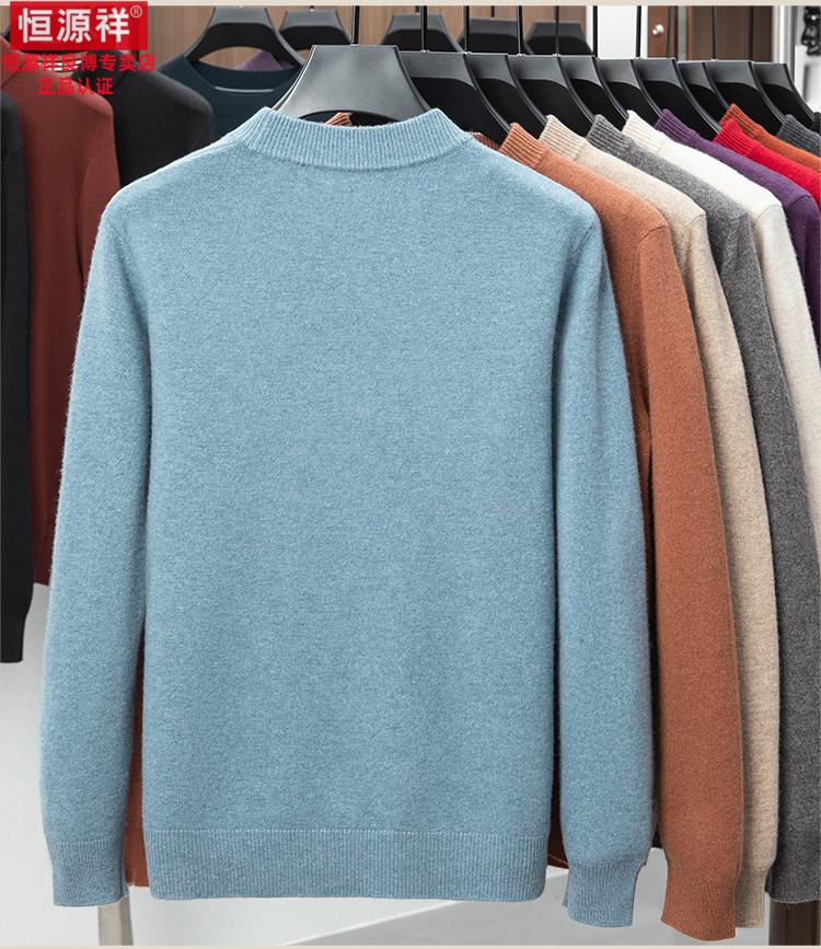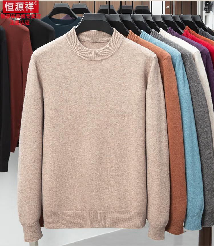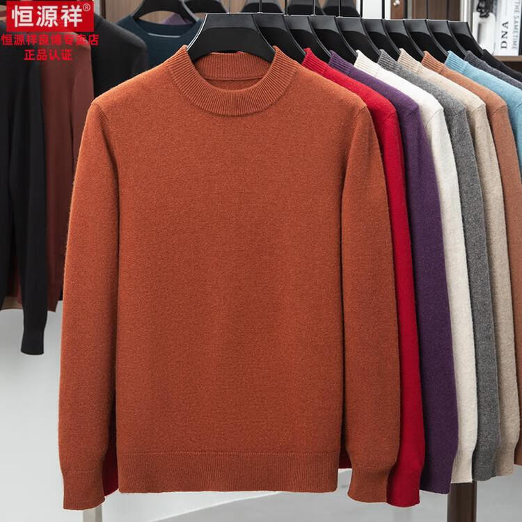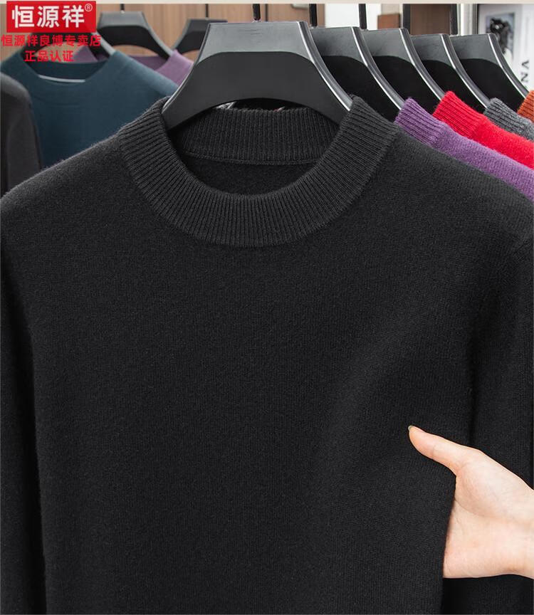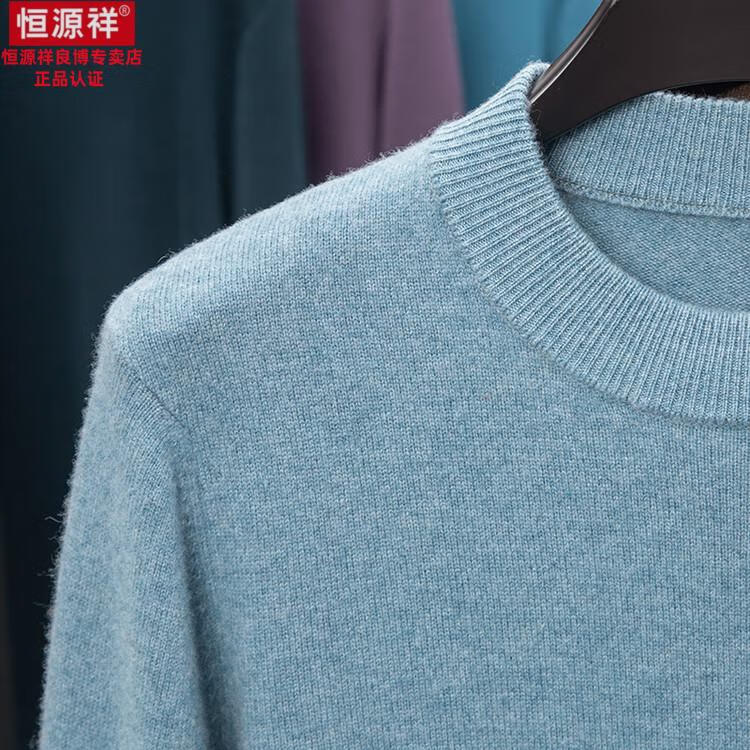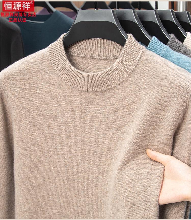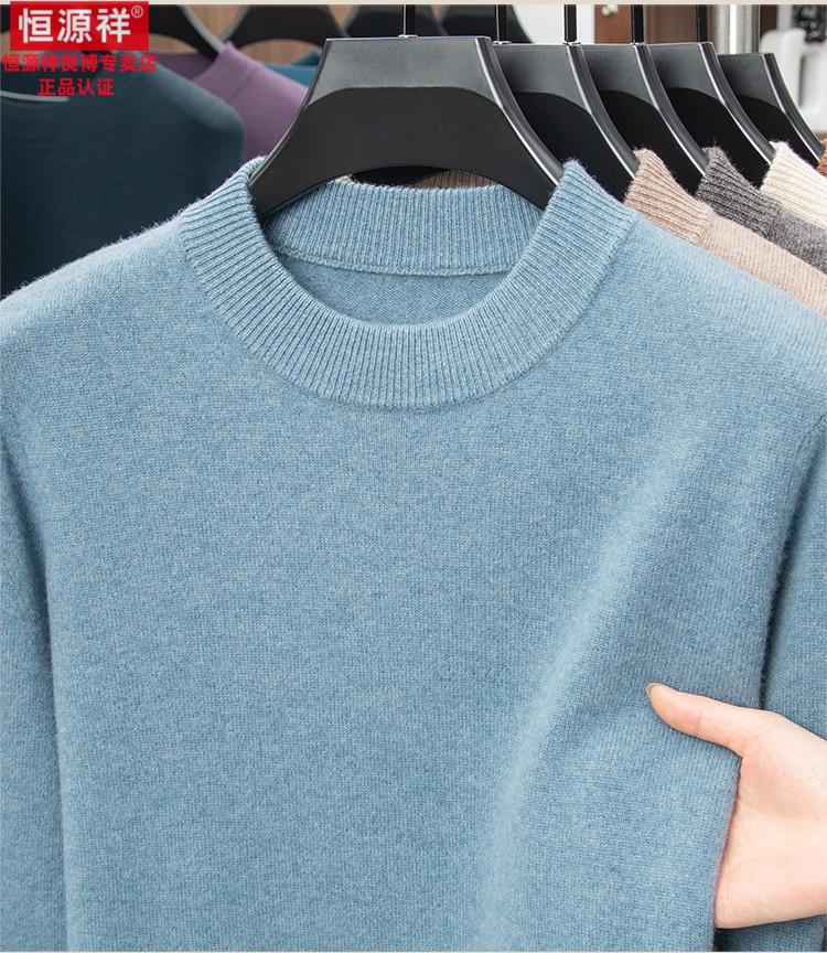 Hengyuanxiang 200 count worsted wool sweater men's 2025 winter new round neck sweater warm dad sweater thick purple thick XL