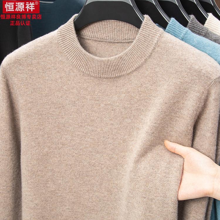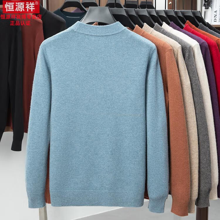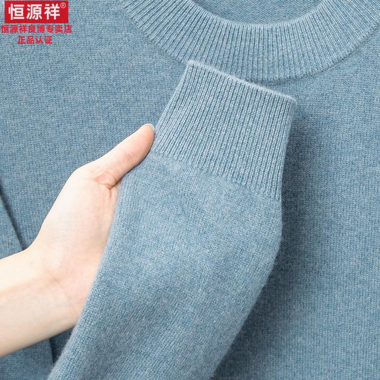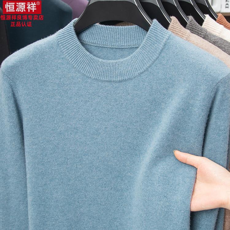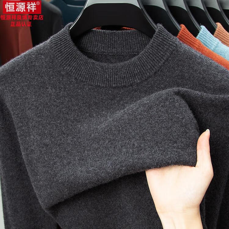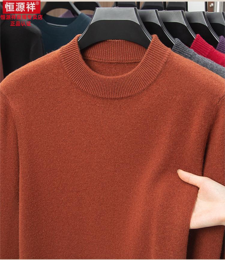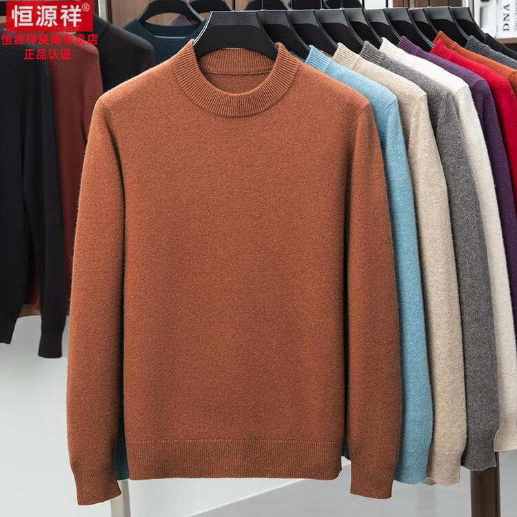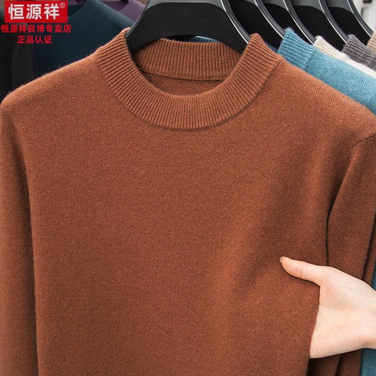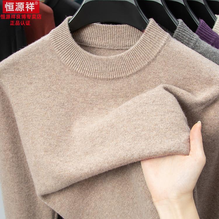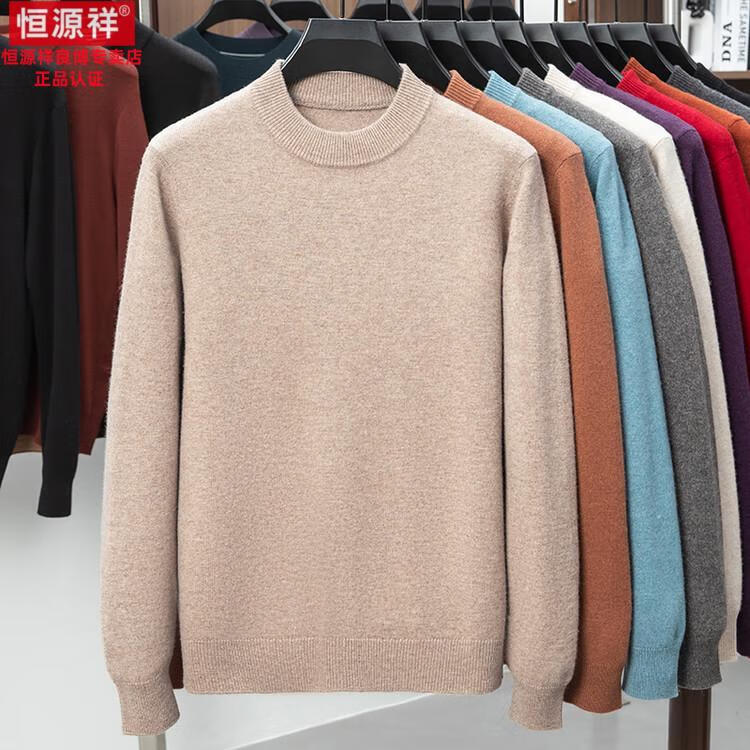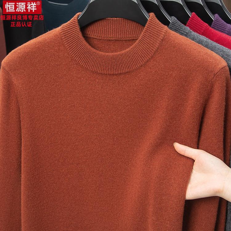 Hengyuanxiang 200 count worsted wool sweater men's 2025 winter new round neck sweater warm dad sweater thick purple thick XL