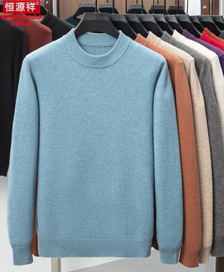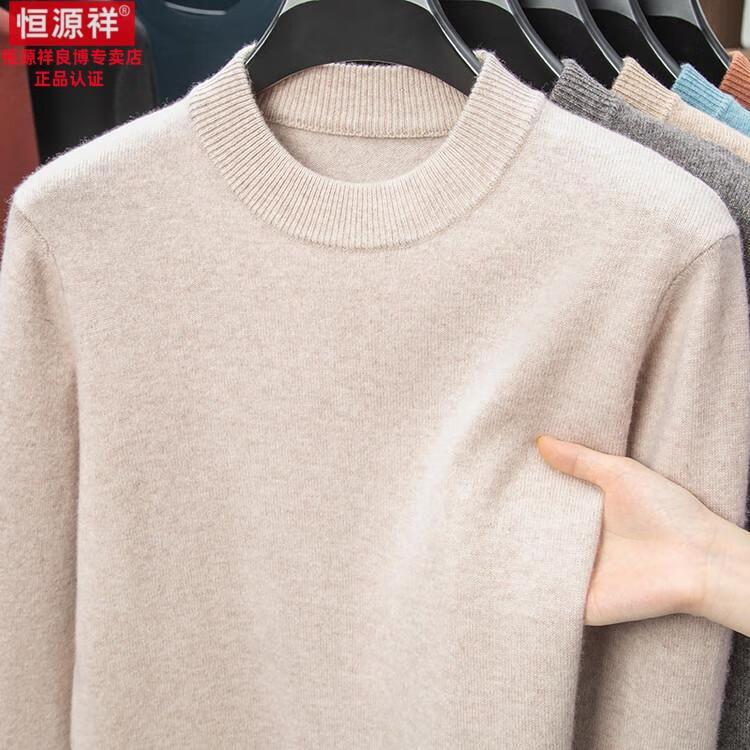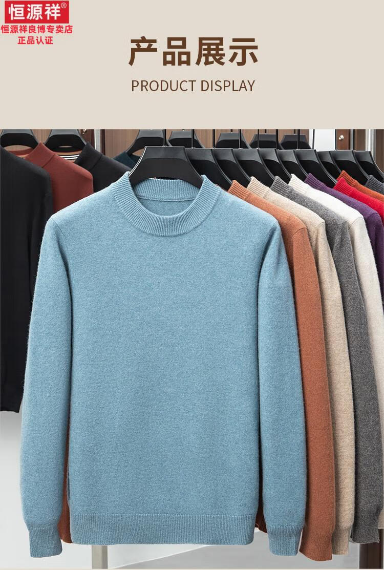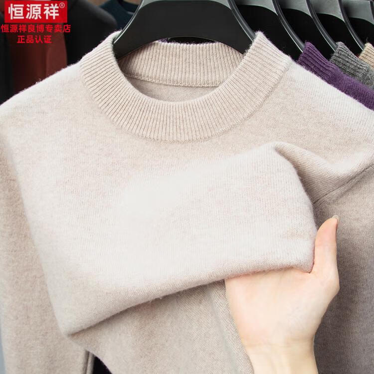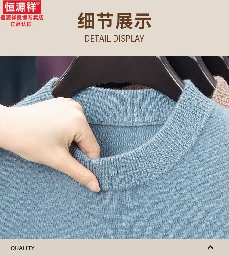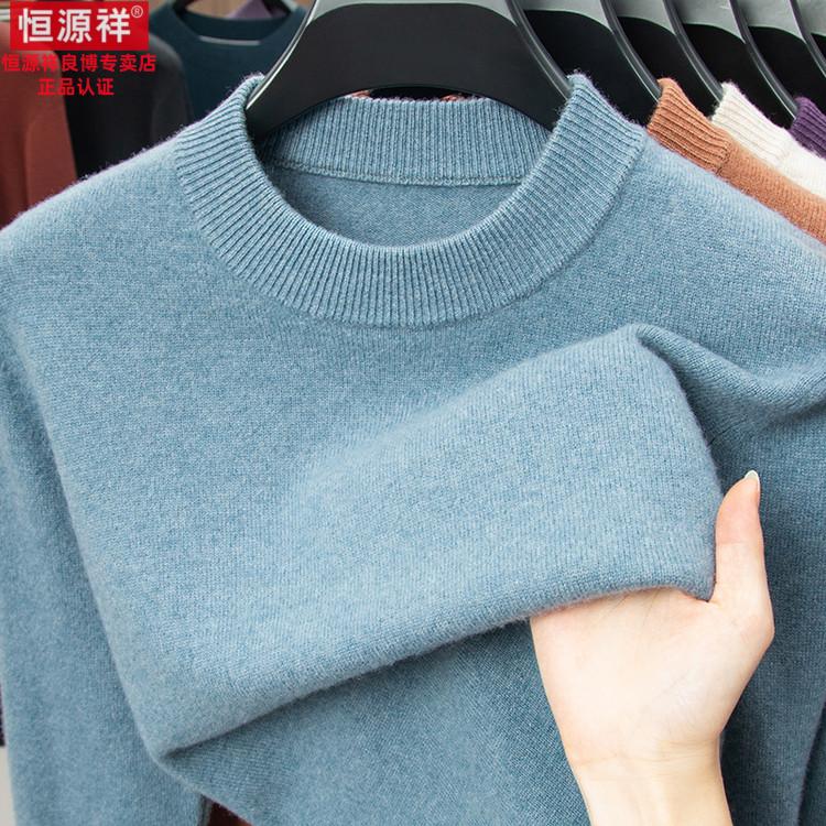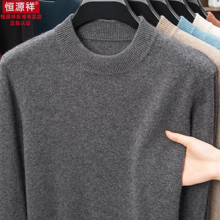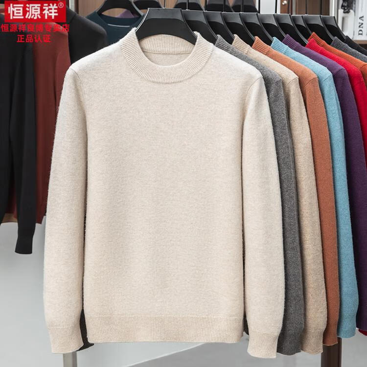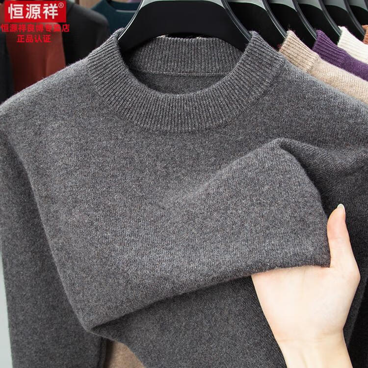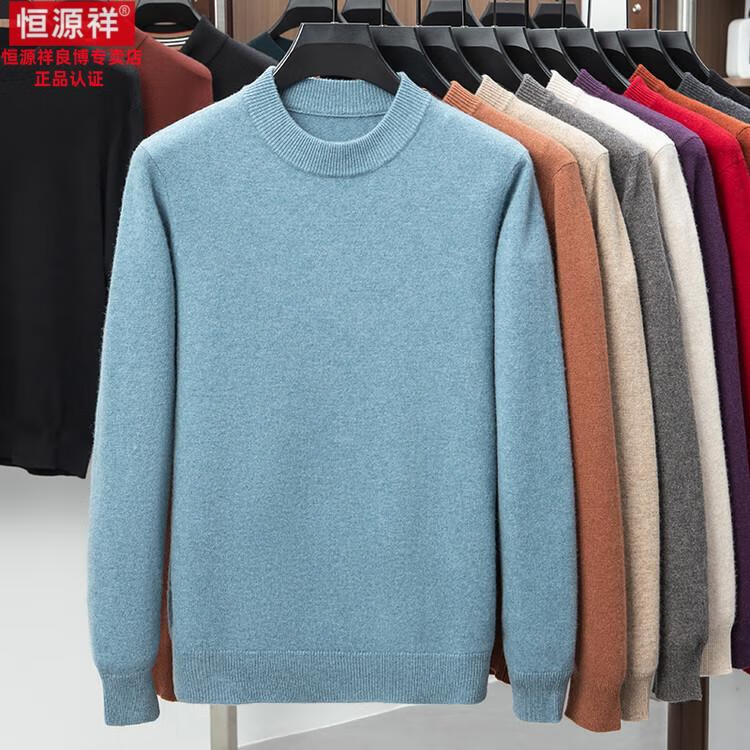 Hengyuanxiang 200 count worsted wool sweater men's 2025 winter new round neck sweater warm dad sweater thick purple thick XL