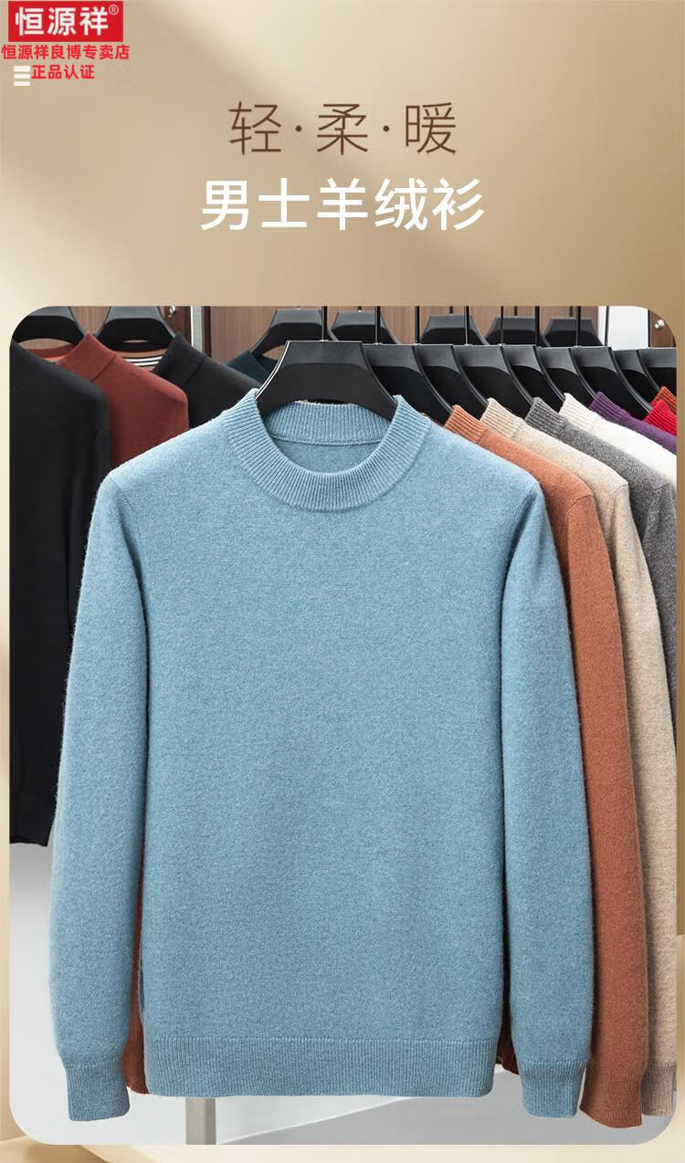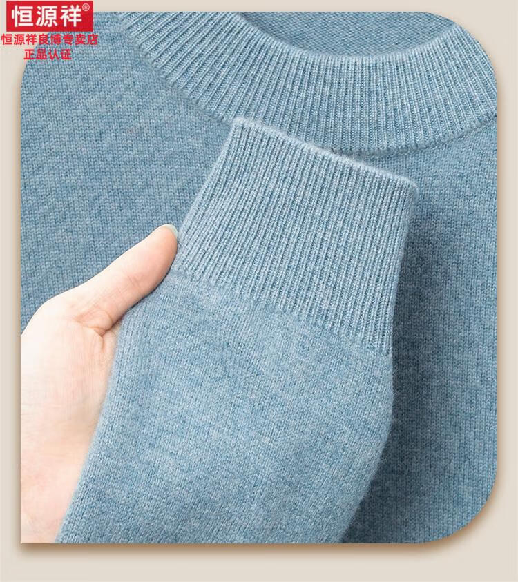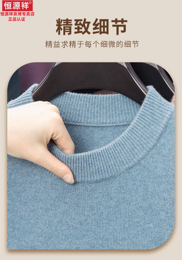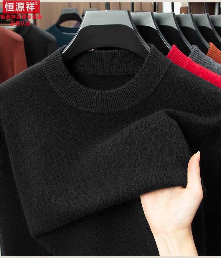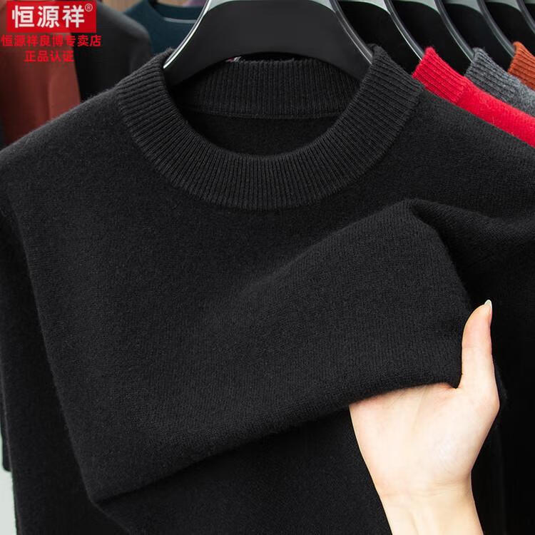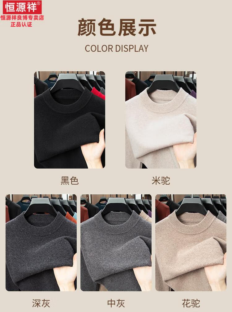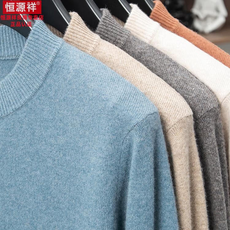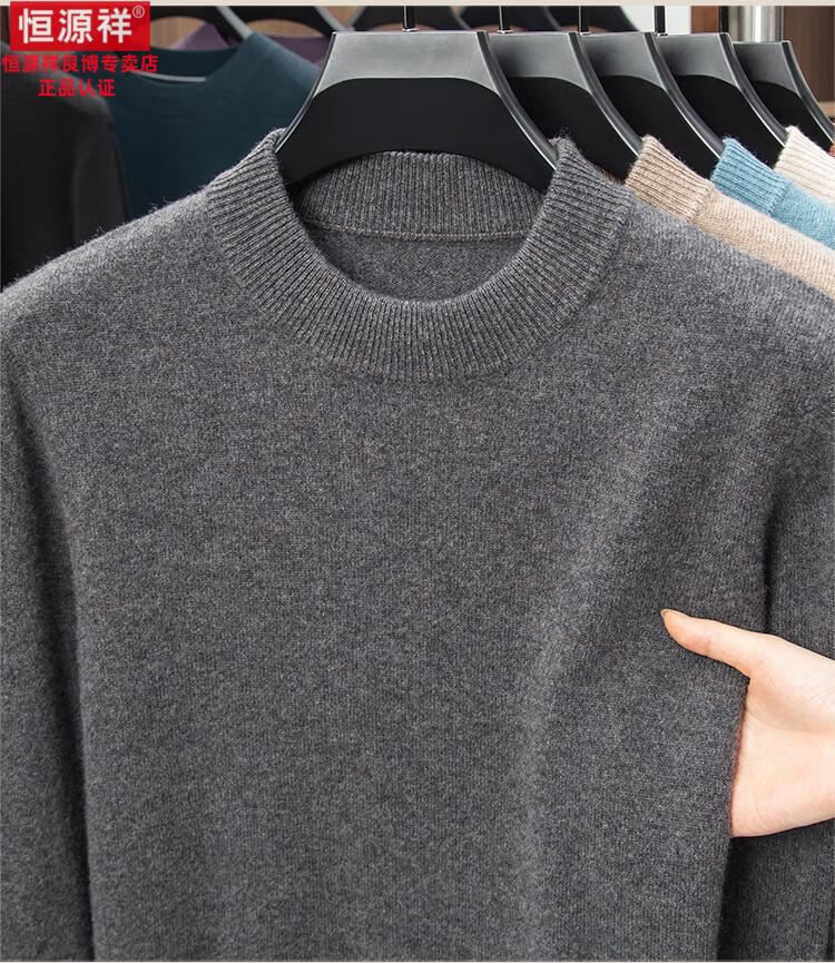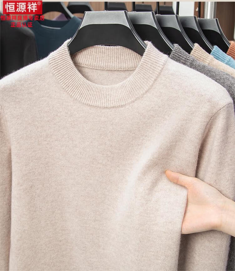 Hengyuanxiang 200 count worsted wool sweater men's 2025 winter new round neck sweater warm dad sweater thick purple thick XL