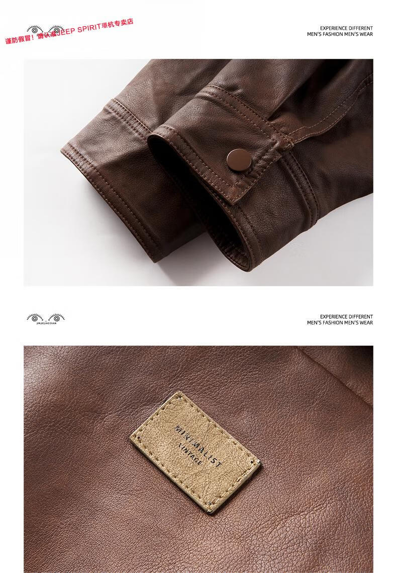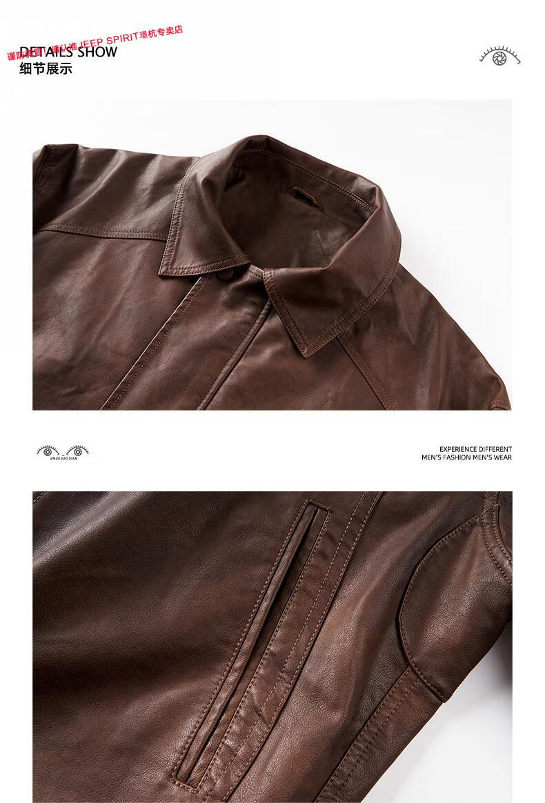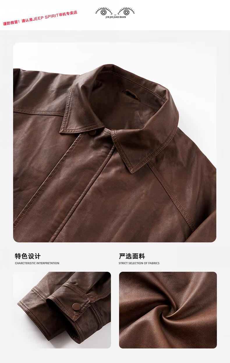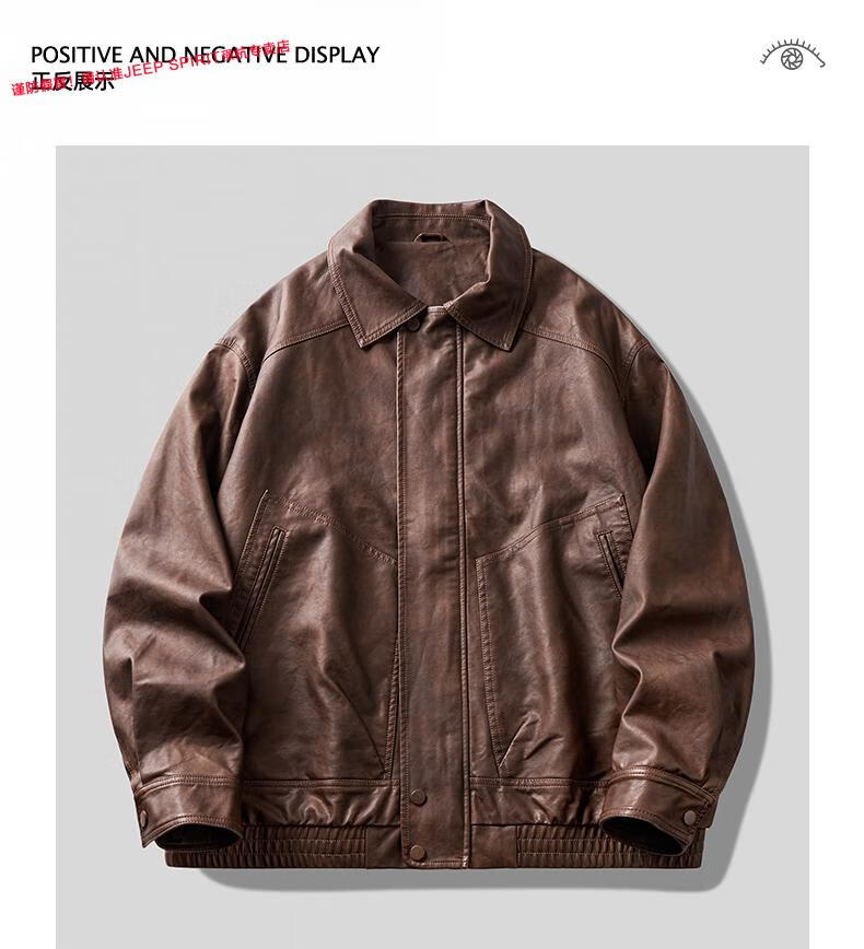 JEEP SPIRIT Jeep high-definition saddle vegetable tanned oil leather motorcycle lapel leather jacket for men 2025 autumn loose leather jacket for men, coffee color, handsome loose version