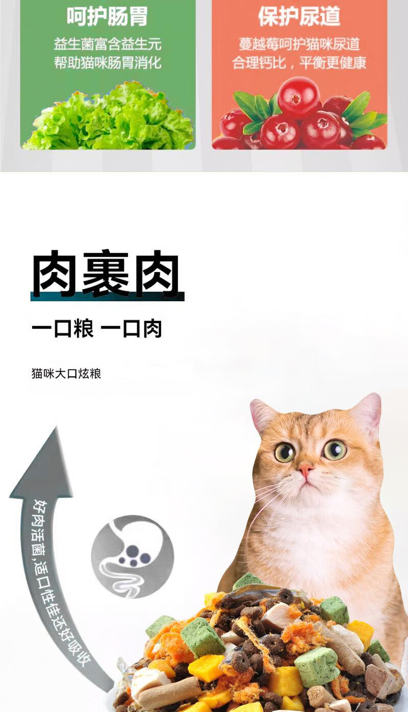 Chongyunpei cat food is half freeze-dried and half grain, full price cat staple food, general fattening and hair gills for adult cats and kittens, fresh meat cat food + gastrointestinal probiotics 5Jin Jin is equal to 0.5kg