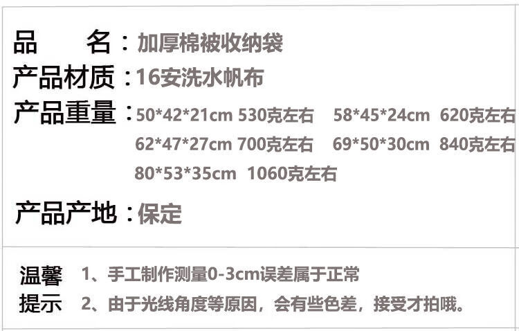 Bubumu kapok quilt bag canvas large capacity moving portable baby clothes luggage bag 62*47*27cm dark gray portable