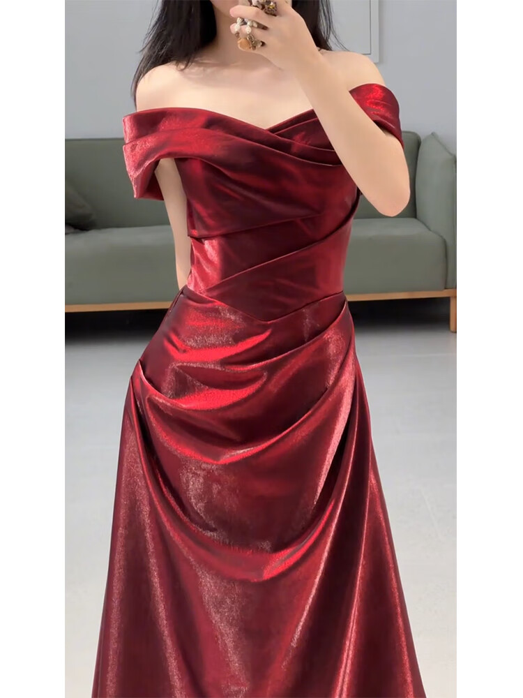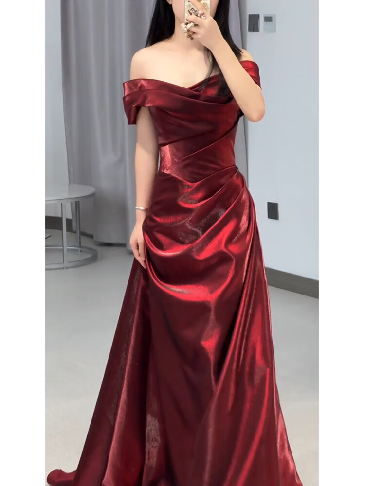 Wutuo one-shoulder toast dress burgundy wedding evening dress female host engagement banquet light luxury bride burgundy M
