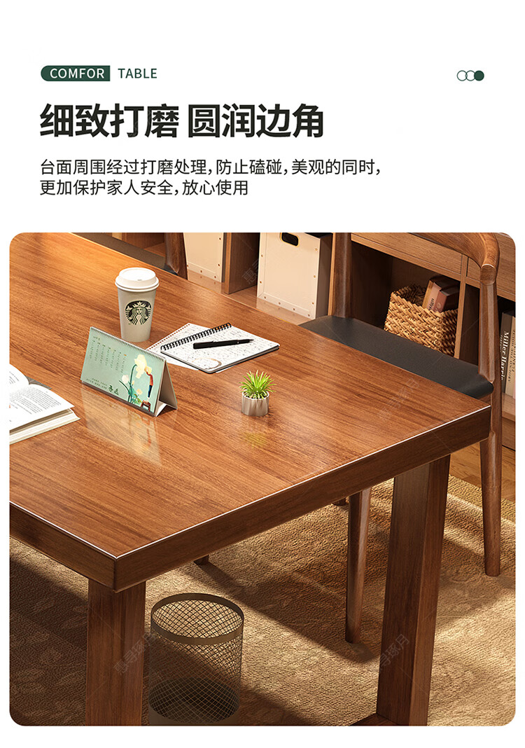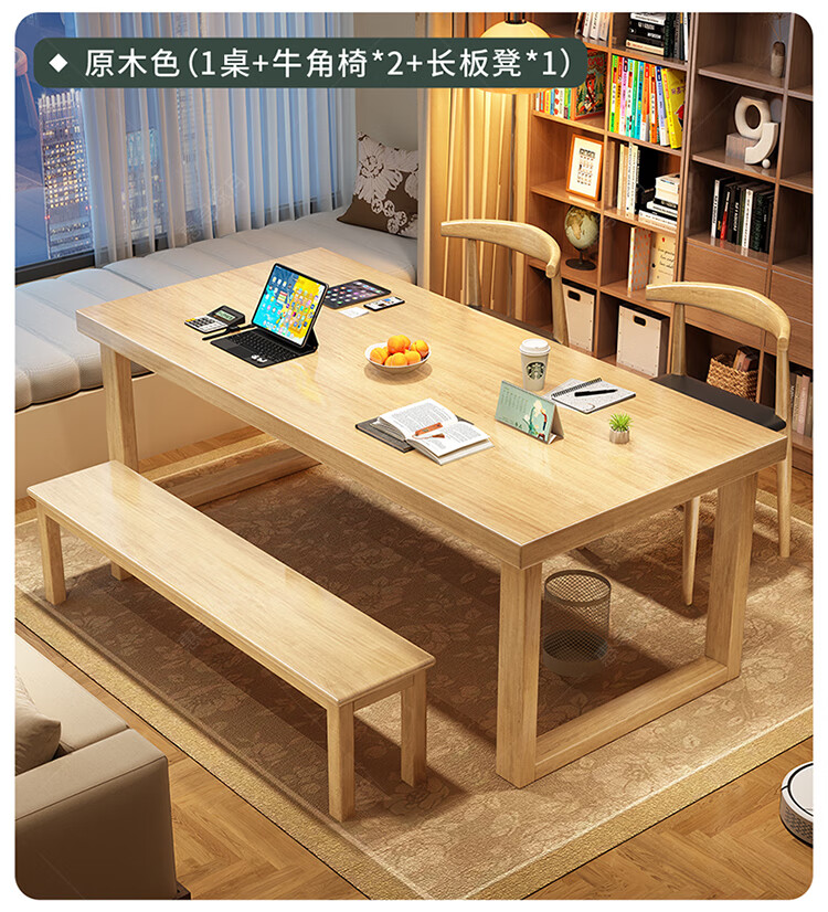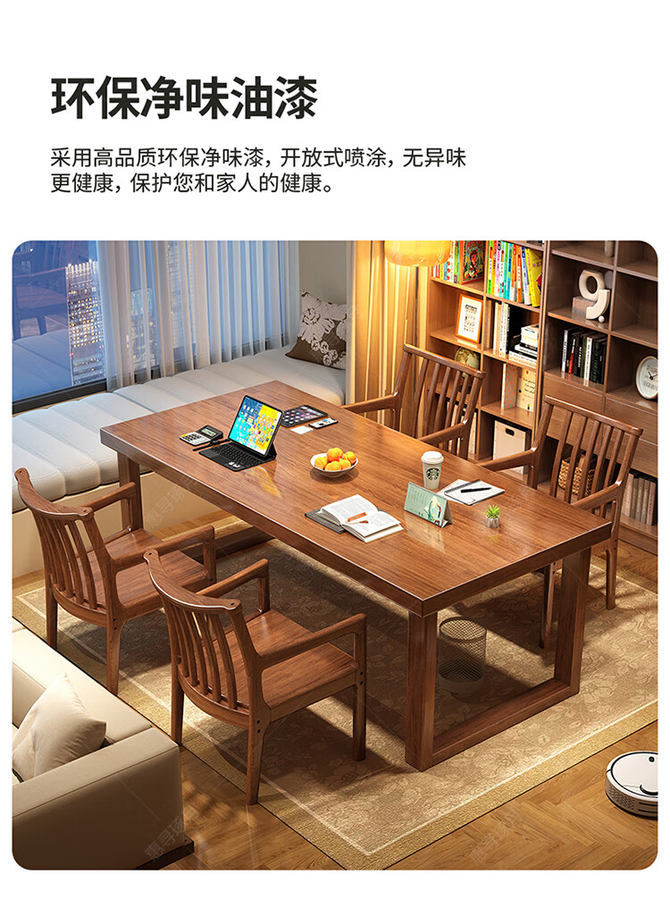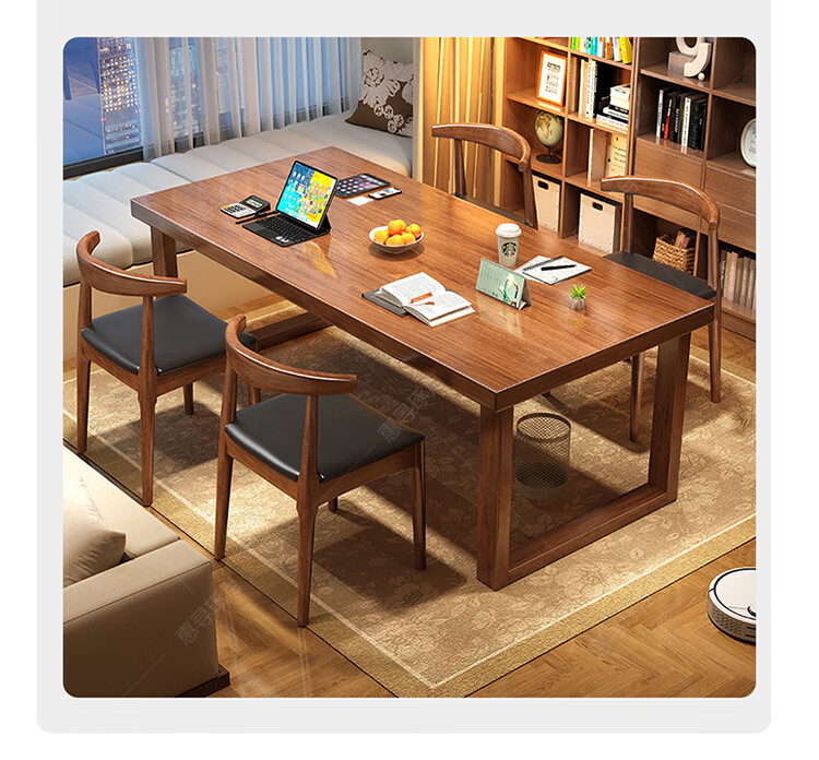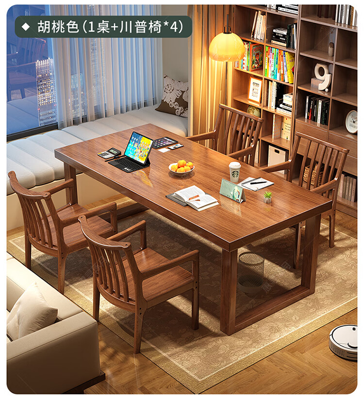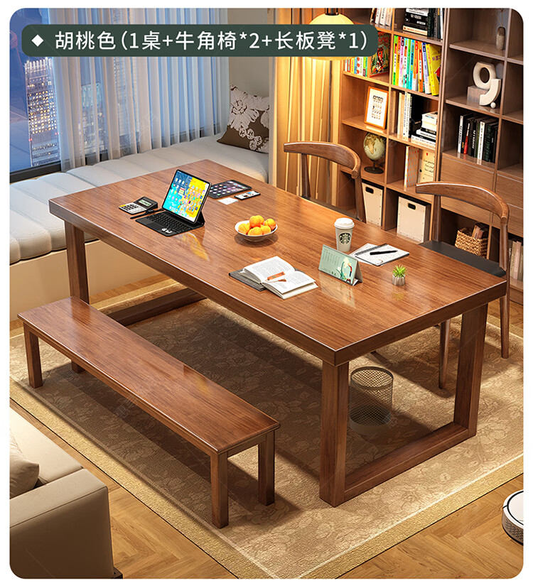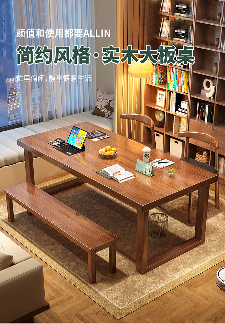 Huixun solid wood large desk open workbench home large board table living room study integrated long table parent-child study table walnut color #large board table 140cm*80cm*75cm desktop thickness 4cm