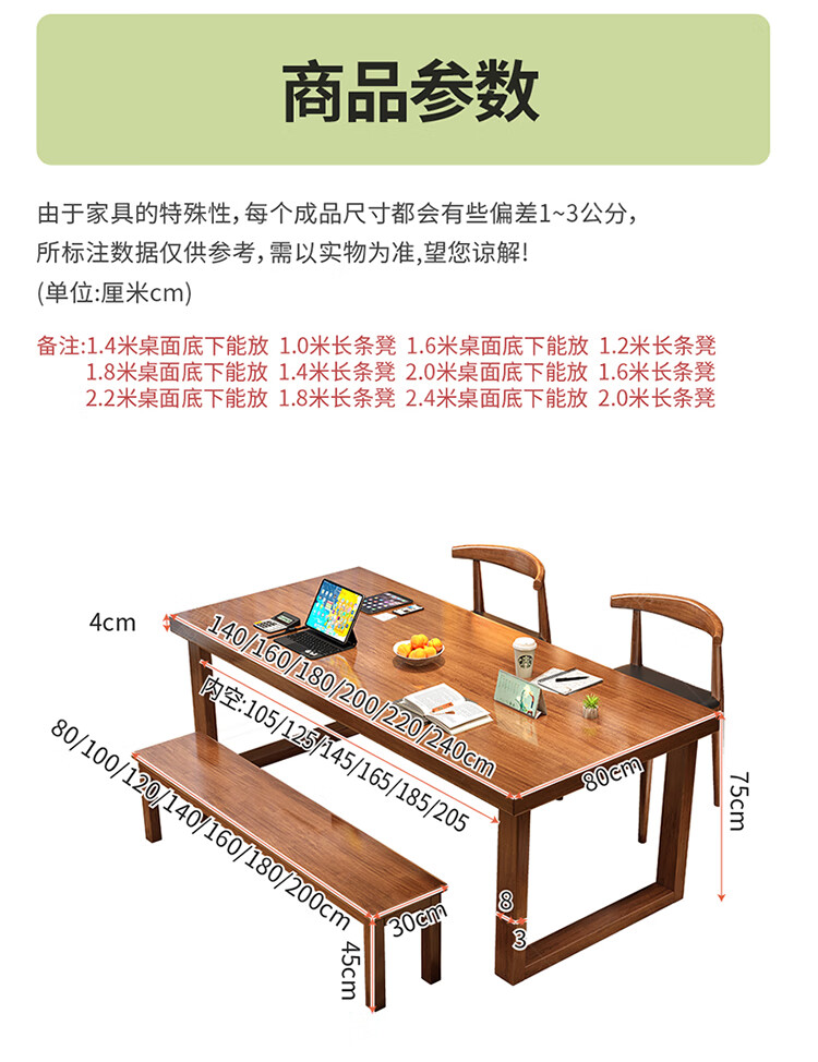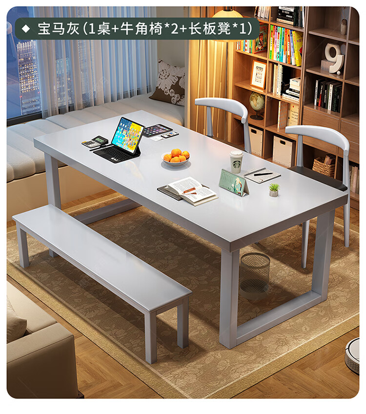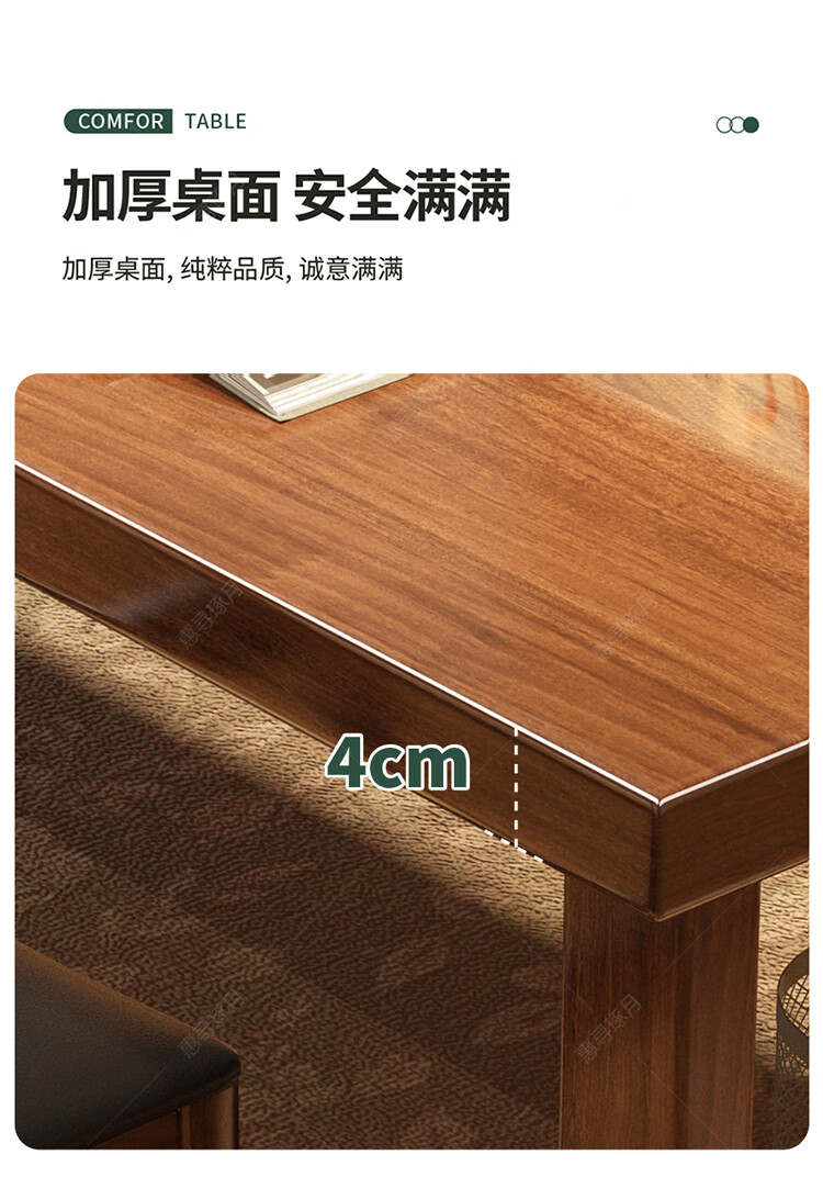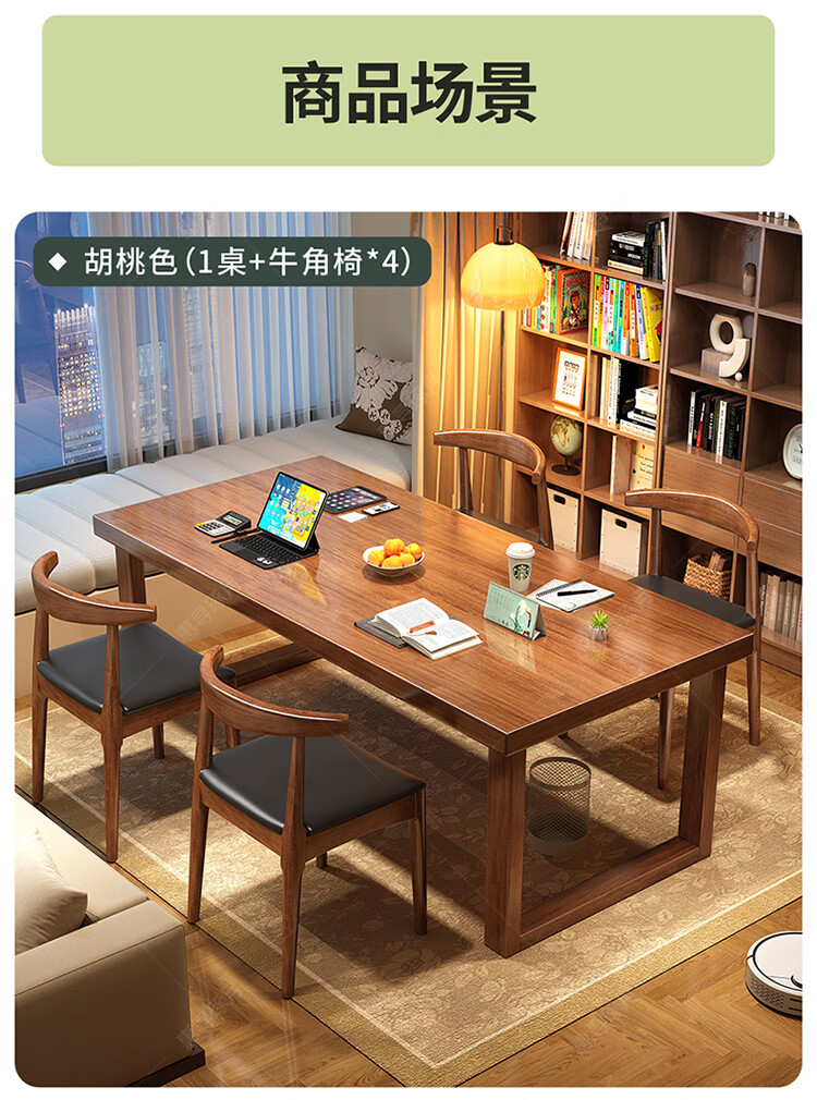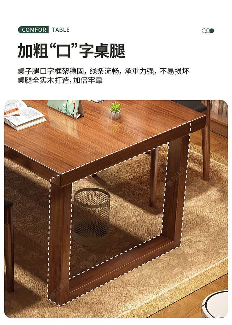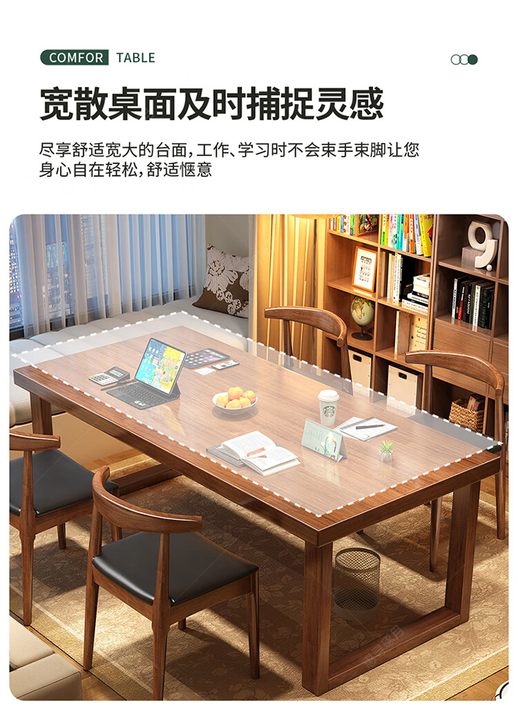 Huixun solid wood large desk open workbench home large board table living room study integrated long table parent-child study table walnut color #large board table 140cm*80cm*75cm desktop thickness 4cm