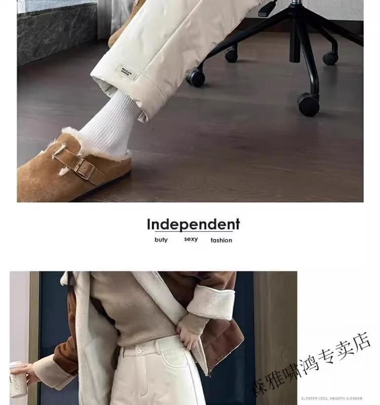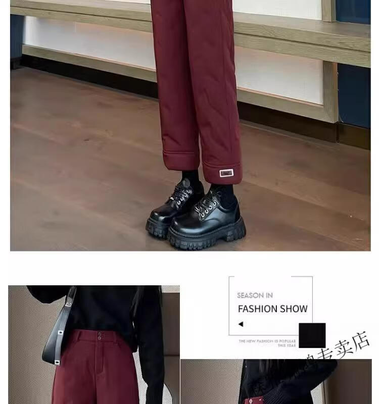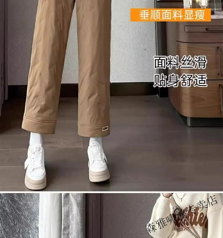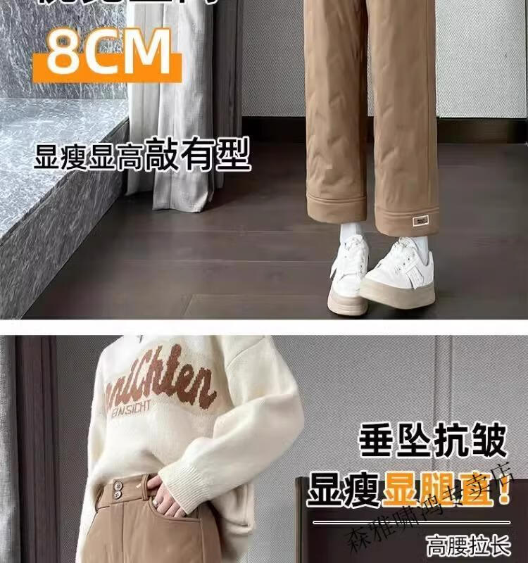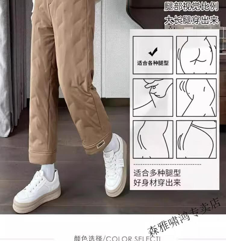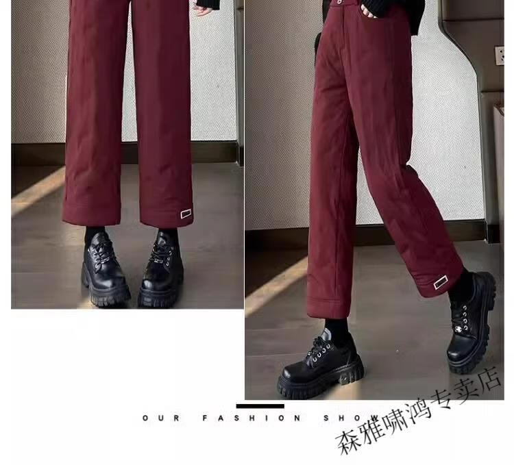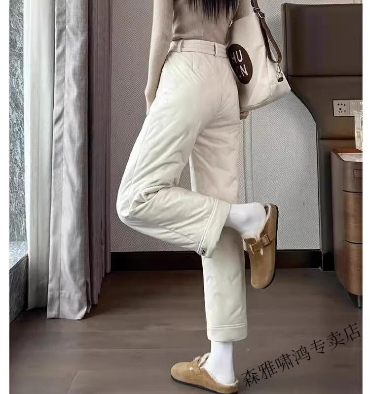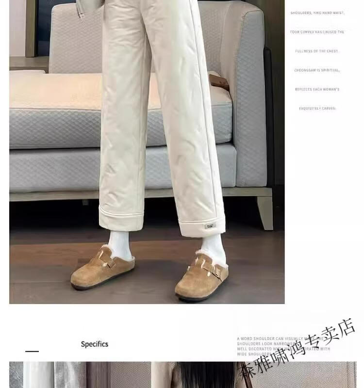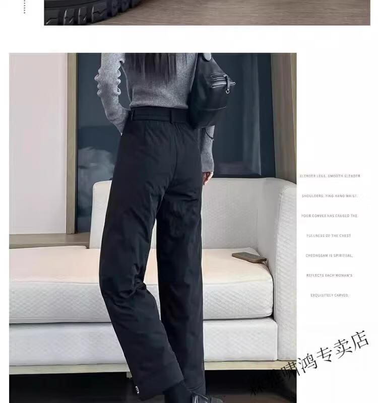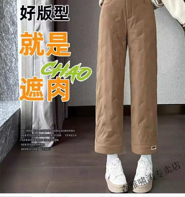 Hengyuanxiang 2025 New Cigarette Down Cotton Pants Women's Winter Outerwear Straight Fit Loose Warmth Slimming Northeastern Narrow Cotton Pants Black High Quality 2XL (Recommended 125-135 Jin Jin equals 0.5 kg)
