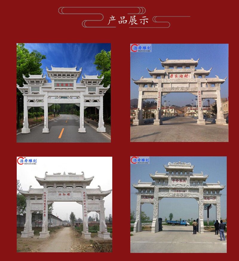 Home of Sculpture Gate Tower Archway Stone Sculpture Large Three Gate Archway Outdoor Ancient Architecture Garden Village Entrance Stone Archway Customized Design Drawing