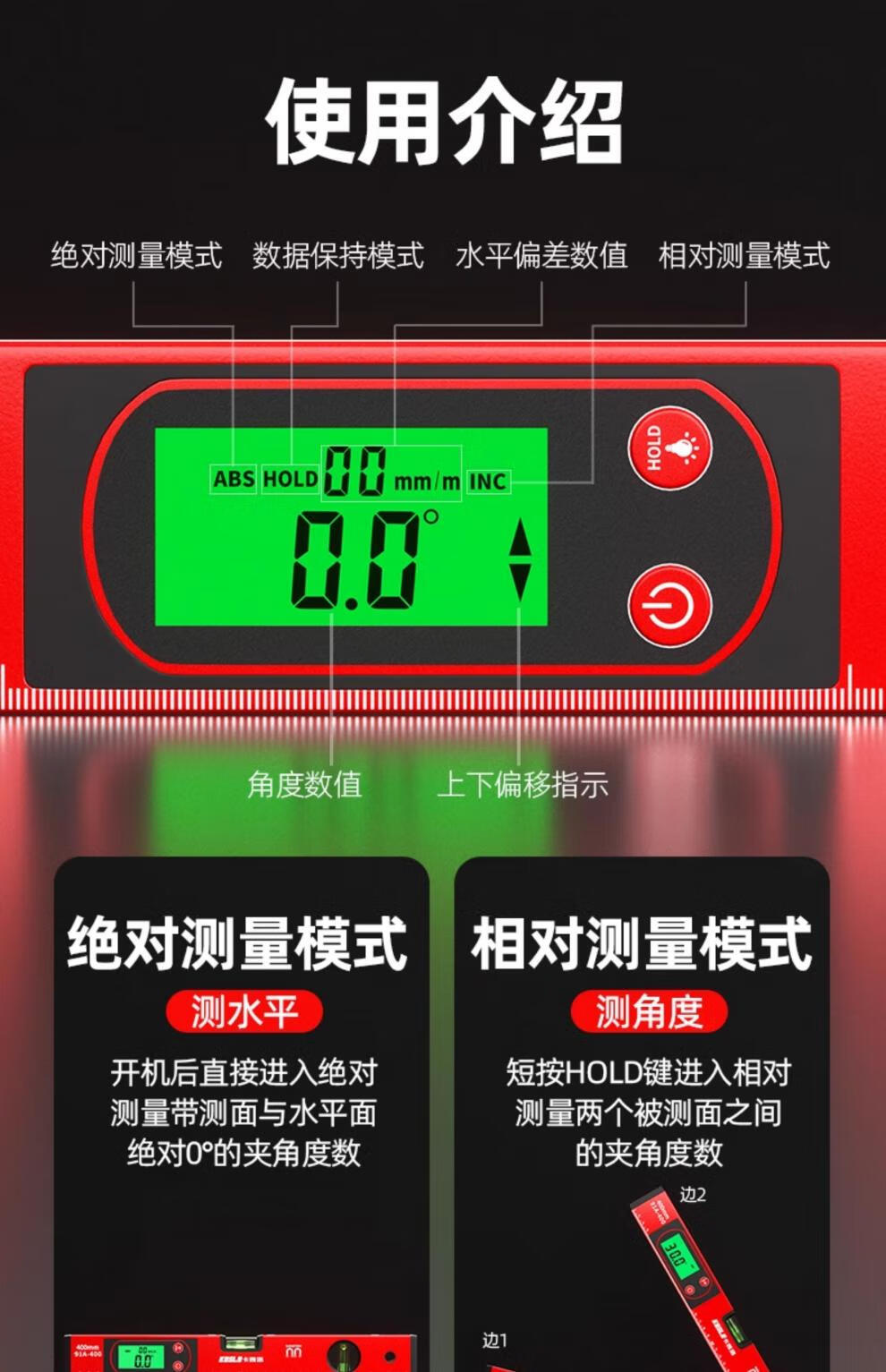 Fat Donglai's same style spirit level with digital display and high precision. Electronic digital high precision. 1 meter with magnetic laser multi-function slope. Economical and practical model. Digital display spirit level 1000MM. Strong magnet + no returns allowed.