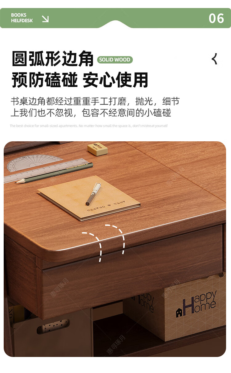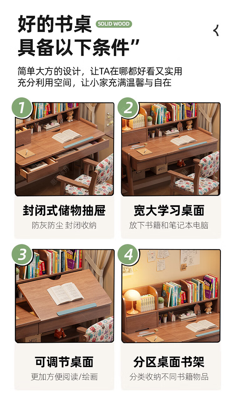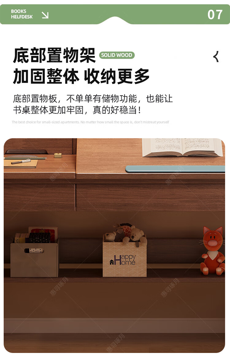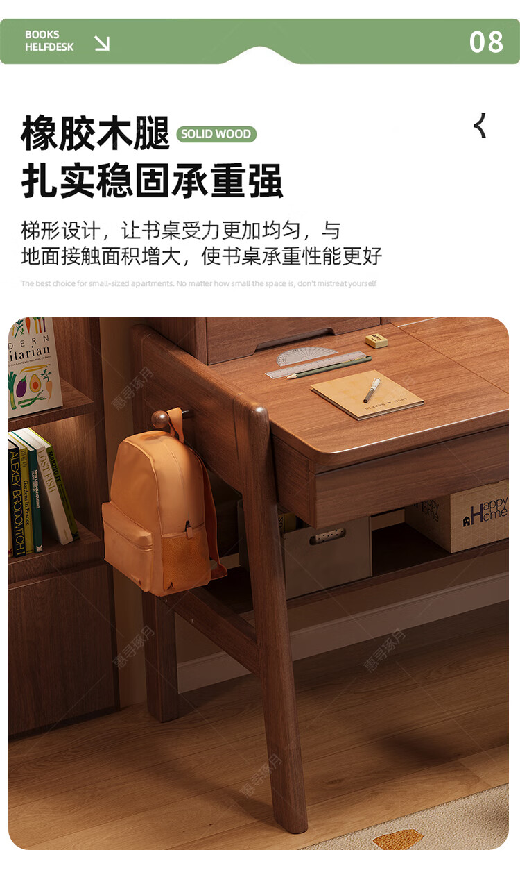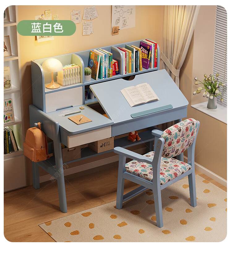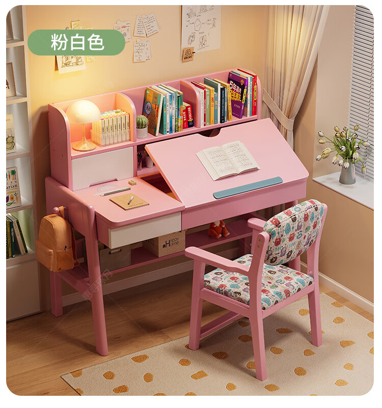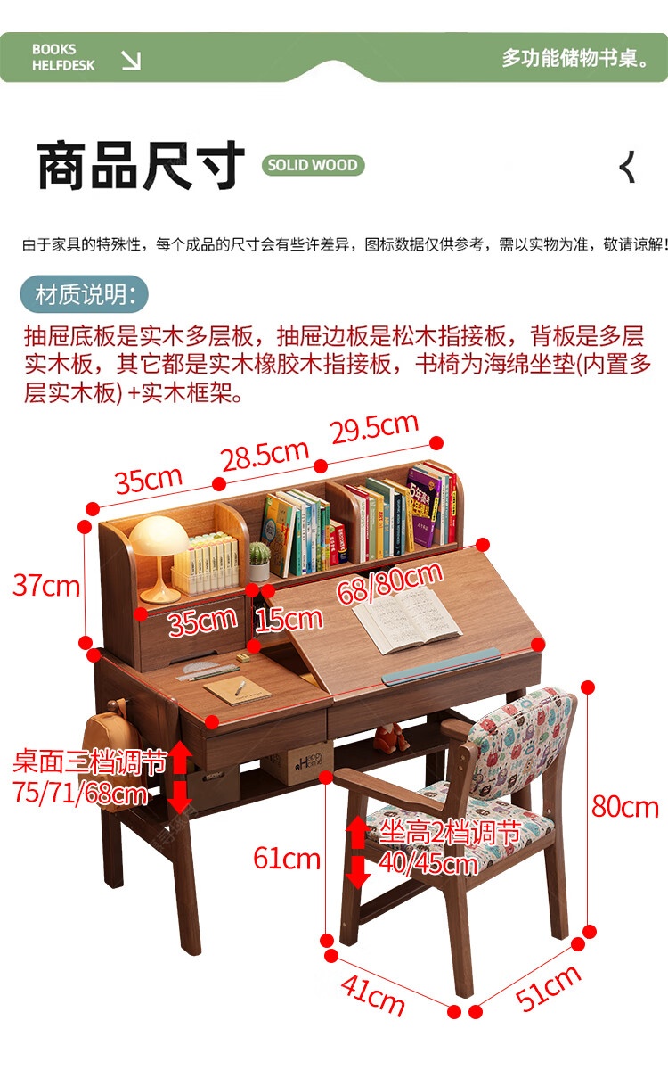 Huixun Children's Study Table Primary and Secondary School Solid Wood Desk with Bookshelf Children's Liftable Home Desk and Chair Set Walnut Color #Desk + Bookshelf 100cm*60cm*75cm Total Height 112cm