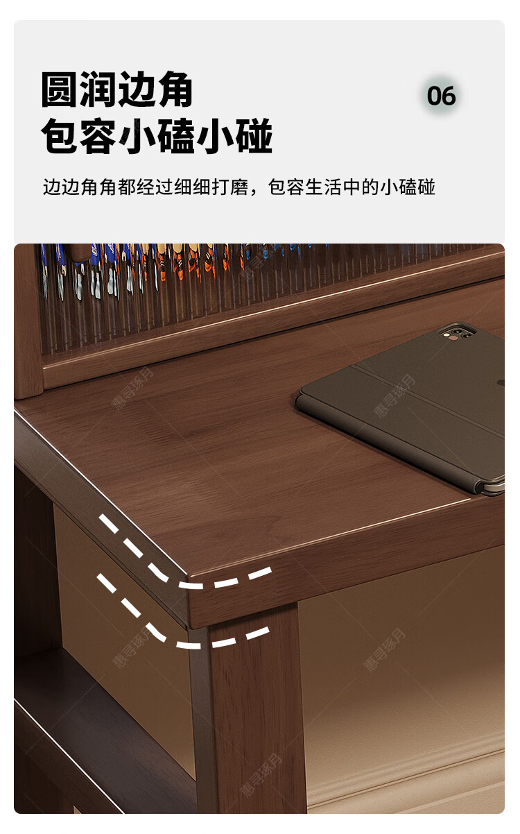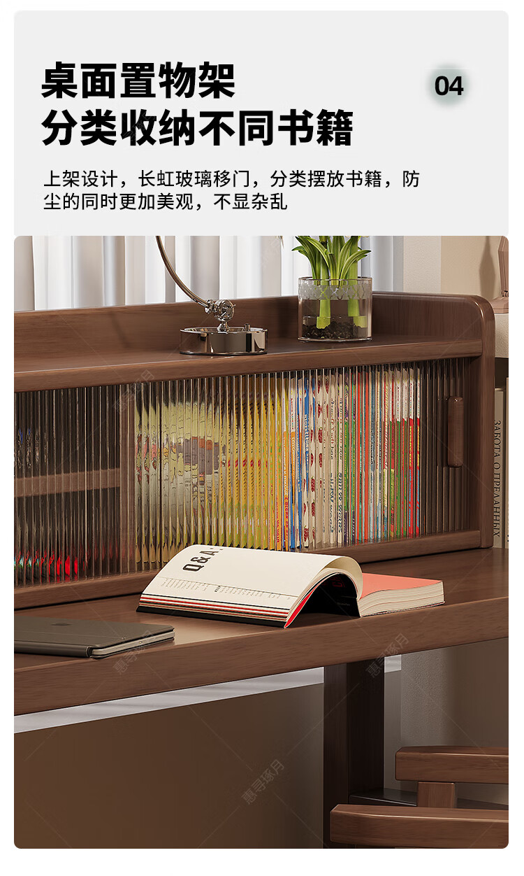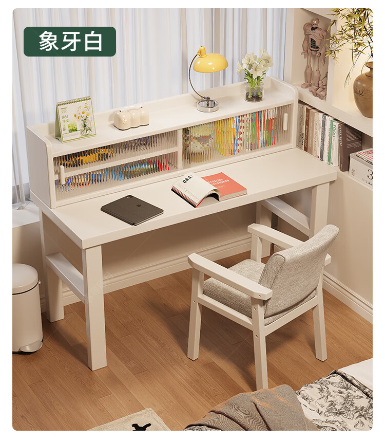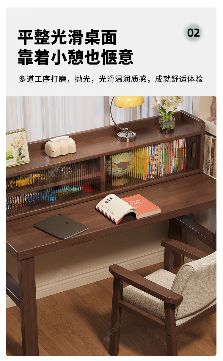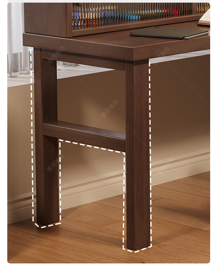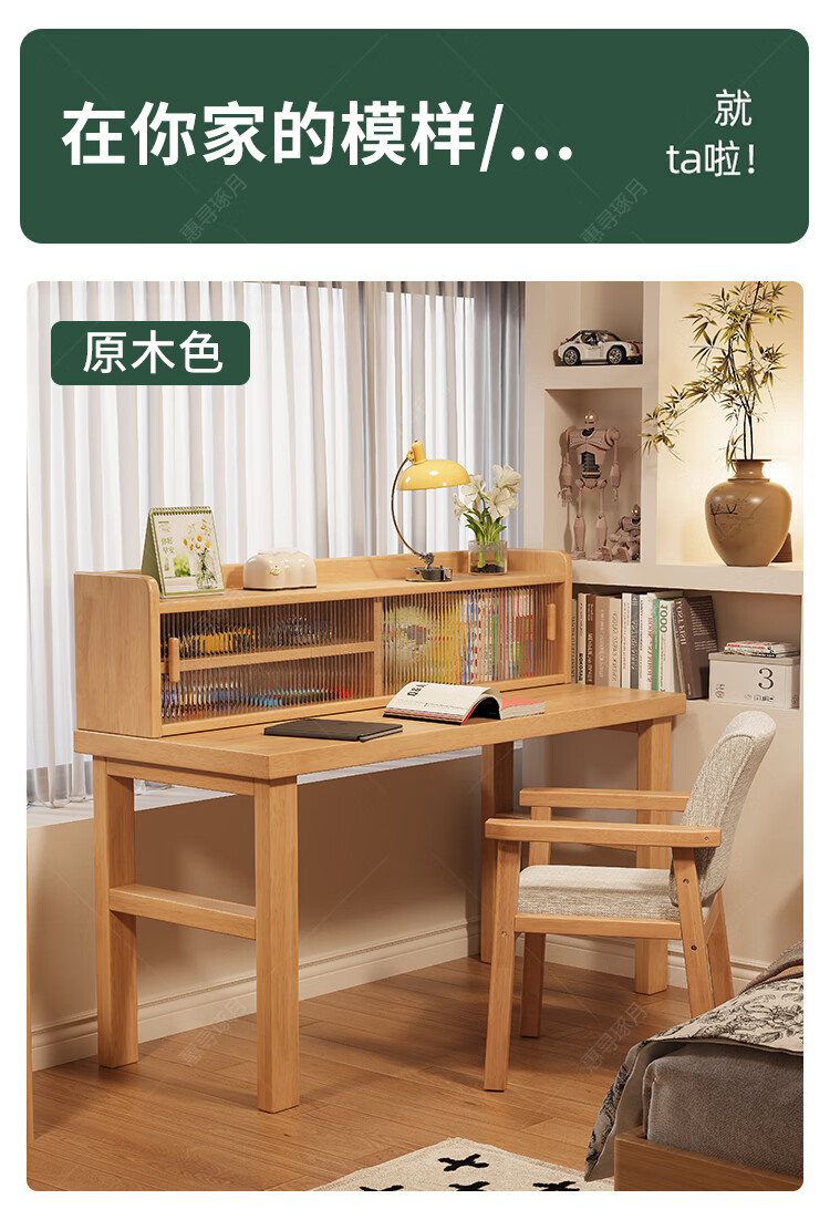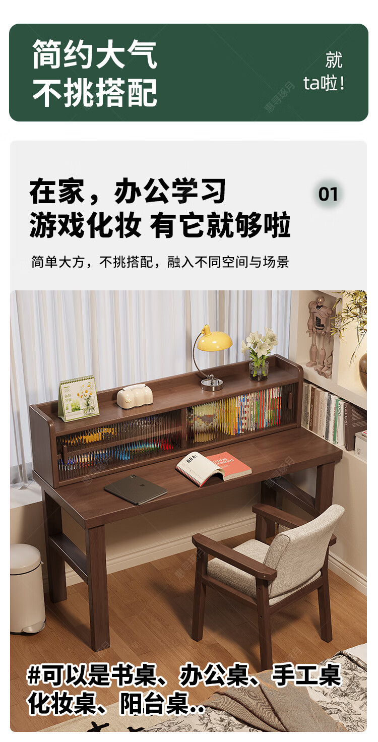 Huixun solid wood desk and bookshelf integrated home bedroom large board learning and reading table student writing desk simple computer desk black walnut color #desk + bookshelf 120cm*60cm*75cm total height 109cm