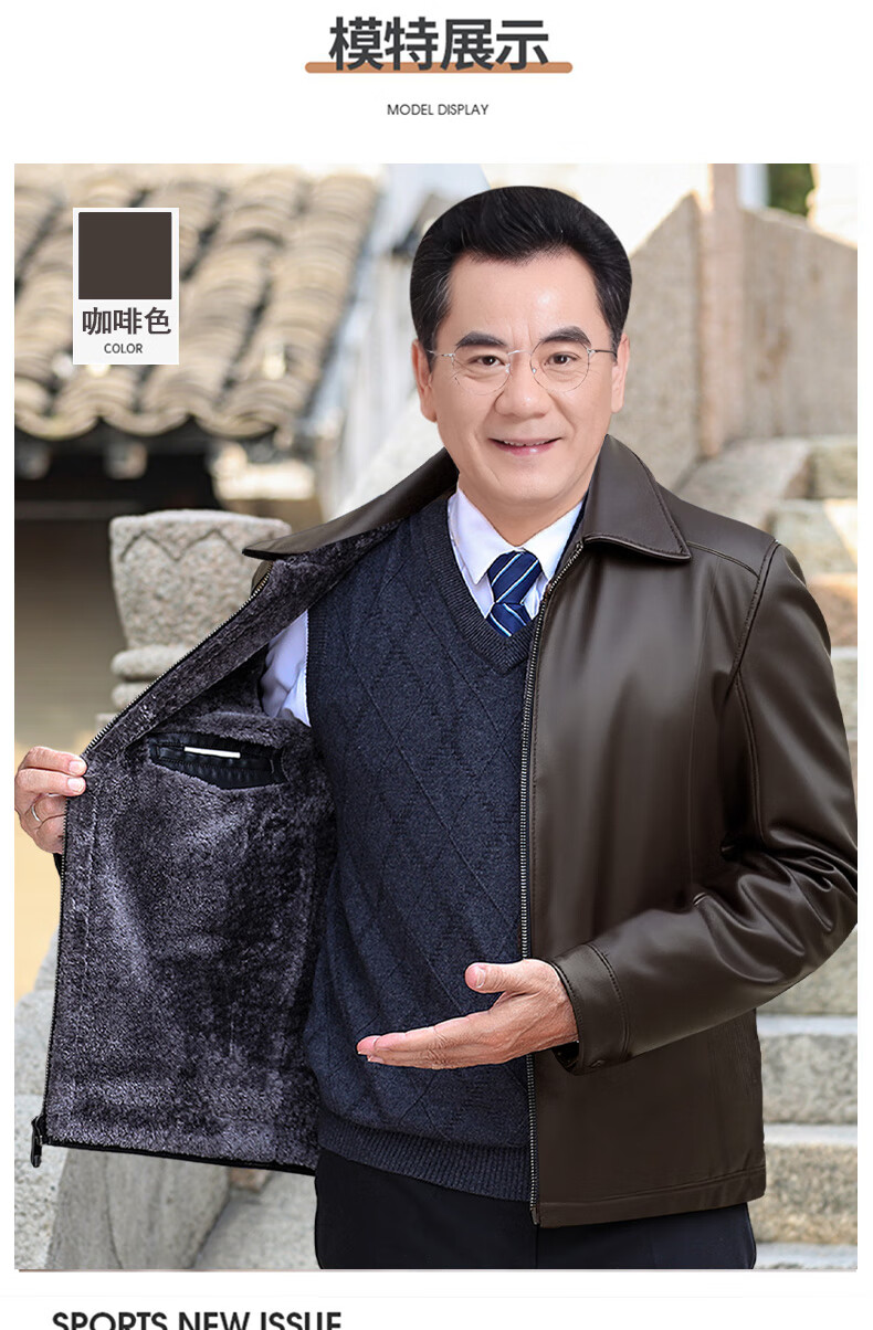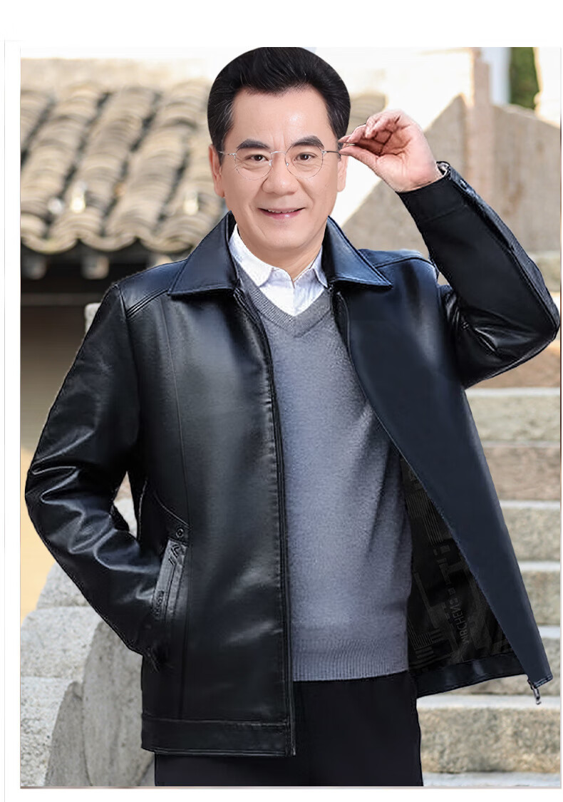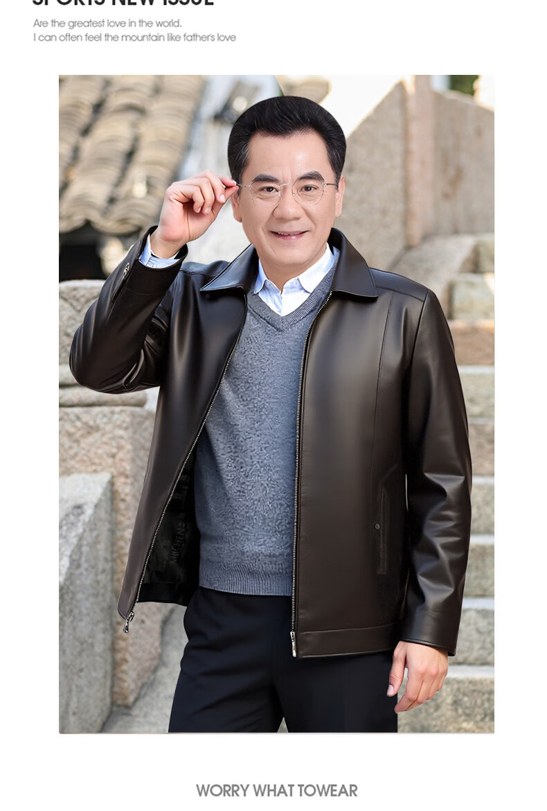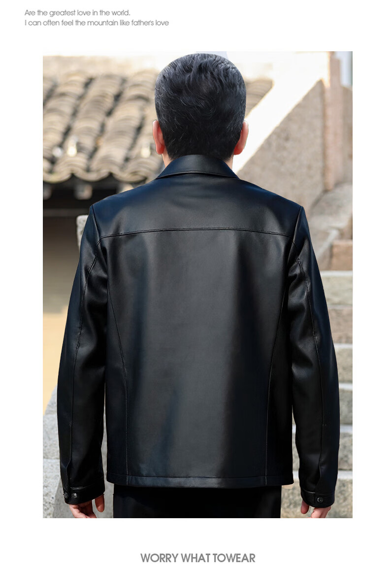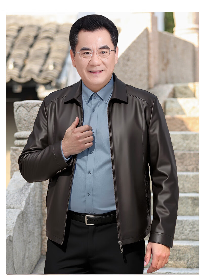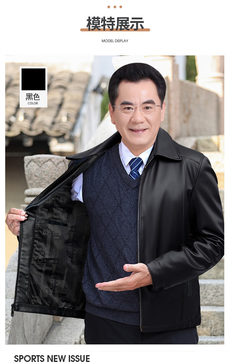 Hengyuanxiang middle-aged and elderly leather jacket men's lapel 50 to 60-year-old dad leather jacket spring and autumn style elderly grandfather leather cotton-padded jacket spring and autumn style black L 175/recommended 90-120 Jin Jin equals 0.5 kg