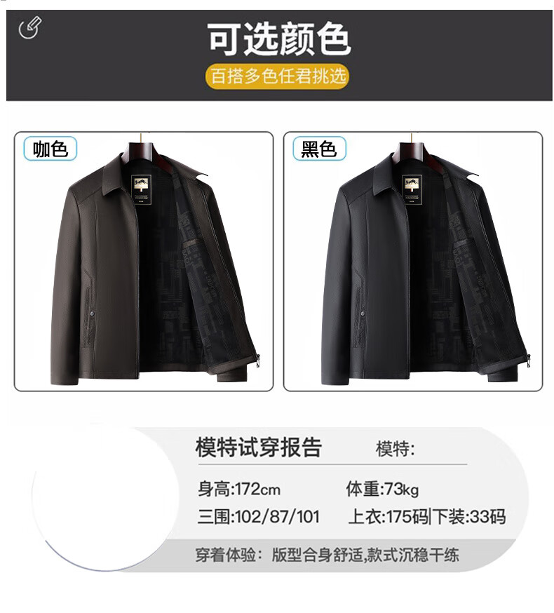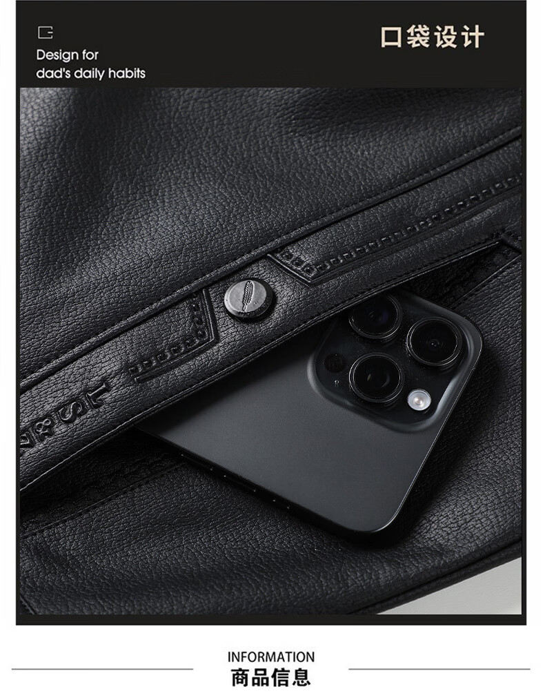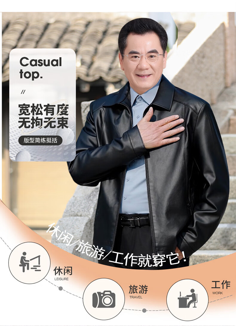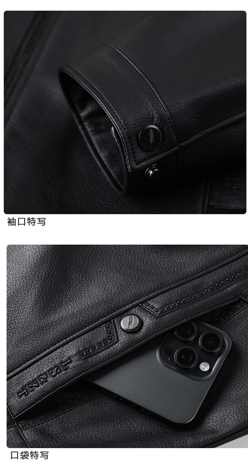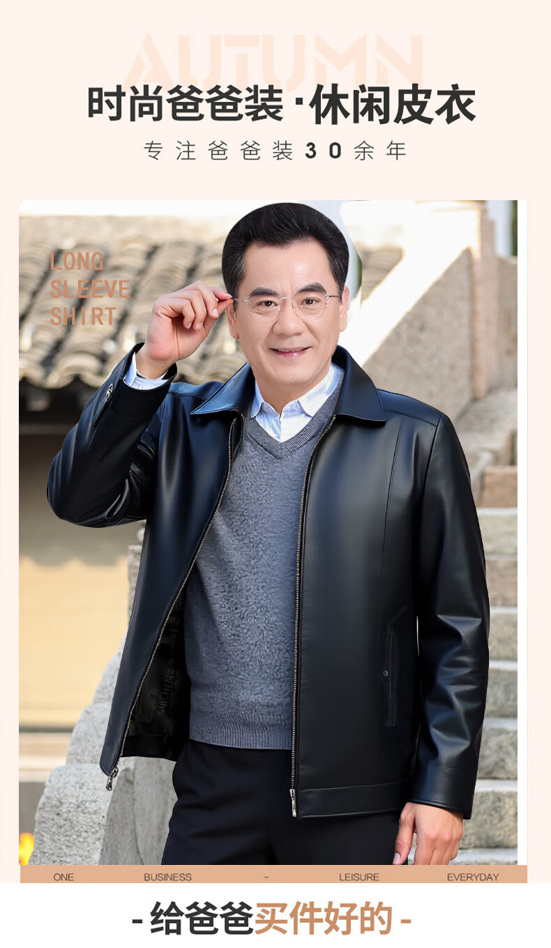Hengyuanxiang middle-aged and elderly leather jacket men's lapel 50 to 60-year-old dad leather jacket spring and autumn style elderly grandfather leather cotton-padded jacket spring and autumn style black L 175/recommended 90-120 Jin Jin equals 0.5 kg