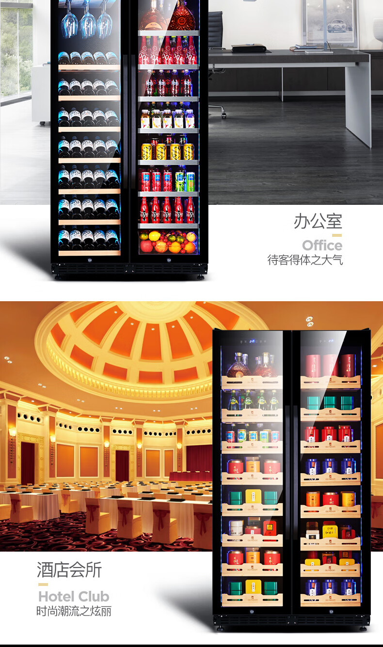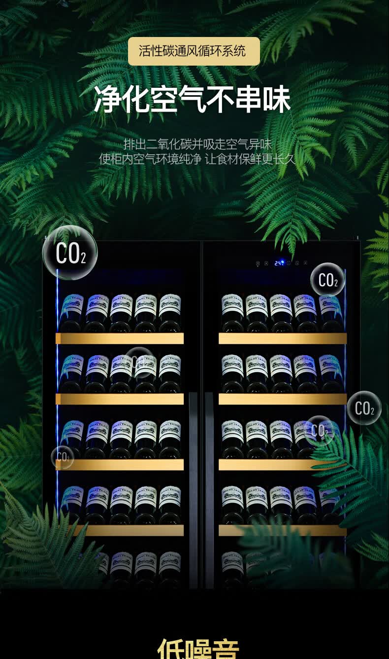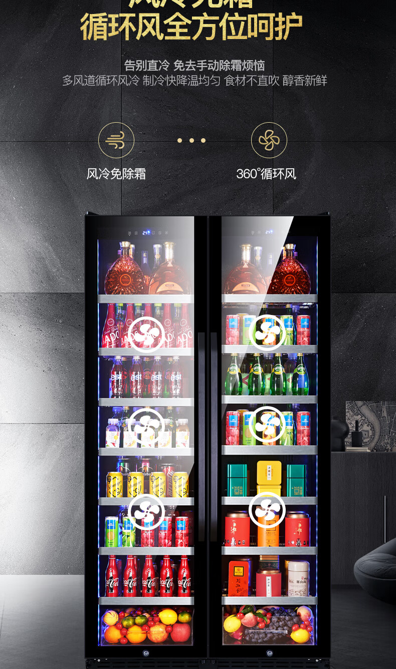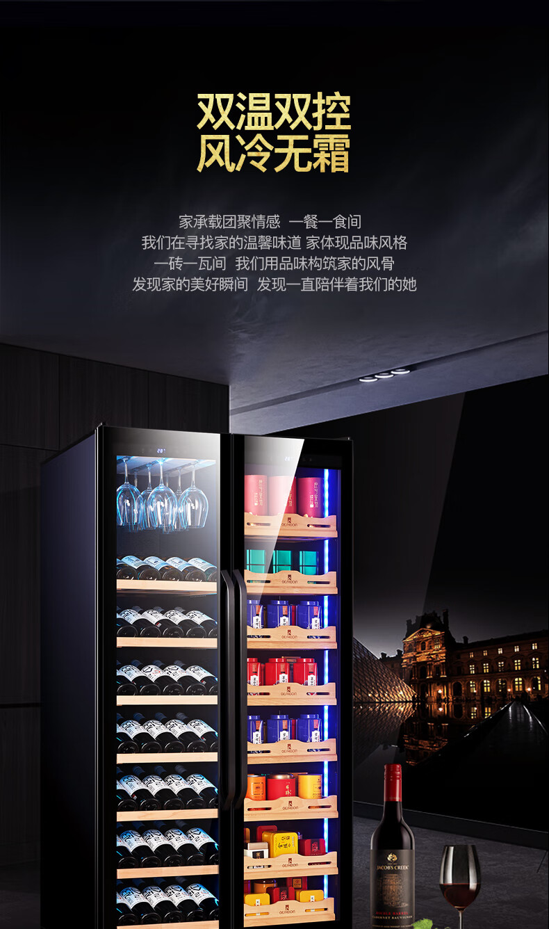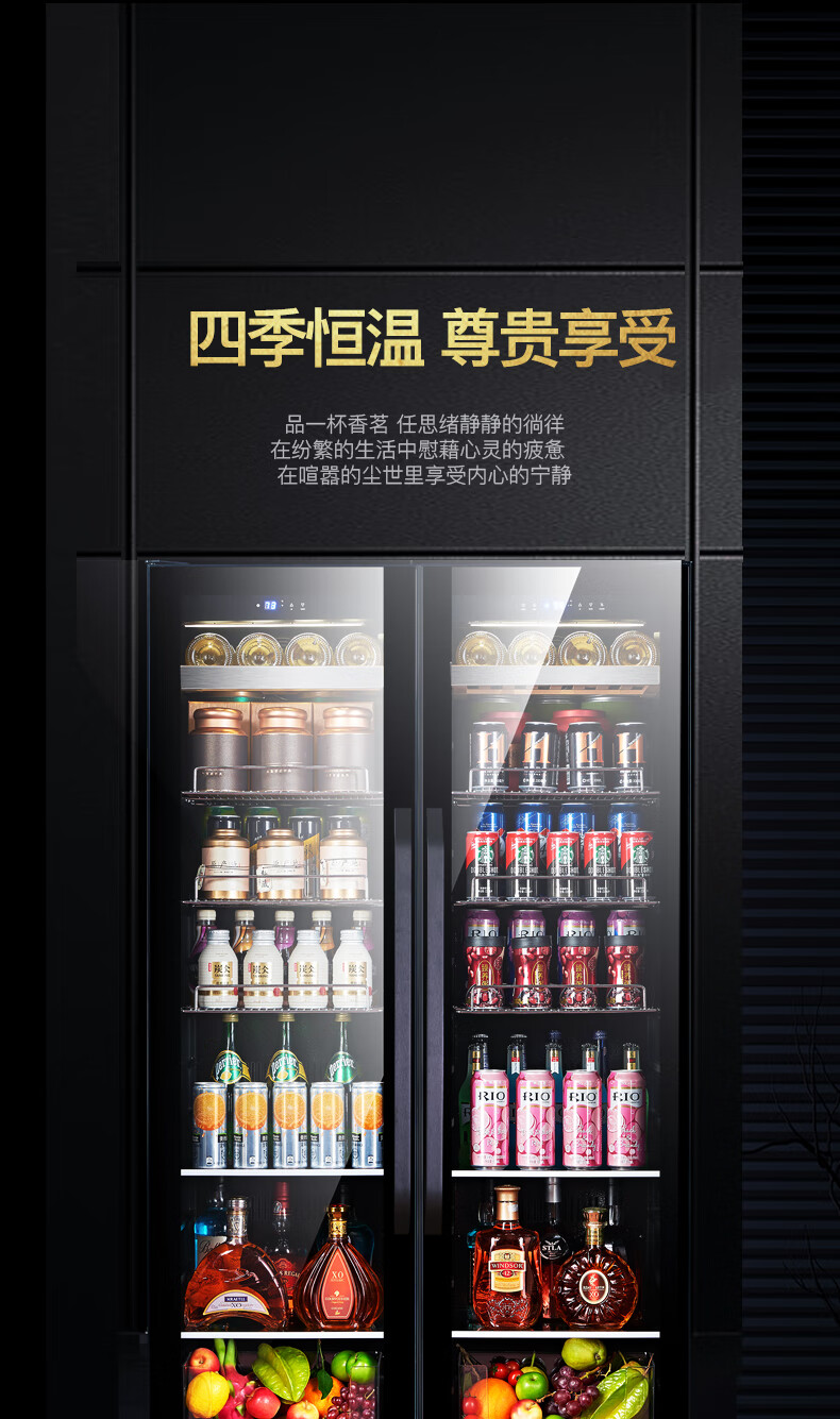 Costainton ultra-thin double-door ice bar red wine cabinet constant temperature wine cabinet air-cooled double-door embedded home living room commercial display refrigerator tea cabinet wine liquor fresh cabinet display cabinet 1.90 meters high - Type A