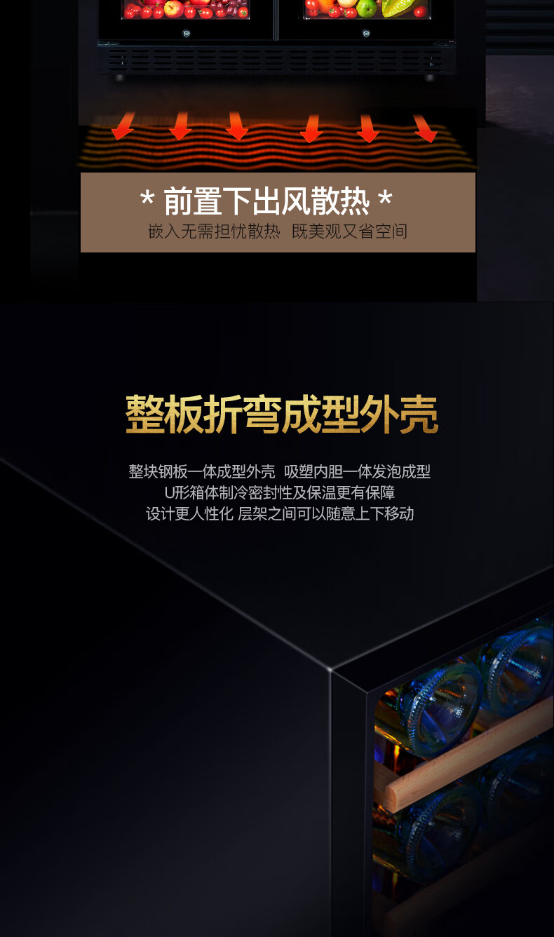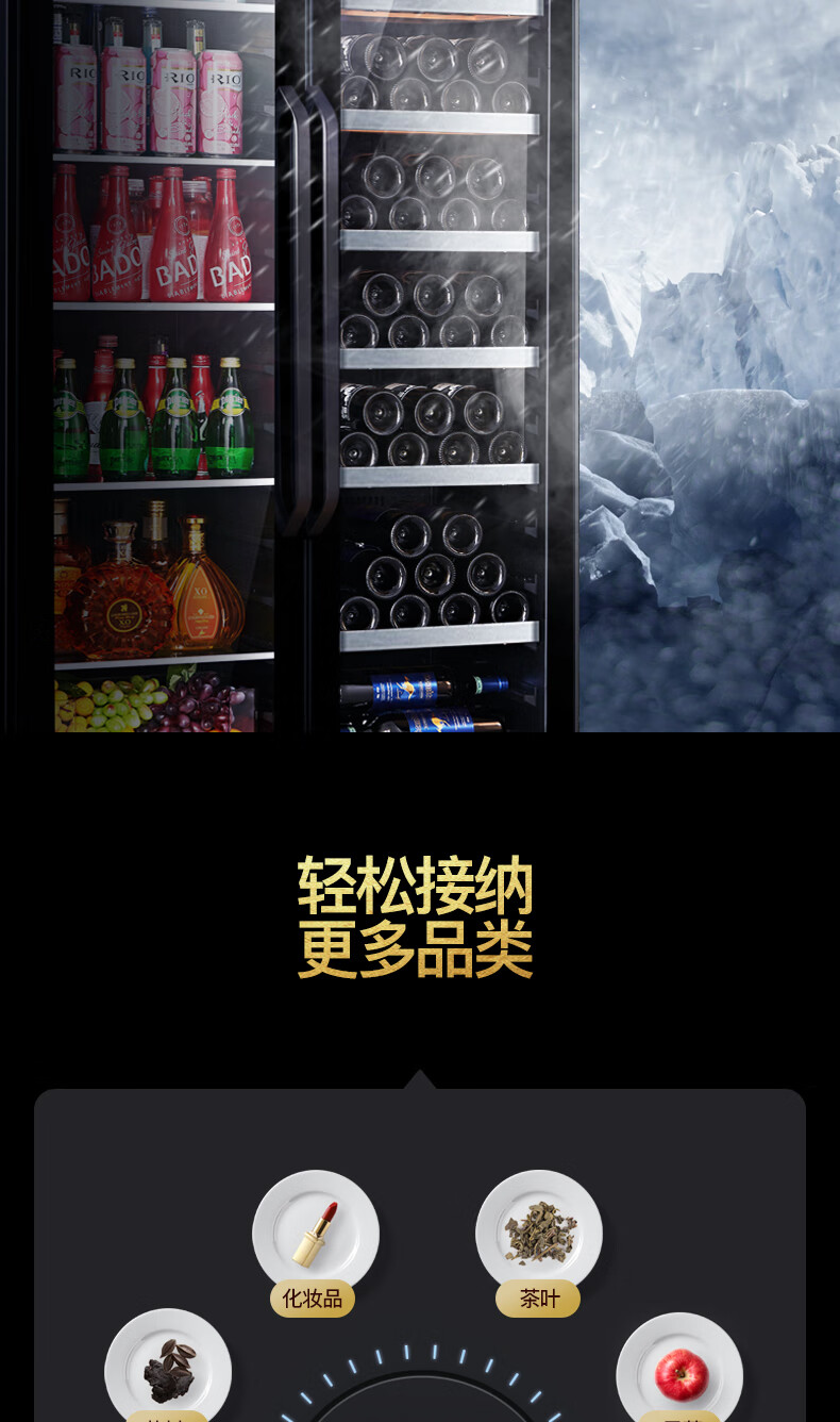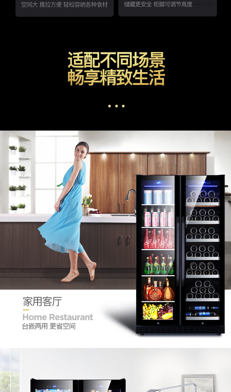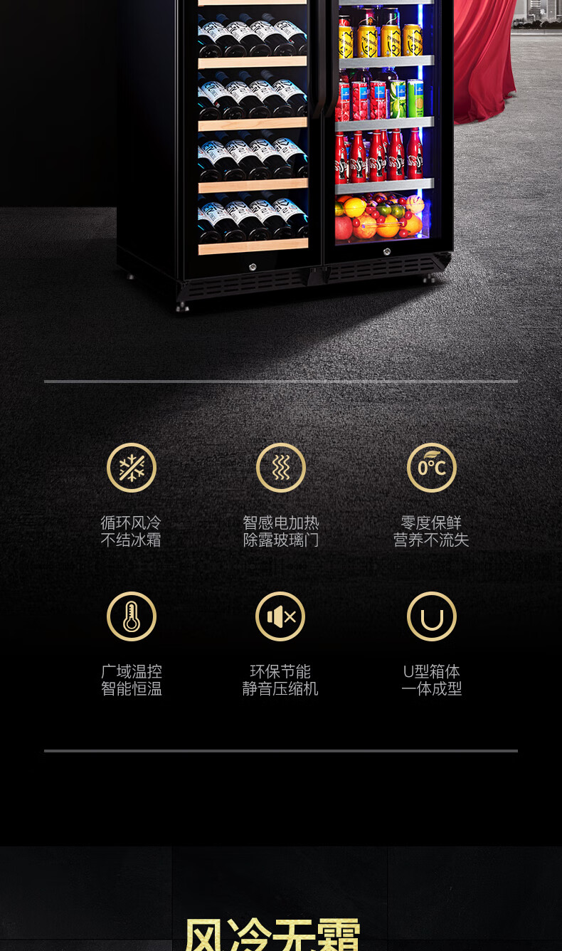 Costainton ultra-thin double-door ice bar red wine cabinet constant temperature wine cabinet air-cooled double-door embedded home living room commercial display refrigerator tea cabinet wine liquor fresh cabinet display cabinet 1.90 meters high - Type A