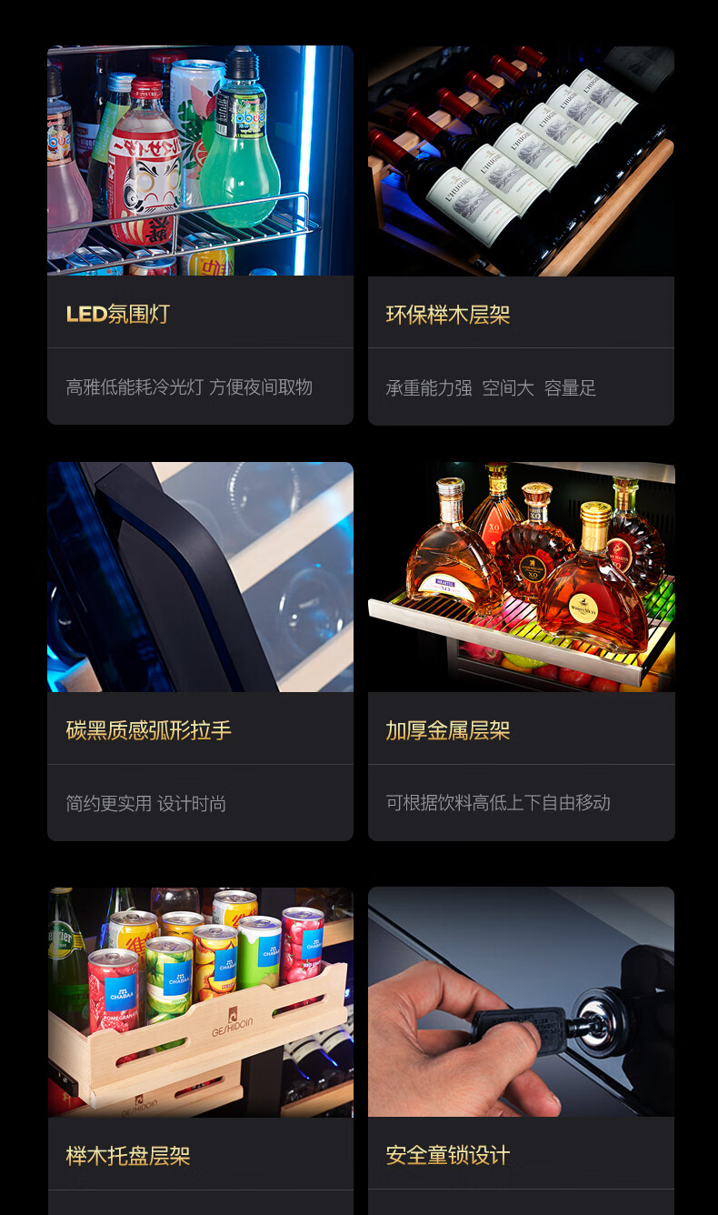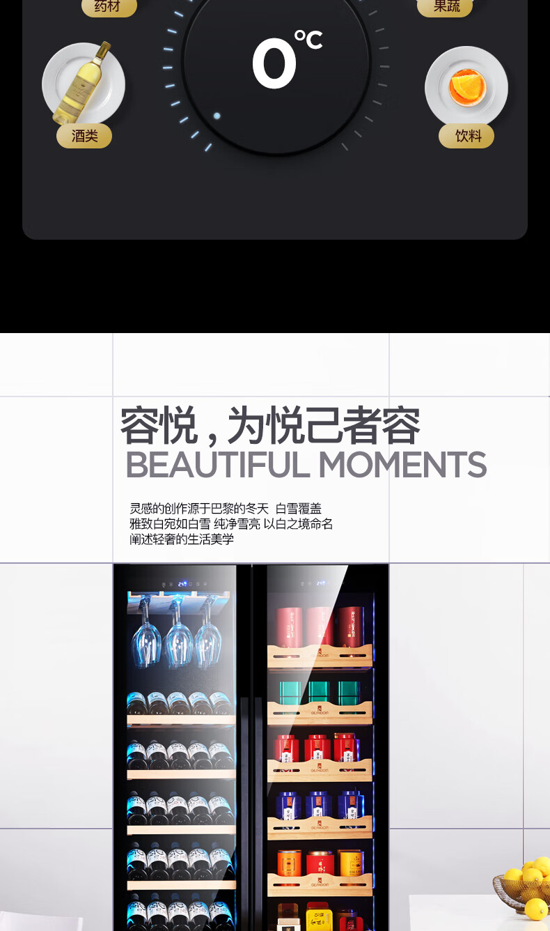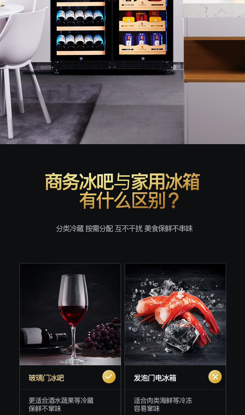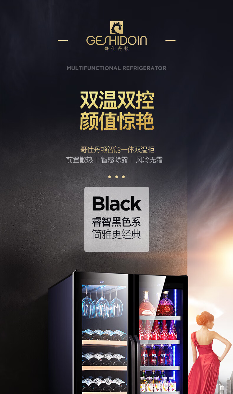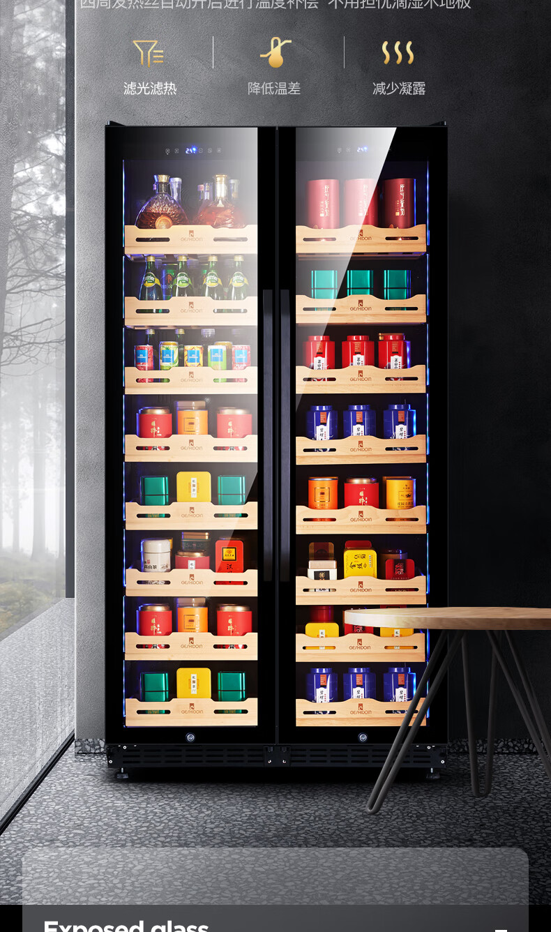 Costainton ultra-thin double-door ice bar red wine cabinet constant temperature wine cabinet air-cooled double-door embedded home living room commercial display refrigerator tea cabinet wine liquor fresh cabinet display cabinet 1.90 meters high - Type A
