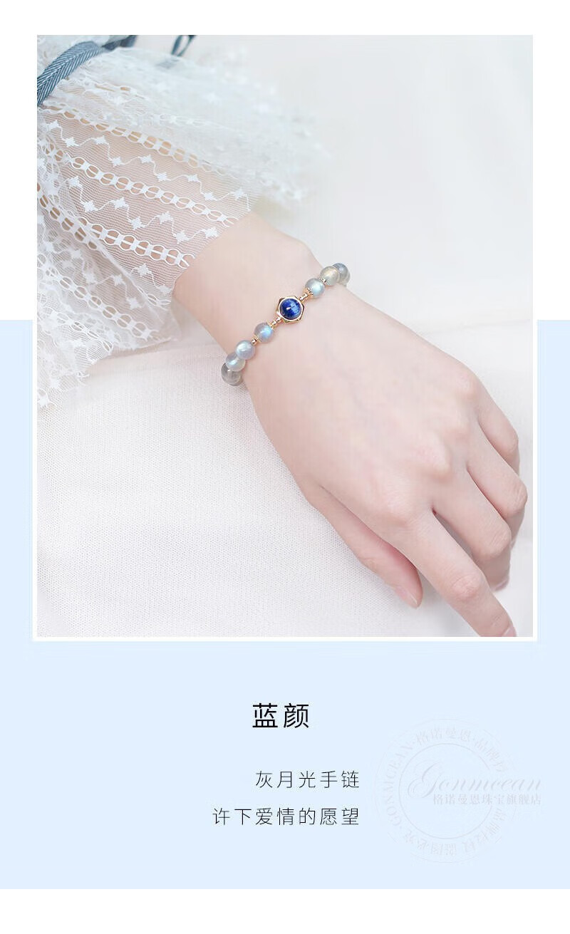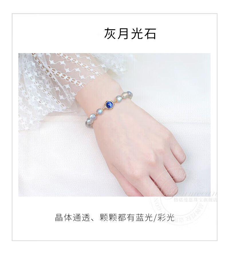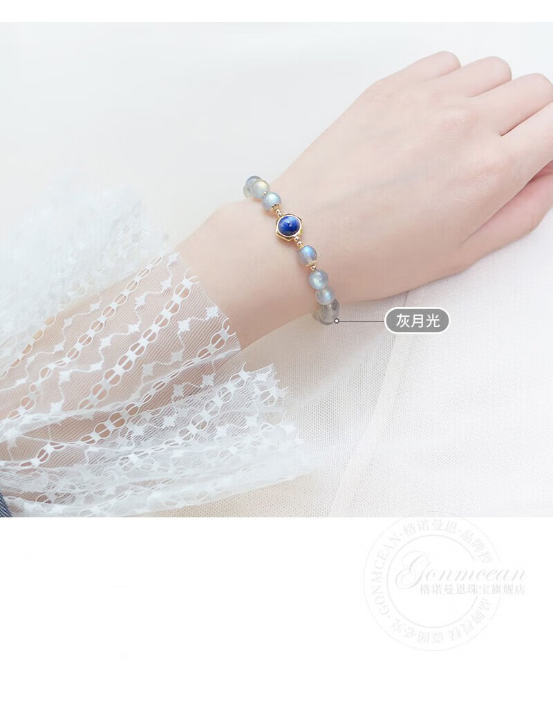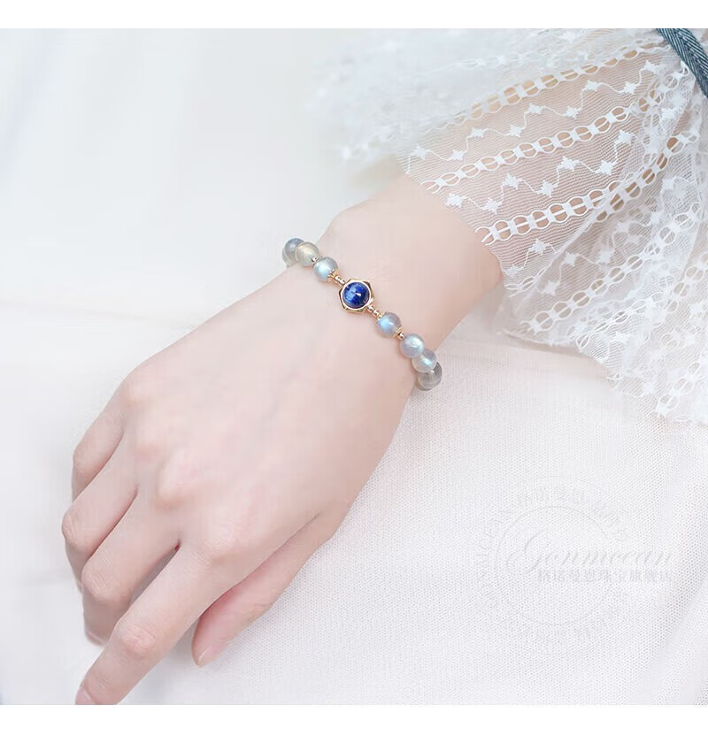 Qiaoyu Natural Sri Lankan Moonstone Kyanite Bracelet Women's Crystal Bracelet Best Friend Birthday Gift Beads 8mm