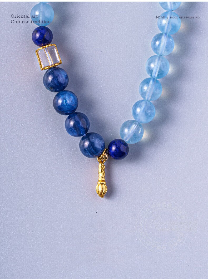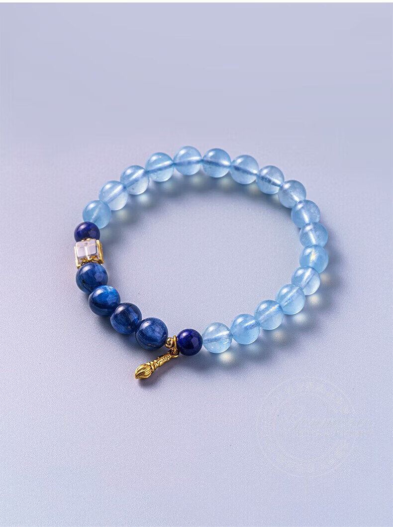 Ningfeng Genomanen Brazilian Aquamarine Bracelet Guardian Goddess Blue Bracelet Chinese Valentine's Day Gift 2025 New Bead Diameter 8mm