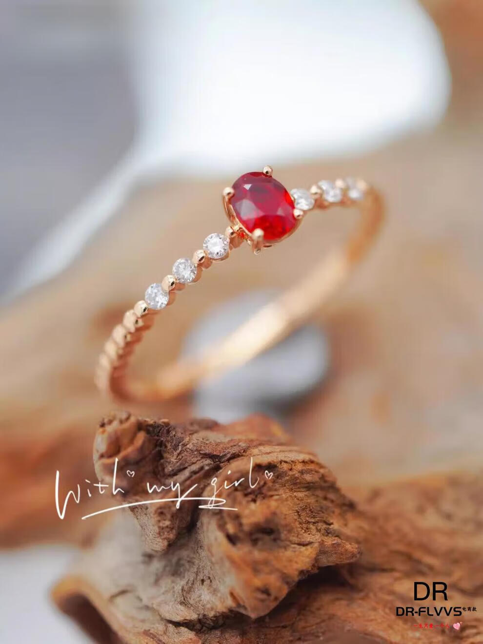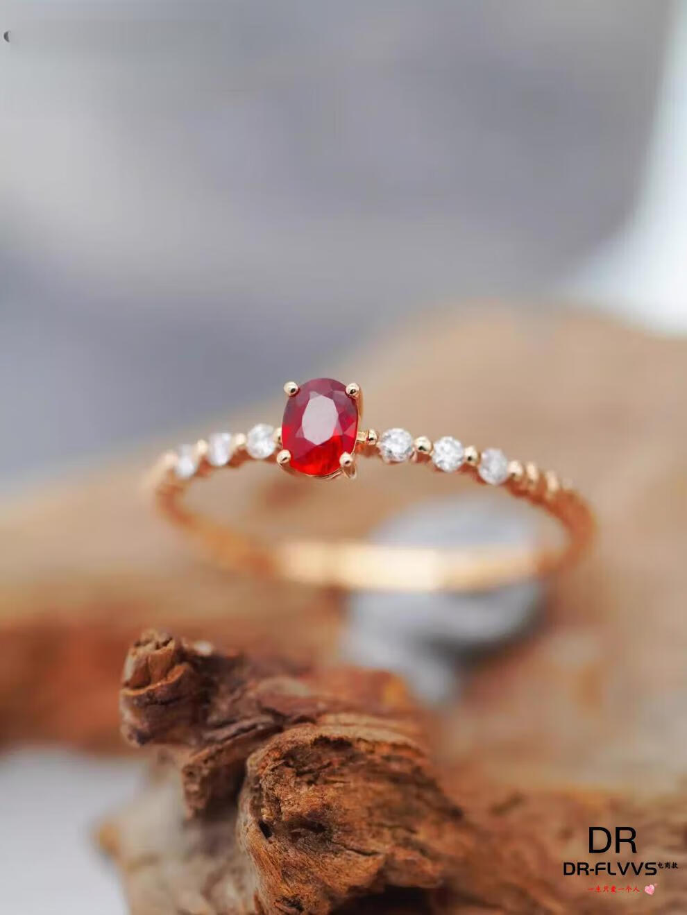 Qingyu quality ruby ring for women, Pa Shiyun French pigeon blood ring s925 silver inlaid with diamonds, light luxury commuting, ruby size 6