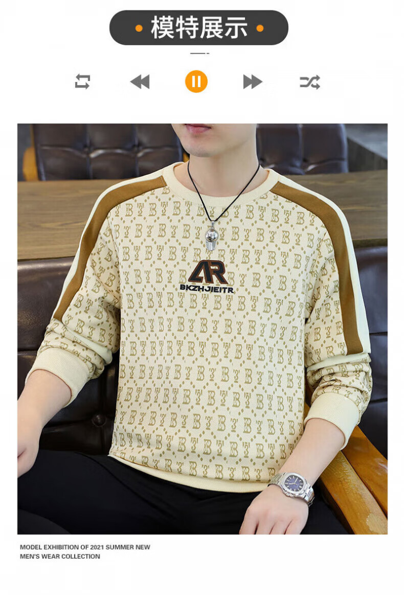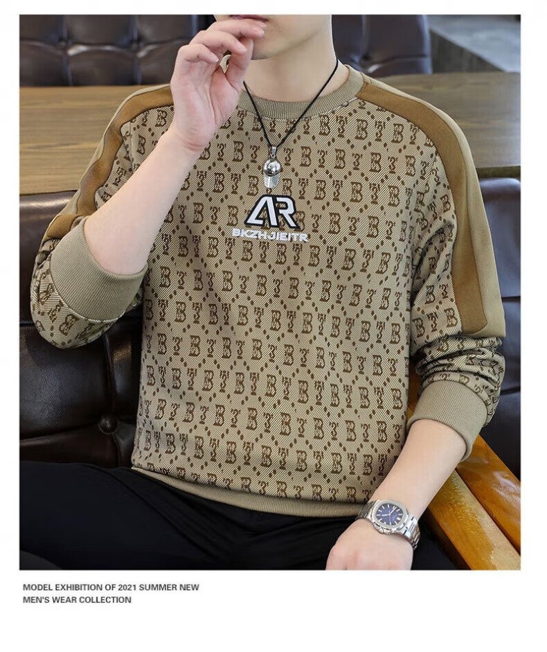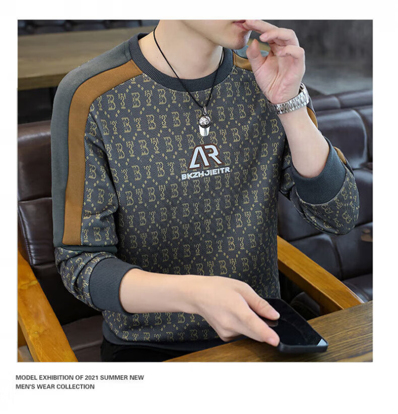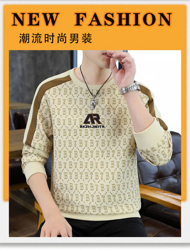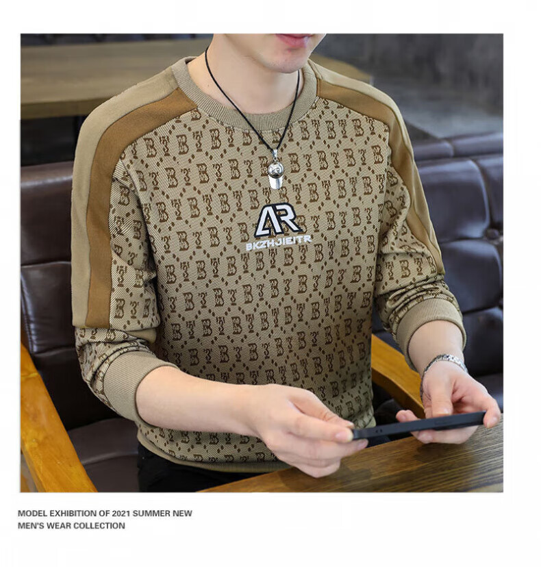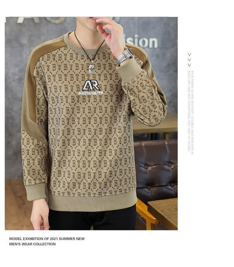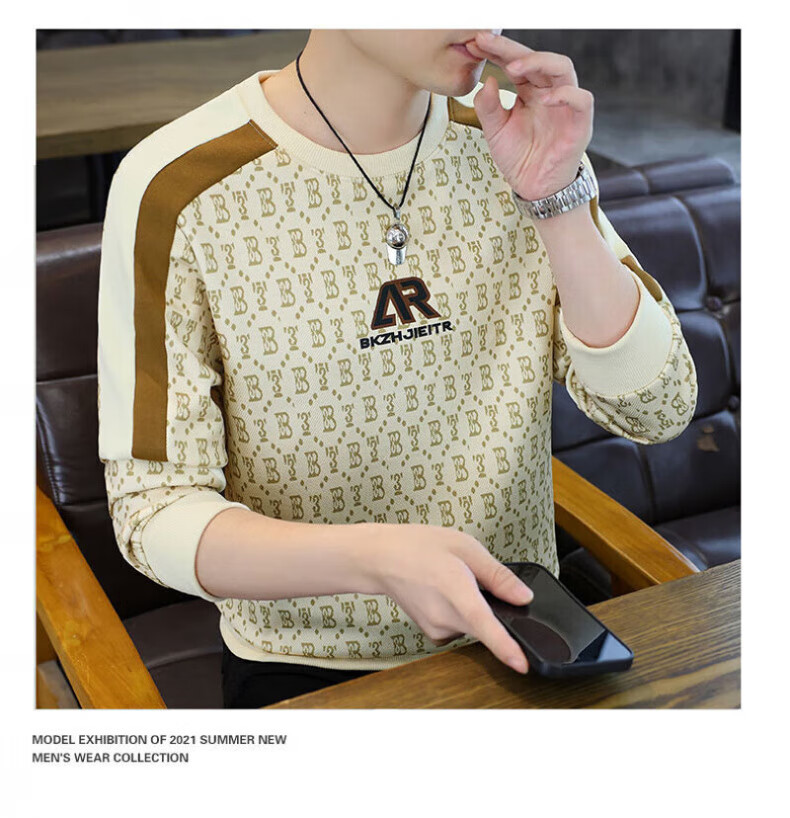 NASAOVER high-end brand men's sweatshirt 2026 autumn and winter new long-sleeved T-shirt fashion trendy brand printed inner bottoming shirt K6036 Khaki counter straight hair M 90-110Jin Jin equals 0.5 kg
