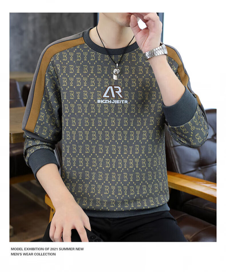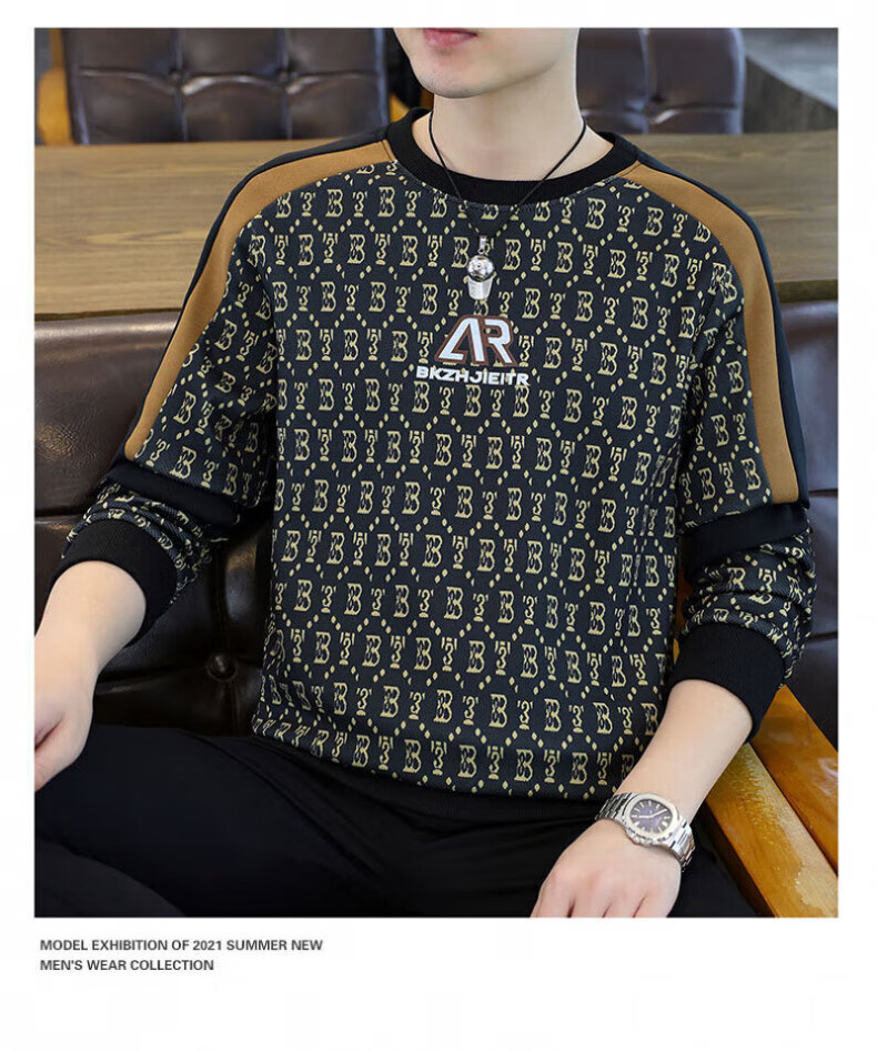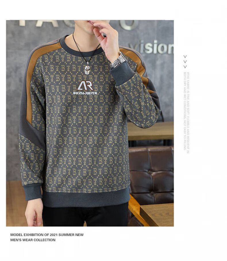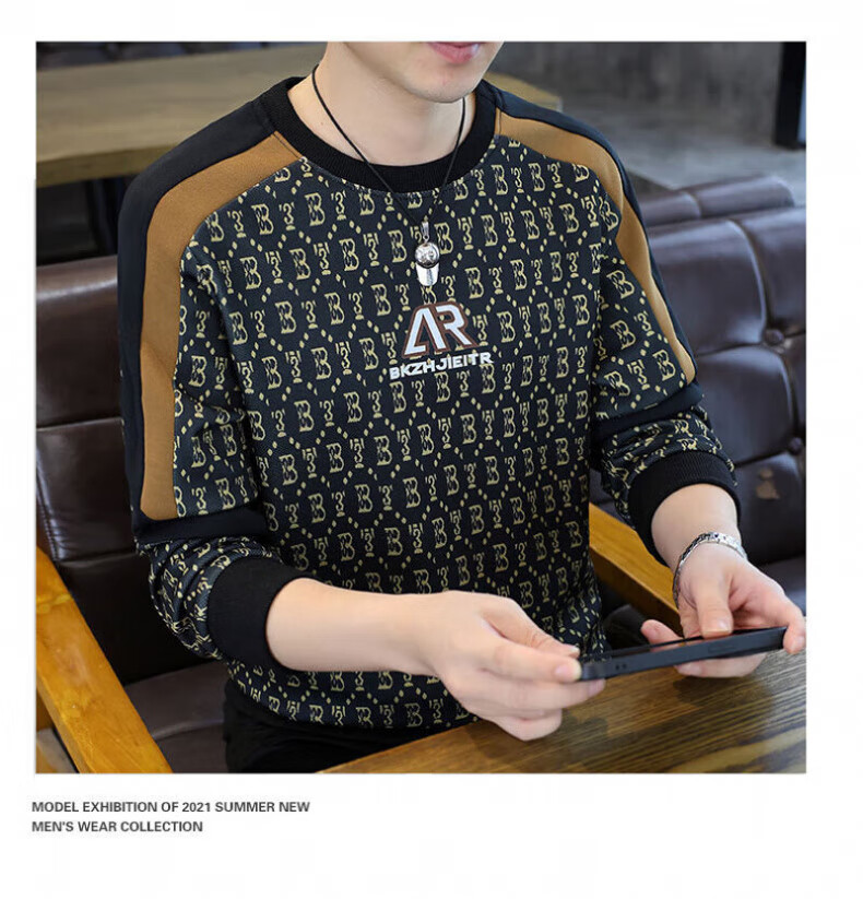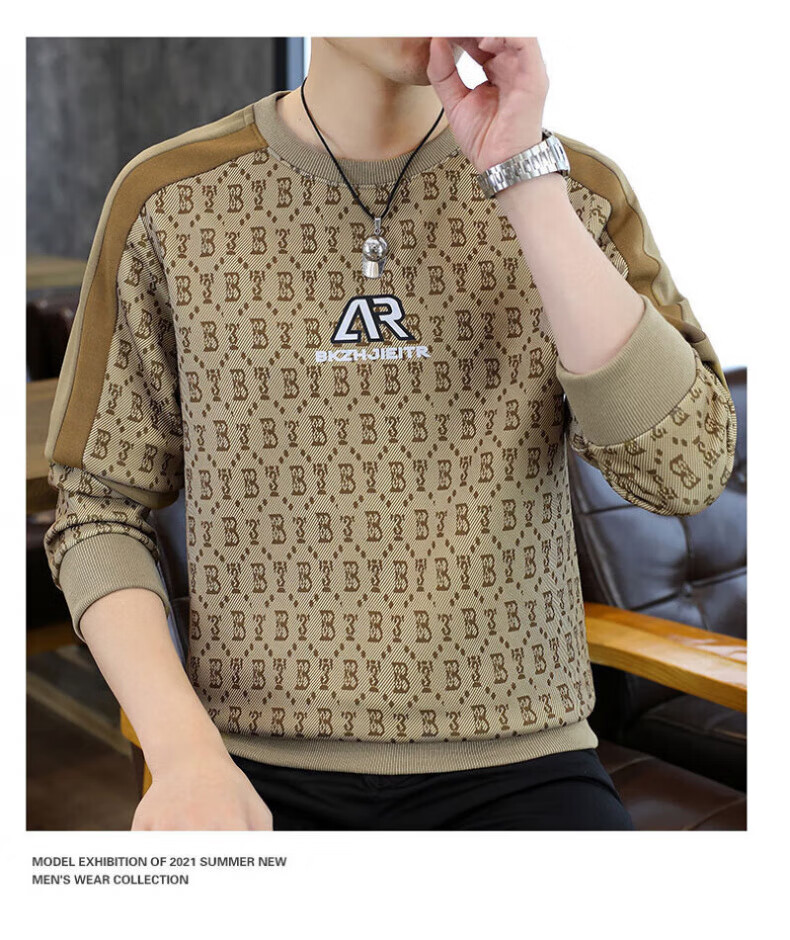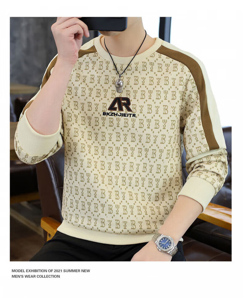NASAOVER high-end brand men's sweatshirt 2026 autumn and winter new long-sleeved T-shirt fashion trendy brand printed inner bottoming shirt K6036 Khaki counter straight hair M 90-110Jin Jin equals 0.5 kg