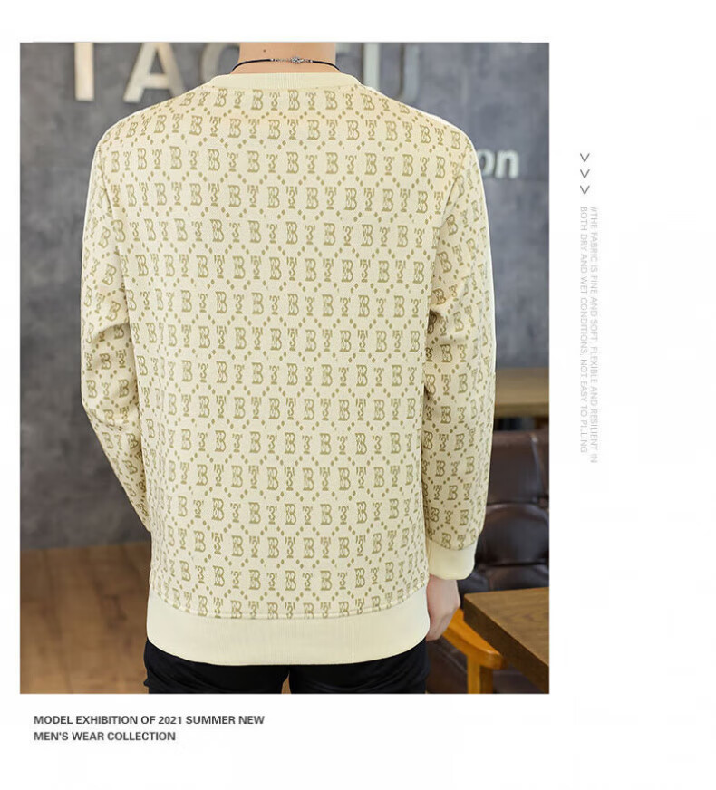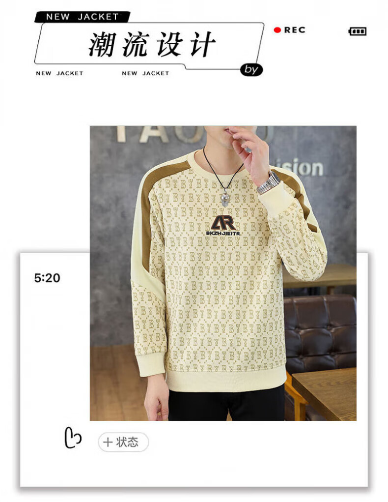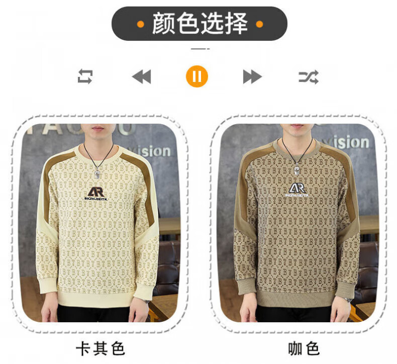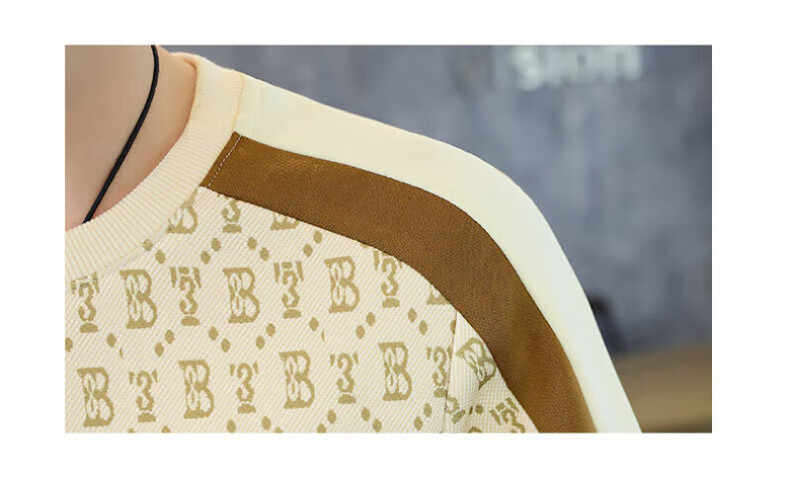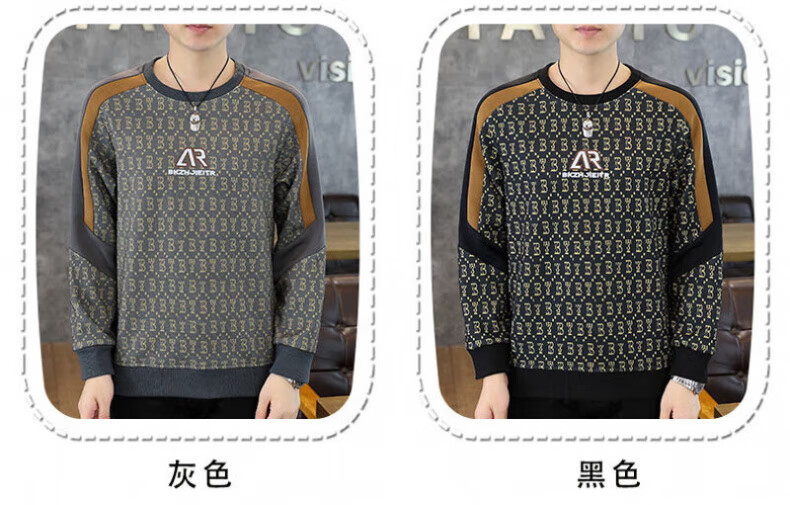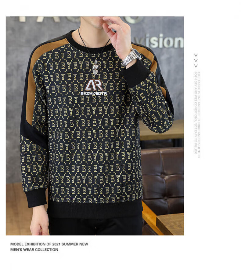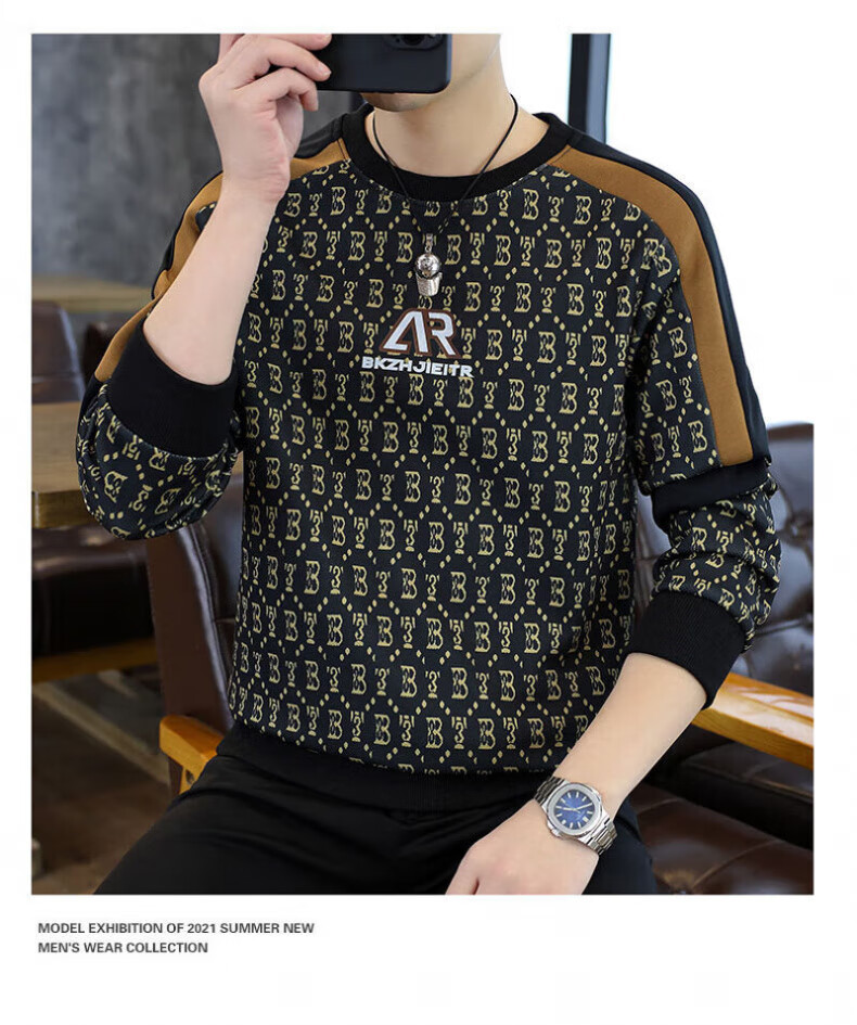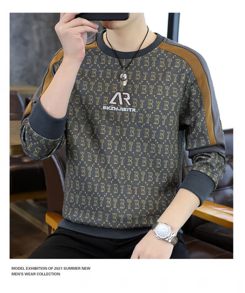 NASAOVER high-end brand men's sweatshirt 2026 autumn and winter new long-sleeved T-shirt fashion trendy brand printed inner bottoming shirt K6036 Khaki counter straight hair M 90-110Jin Jin equals 0.5 kg
