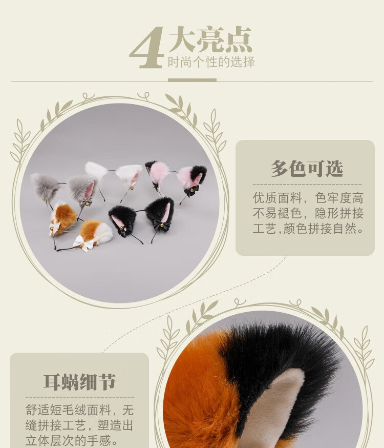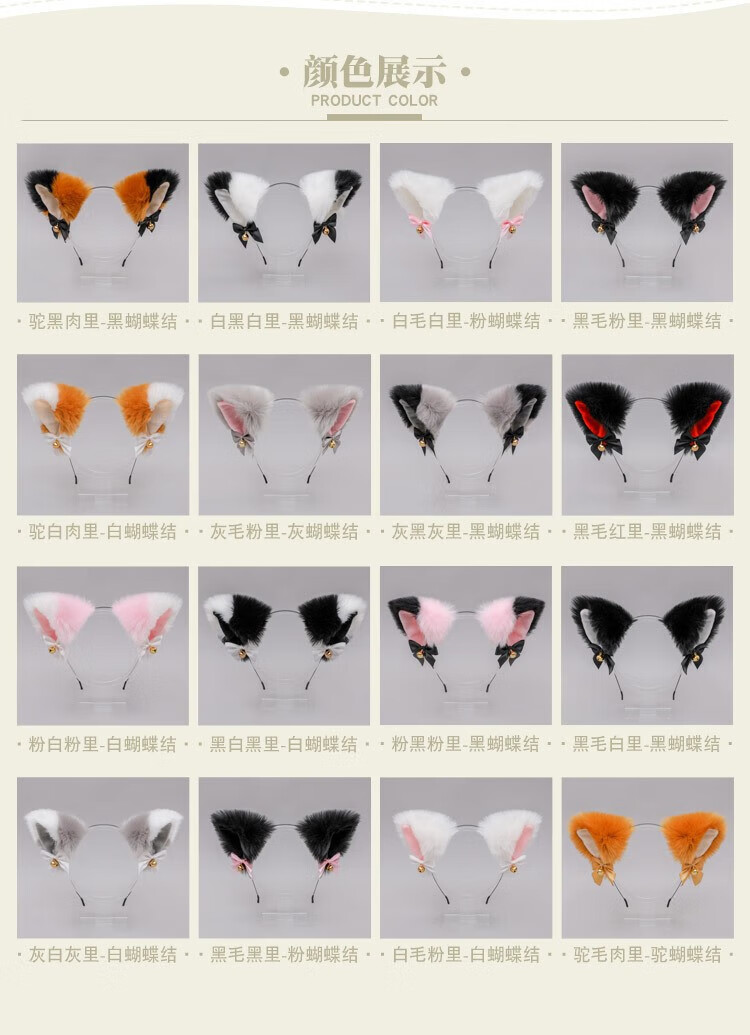 First encounter, cat ear headband, animal ears, all black kitten, children's hairpin with bell, maid fun cos props, black cat ear headband + black bow neck bell