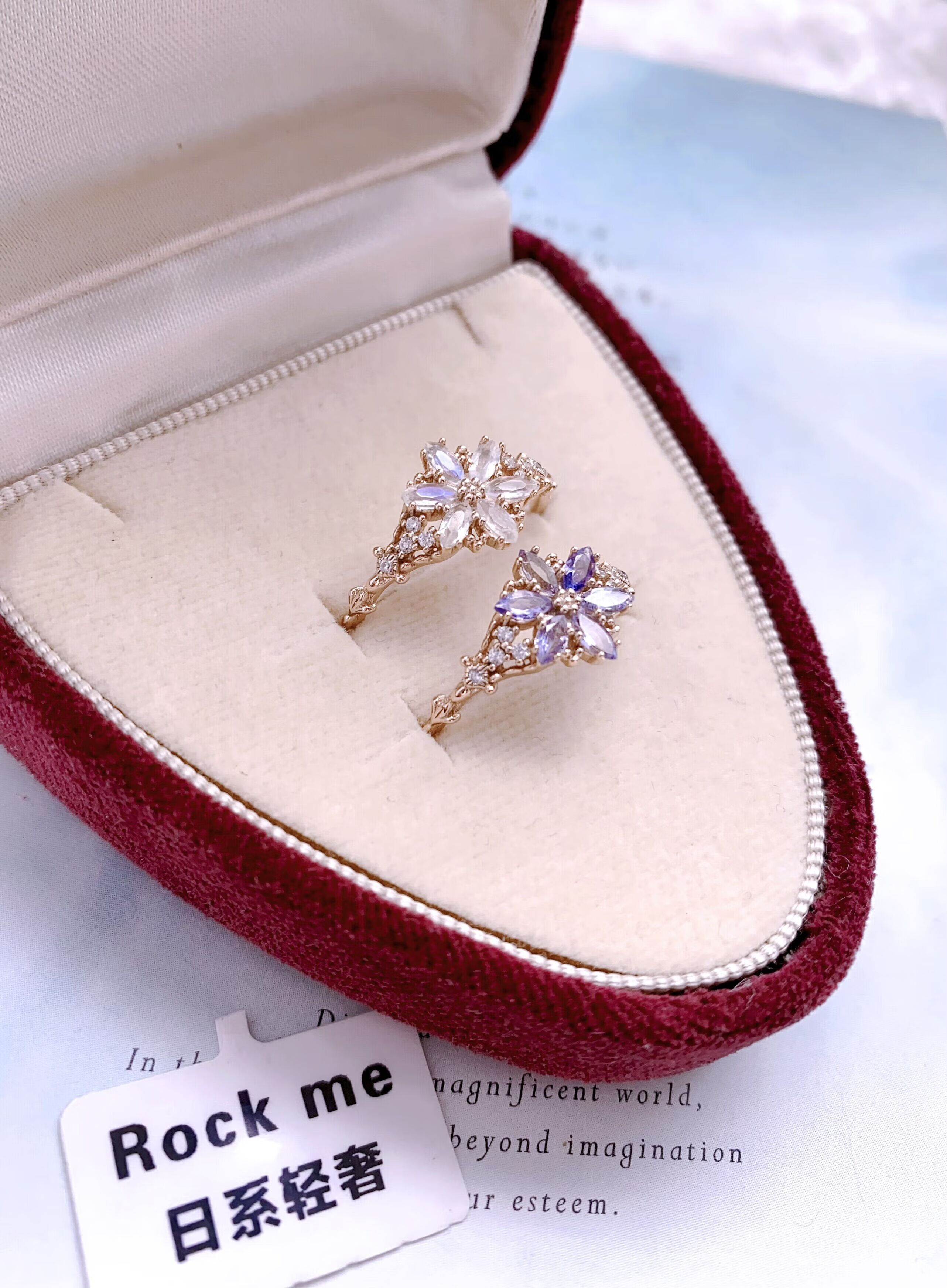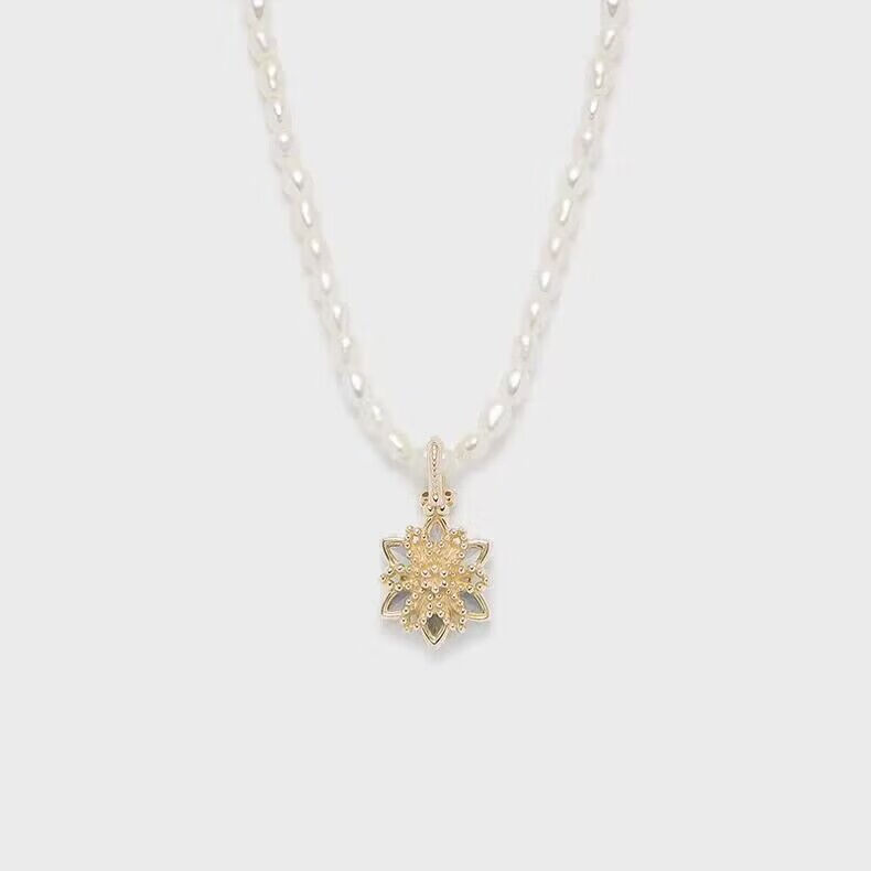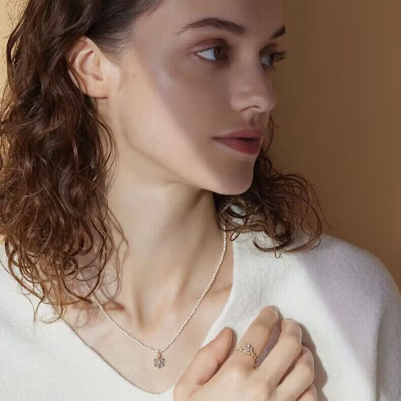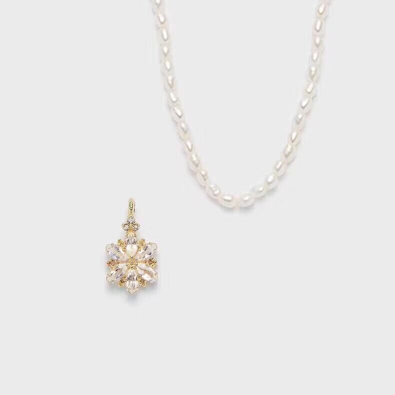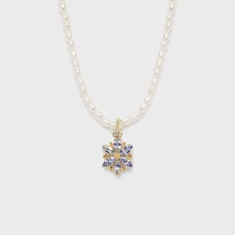 Ningfeng Japanese nojess Christmas limited romantic snowflake natural moonstone tanzanite silver crystal necklace clavicle chain pearl necklace + moonstone pendant