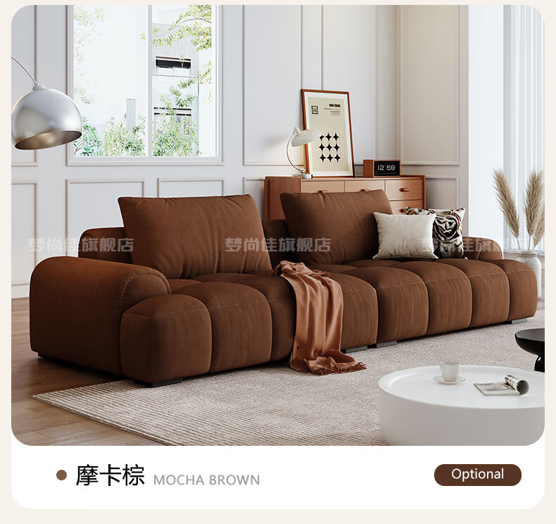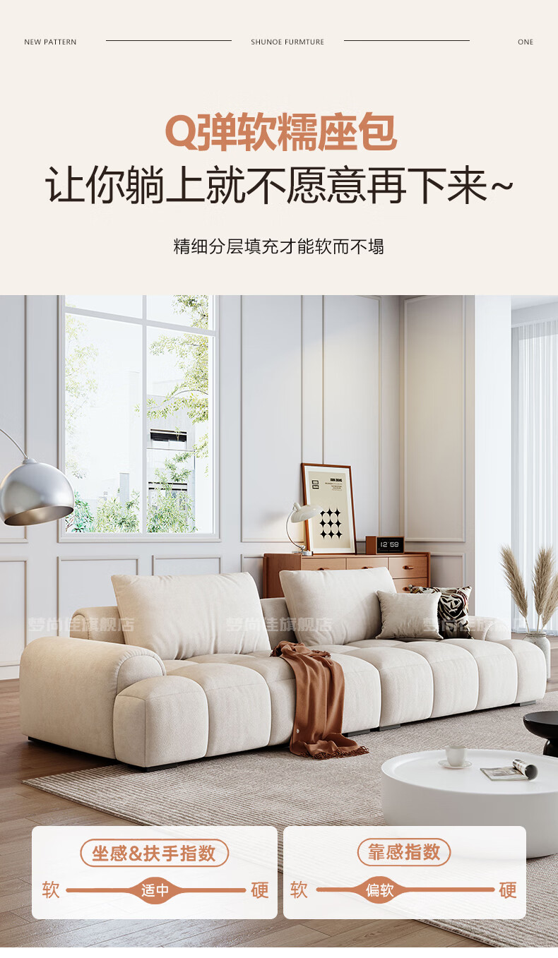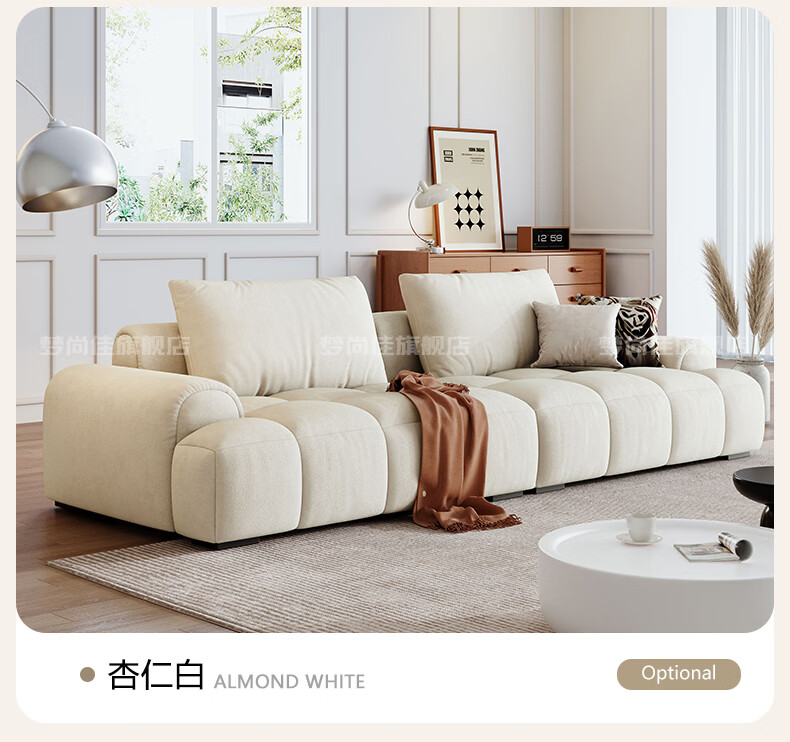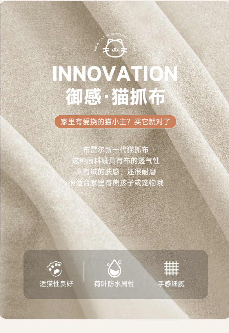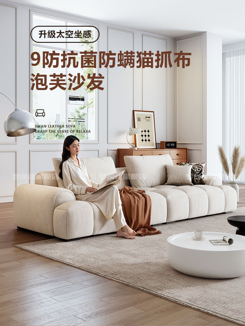 Mengshangjia fabric sofa living room small apartment model puff French cream style 2025 designer new style 2.1 meters three-seater flagship version - cat scratch cloth violet + ordinary sponge