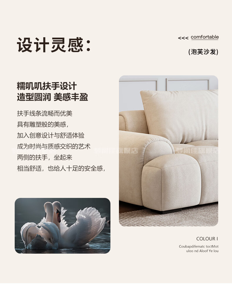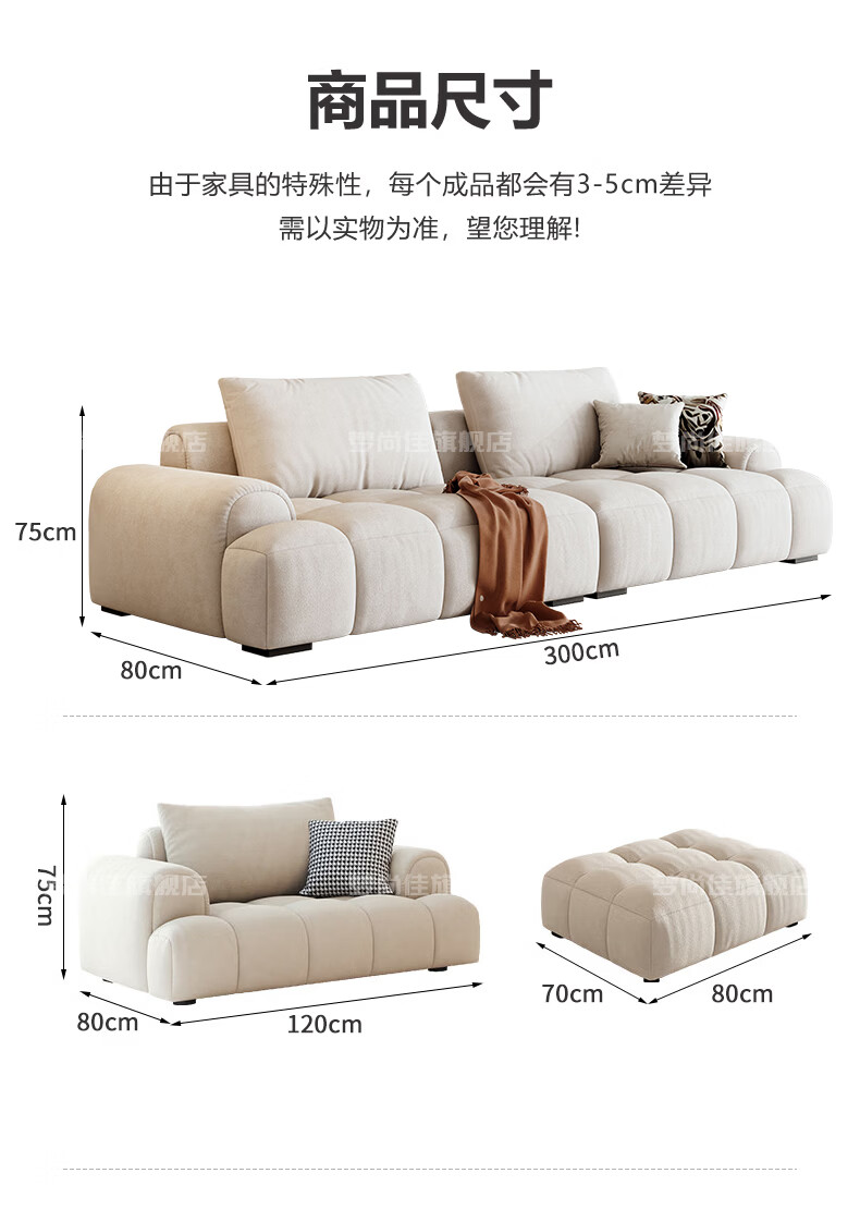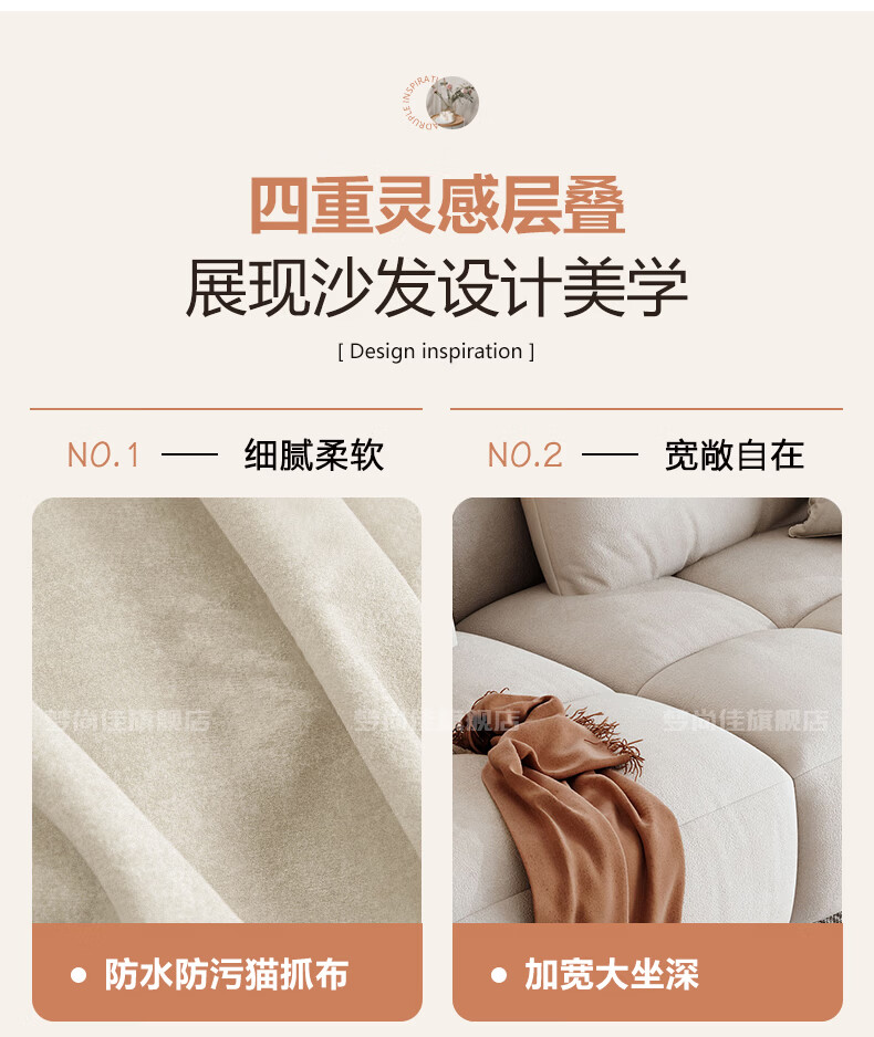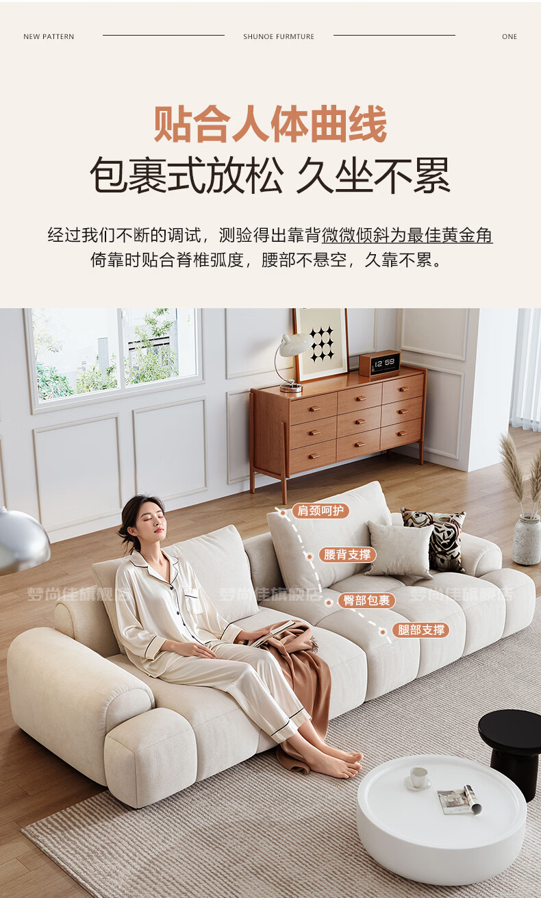 Mengshangjia fabric sofa living room small apartment model puff French cream style 2025 designer new style 2.1 meters three-seater flagship version - cat scratch cloth violet + ordinary sponge